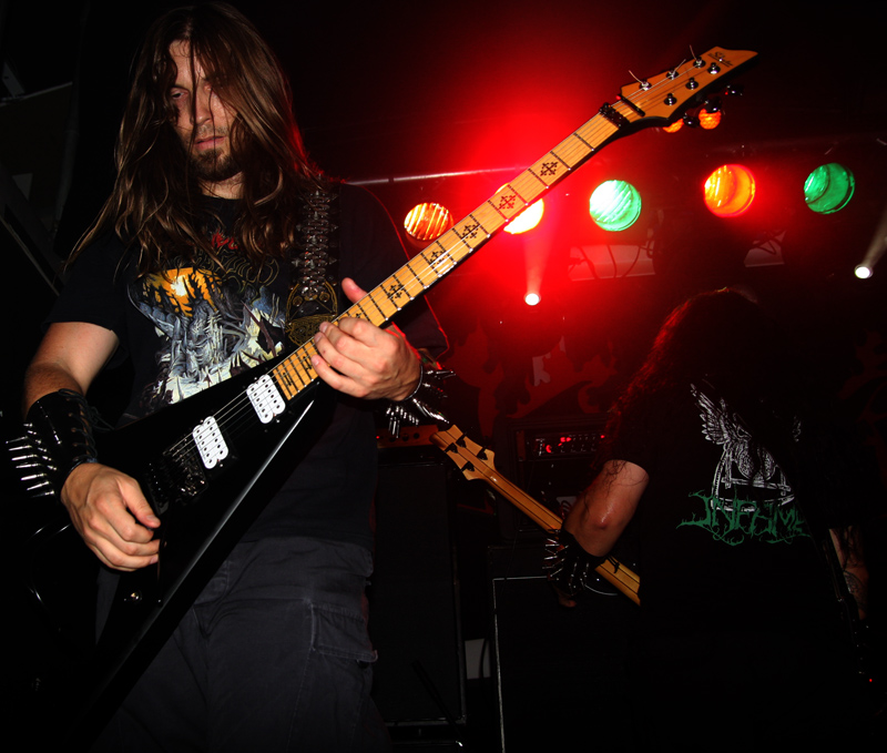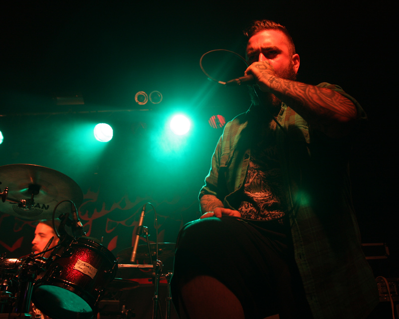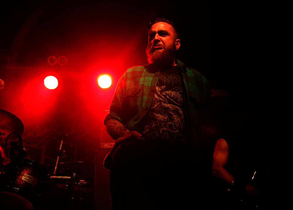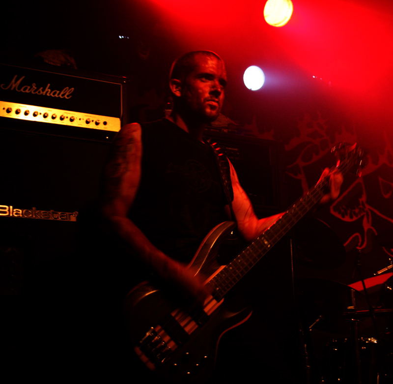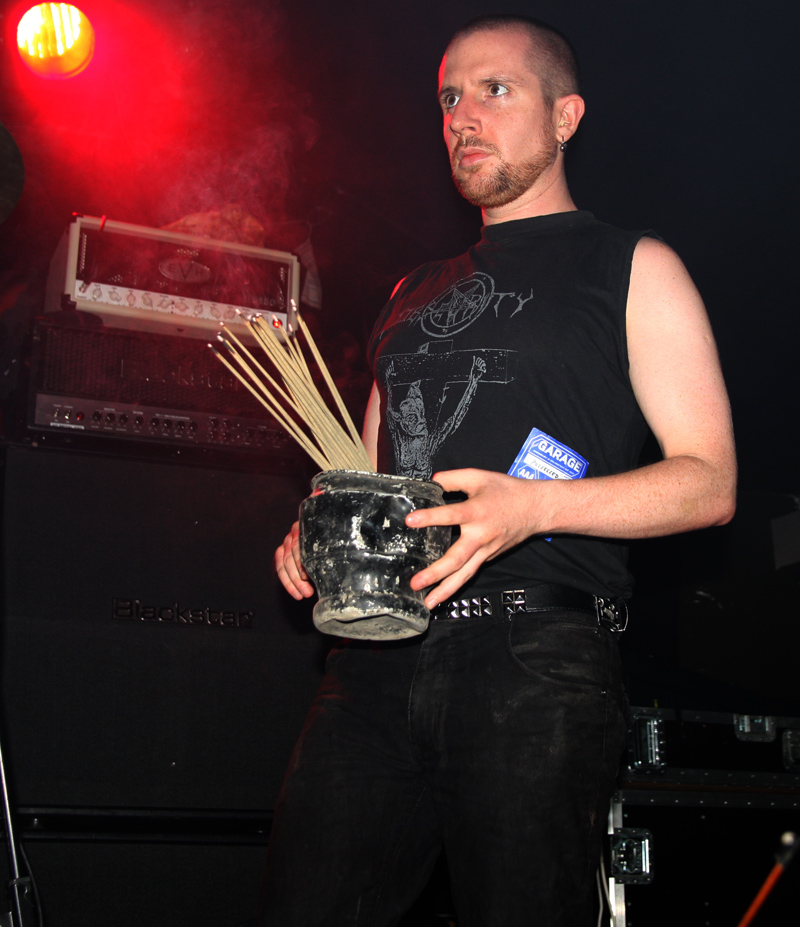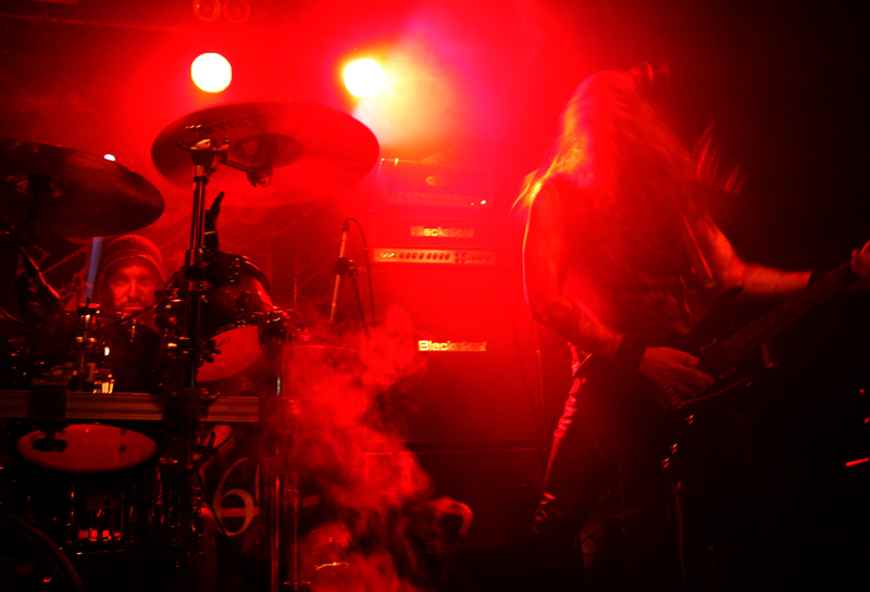 Death was being unleashed in various colours and they were all red as far as Grave Miasma are concerned. Skulls and incense sticks are carried out as the band prepare for what many would refer to as a ritual more than a mere gig and we prepared to be plummeted into occult, stygian depths. Lighting was all profondo rosso and looming through the fug on stage we could just about make out the band had splattered themselves in blood as they crank up their weapons and charge head on into the abyss. Suitably hefty and cavernous the sound is pretty immense and so is the atmosphere. Many old fans of Possessed have possibly not seen the likes of this before and as the guttural, reverb vocals roar out on ‘Ovation to a Thousand Lost Reveries’ it is like being transported into a damp dark cave. When not flailing away and claiming souls they slow down spreading tentacle etched unease that creeps into every nook and cranny offering no escape, before plummeting back down into the void again. Taking us back to earlier material ‘The Tomb Is My Altar’ has me grabbing a much needed pint and witnessing the just as lethal sound from the back of the now practically rammed venue. It sounds windswept and destructive as slime literally drips, coating the walls and infecting in its death like grip. As always the band do a great job in mixing atmosphere and downright brutality in a way that totally befits their name. It’s a well deserved lengthy set, some of it spent in a near trance, focussing on the immense drumming. As old Goat Molestör track ‘Glorification Of The Impure’ attacks with vocals like gibbering demons it feels like an exorcism is needed which leads on very nicely to the main event!