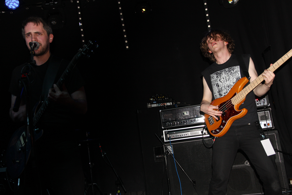 A nice mellow post-black-gaze gig tonight not that anyone told the drinkers in the pub next door who are having a right old ding dong of it with the police as many turn up. First on the stage tonight are Krawwl from Ireland who consist of past and present members of the much missed Altar Of Plagues, Abaddon Incarnate and Malthusian amidst others. Tonight they are fleshed out by the familiar face of Sam Loynes of Voices on guitar and they quickly fill the venue with sound that’s bleak and weighty. Riding on its crest there’s a shimmering post rock feel with meandering fretwork which then explodes with driving drums and high pitched vocal yells. By contrast are clean harmonic vocals from the other singer, dour in delivery but perfectly placed in line with a drop in the musical ferocity. Songs are long intricate and involving with plenty of emotion, moments of violence counterpoised by others with a thousand yard gaze. The venue gets busier and the music continues with no real pause between songs / segments all flowing seamlessly together. At times things move into massive muscular rock outs with long gaps between vocals. The third long passage starts with a tribal drum thump and arcane sharp guitar work, a bit post punk in composure. The clean vocals join in and I am pleased things focus on these as I am not convinced with the more penetrating high vocal clamour and prefer them. Everything combines heading towards a massive peak and as silence descends again it gives us a chance to take a deep collective breath. An interesting first encounter and no doubt one that will evolve with time.