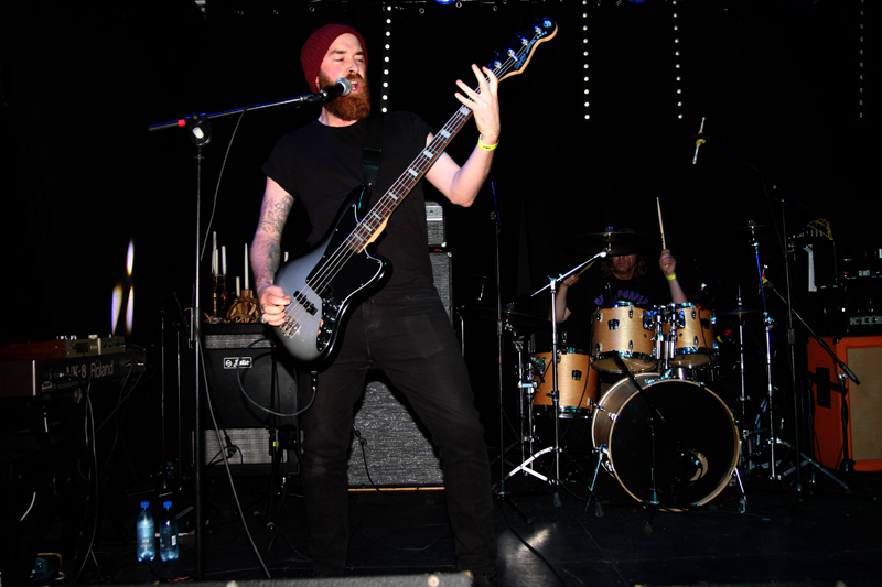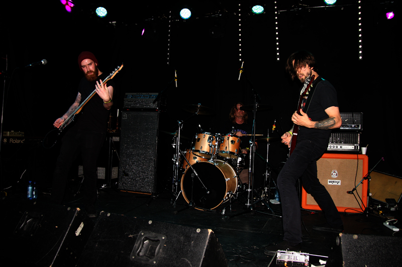 Completely unknown to me were second band, more seafarers Hung On Horns from Bournemouth. They couldn’t have been more different from the openers though as Floydian keyboard mellowness wafted out the speakers and very much toned things down. A slight false sense of security as they started to rock out and despite the vocal croons being on the clean and emotive side there was some ballast here as they went into a more post rock clamour. There is also a very noticeable prog element in what we heard and at full force the trio kicked up a bit of a groove. Songs had almost jazzy like conventions to them at times with rolling drum solos and harmonic stop start breaks the hefty bass playing was if anything reminiscent of Mark King from Level 42. The free form flow left audience pretty much unmoved and I have to admit I was not quite sure what to make of it myself feeling that it was really out of place here. The clean vocal style was off putting and it never went beyond toe tapping musically as far as I was concerned, perhaps they would have got an audience moving if they had been supporting the Foo Fighters and at one point I found myself thinking vocally of Manic Street Preachers which are bands I should never really be citing in a review here; let’s move on to the headliners. (PW)
