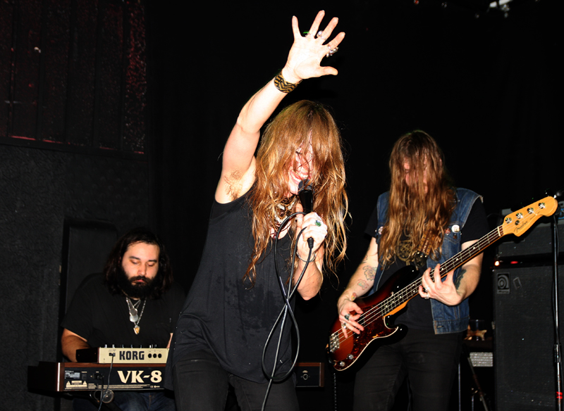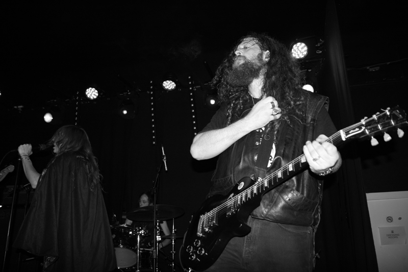 The air is thick with the heady smell of incense and candles – to those that are sight impaired it would smell as though a hippy has been set alight. However, this is just the trademark stage atmospherics of the ever popular Jex Thoth. With the scene properly set, Jex finally makes her appearance; graceful and mysterious as always, Jex’s vocals are dripping with honey and she puts on a mesmerising performance. It would be easy to assume that, with the cult status her band possesses, Jex would be somewhat of a diva, reluctant leave the stage and get involved with the crowd. However, half way through the set, she descends from the stage, parts her audience and begins lighting incense at people’s feet and touching their faces. At this point, the evening becomes much more than a gig and begins to edge towards ritualistic territory. While Jex herself is a joy to watch, her dulcet tones flowing through songs such as ‘The Places You Walk’ and ‘Keep Your Weeds’, with obvious comparisons to Stevie Nicks abound, the rest of the band are a minor let down. An apparent fear to turn their amps to anything but “off” renders the guitars inaudible and the Sabbathian charm of the riffs are completely lost, with people able to talk and shout over the people with moderate ease. A thoroughly enjoyable show, that could have perhaps been better if the rest of the band could be heard. Although let’s be honest, would anyone seriously have noticed if the rest of the guys had just left the stage and left Jex to her own devices? Probably not. (AD)