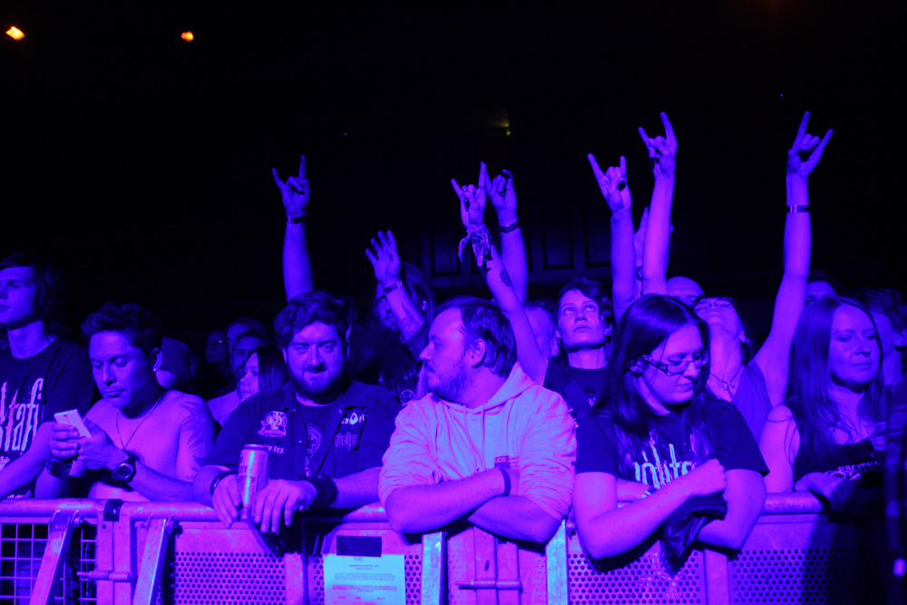 As the crowd shouted plenty George ignored them before returning stage front for a little banter and asking if anyone had the new album, which can be fatalistic for some bands and whilst the cheer wasn’t loud (at least the crowd was honest) George said we’re going to get some new ones and since “A Skeletal Domain” is a cracking album I was exceptionally pleased as the new stuff is as potently pulverising as anything they’ve done and started with “Kill Or Become” the first of another trio of tunes from the said opus. The sound really was a bombarding blitzkrieg, the drums were pummelling and the guitar work was ear slashing wrath. Into “Sadistic Embodiment” and the now rammed crowd was undulating in waves of frenzied controlled violence. Crowd surfers gave the security a job to do and I heard one got injured when one landed on his leg, oops, occupational hazard I guess. “Icepick Lobotomy” was ritualistic carnage from the start as the band set about affronting the audience with swathe after swathe of skull caving pandemonium.