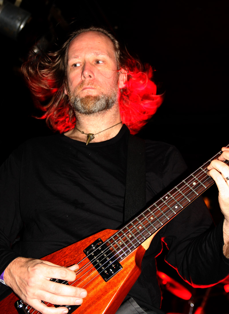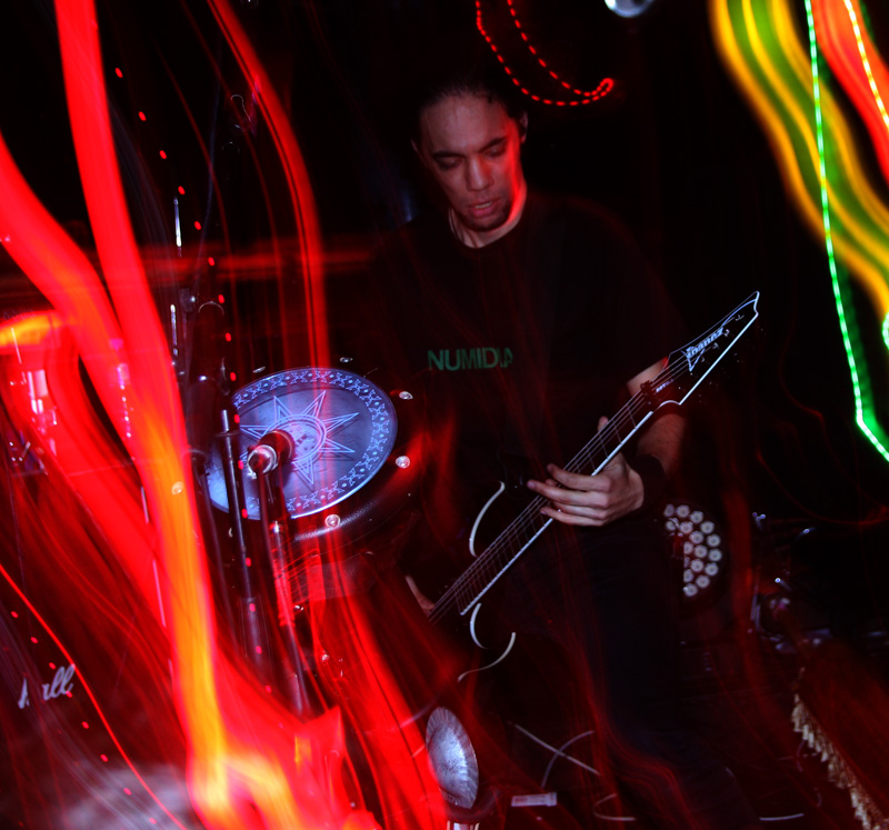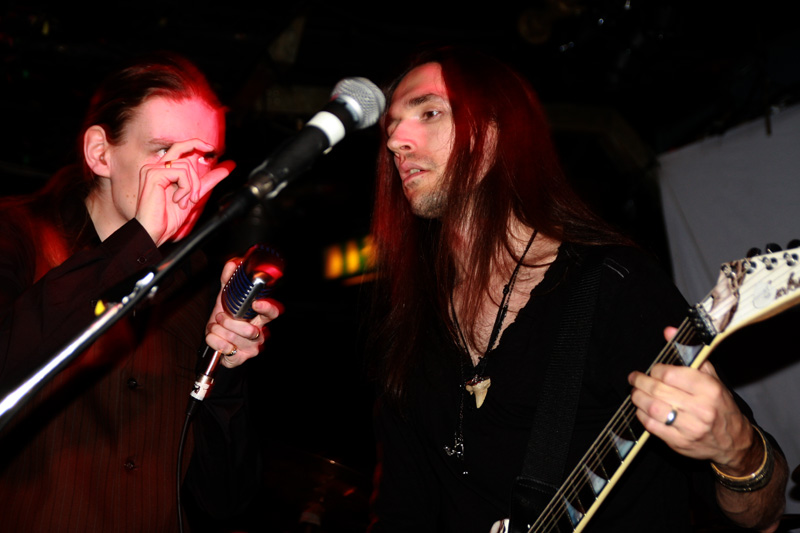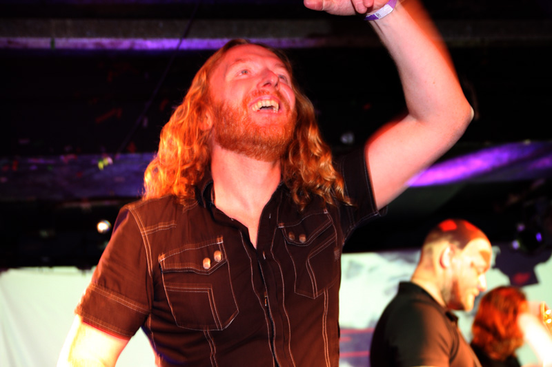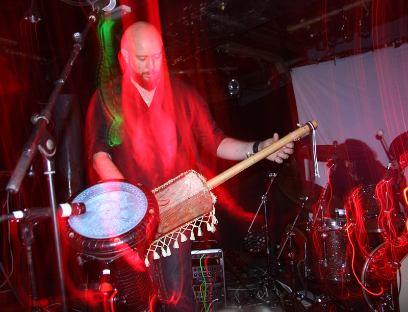 This was all for first band Acyl from France and as they came on to play I was really intrigued by the lead singers hand made bass instrument which looked like a large cricket bat with bells attached to it. As he started to strum it and the band picked up an ethnic rhythm it certainly made a heavy tone. It took them a while to move on from this and grab the more expected instruments and fire out a heady mix of metal merged with what is best described as world music with sounds from The Middle East and South America within it. It got the enthusiastic crowd clap happy and delirious straight away and there was something quite infectious about it all. It’s not surprising to note that this lot comprise of members past and present of Arkan and they share similar ground to them, perhaps they would have been perfect supporting the aforementioned Orphaned Land but it was evident that they were perfect here and no doubt anywhere they played turning the venue into a bit of a street carnival as they picked us up and dashed along with their brand of ethnic metal. There may not have been a pit and in fact we would more likely to have got a flash mob breaking into a samba or a salsa to this and it certainly transcended genres. The metal surges were pretty full on and vocalist Anime was not averse to roaring out some pretty hefty parts now and again. The worldly trip, metallic jagged riffing and hoary yells work well together and everyone was having a great time. It was no case of ticking off song titles or even trying to think of other bands that Acyl remind of, it’s more to do with closing eyes and trotting the globe in your head. This lot would be an excellent festival band and to tell the truth they were damn enjoyable here too