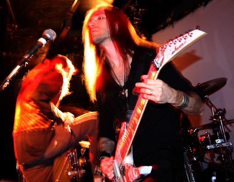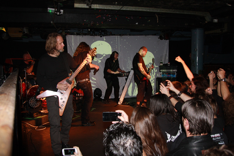 Things are far from mundane but really rather magic as far as the next one went as I tried to negotiate a beer to a good vantage point just to dig in and bounce along to the rest of the set. Stanne asks what it is about London cheekily adding is it because nobody is actually born here? He has a damn good point judging by the many Spanish and Italian accents I had heard in the audience tonight and a show of hands from us natives proves him spot on too! But there is little to time for real chat as the songs keep coming. ‘Through Smudged Lenses’ with its deathly end cry of “I want to hear you die” picks up the pace and adds a splash of brutality, State Of Trust provides a good spot of bouncing around and probably my favourite number Therein almost brings a tear to the eye as it’s so heartfelt and sublime. Needless to say this one practically brings the house down and I say it every time Dark Tranquillity really are too big for this venue and it seems a tragedy that the likes of In Flames play Shepherds Bush Empire with their now weak uninspired poppy slush. The fact that Dark Tranquillity have so many good albums means there is no shortage of songs to play and although they probably have a set list to work from there’s none that I saw and they seem happy to ask people what they want to hear. Moving on we get Focus Shift, then Final Resistance which is so full of energy, I found myself stomping a hole in the floor of the venue, whoops. Everything leads up to the last song and it can only really be Misery’s Crown a song that is so damn good it means that an encore is completely unnecessary, they had played a good long set anyway and there was no following this; we were more than happy in our misery. One thing I had not realised was that this was the last date of a run of 120 shows and the band played it like it was thir 1st! True professionals, cracking set and already they were promising to come back!
