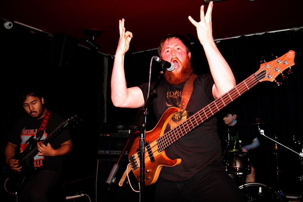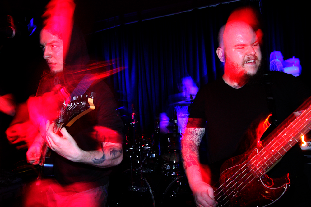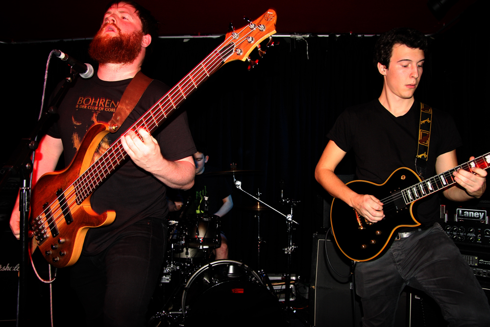 Shrines seem to be on so quickly that I miss the first song completely and walking in to hear the band for the very first time it takes a while to get acclimatized. This new band who apparently were before known as Diminished Fifth have as singer / guitarist Samuel Loynes who is also guitar player in headliner Voices. I don’t think I have ever heard him sing before and his clean emotive voice has a lot of depth about it working in line with flailing riff work. Things pick up and it’s a choppy and technical sound as it shreds away with some pretty neat sudden stop start dynamics on what I think may have been ‘Of The Wolf’ from their forthcoming debut album. It’s got a ferocious flow about it as it gallops away and gets heads nodding away in time. I’m thought they had announced a Carcass cover and riff wise it certainly had a lot of nuances that reminded of them but was actually an original song. As for the final part of the set I seem to have scrawled down “a tumultuous tossing and turning riff fest” and although this was a lot to take in on first encounter it was certainly interesting and I look forward to getting more in depth with forthcoming material.