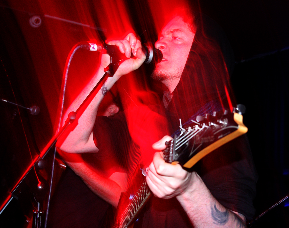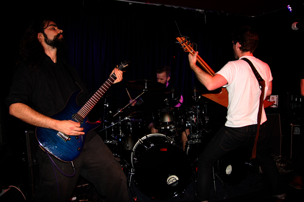 In a similar fashion are Chapters who again it’s my first encounter with. I have to feel sorry for anyone walking in here tonight who had not heard any of the bands before, they must have been damn bamboozled. This London based progressive metal bunch are apparently playing the whole of their album ‘The Imperial Skies’ here tonight and threaten that it will be the last time they are doing so. Makes for an easy for a track list if you want one. It’s a quite boisterous affair and they throw riffs around like a baby who has dumped a load in their nappy and takes it off flinging the contents all over the walls. I pretty much put that analogy down to the smell of the venue which was very sewage ridden and could be about to turn its name into The Black Fart! Just as I thought it was making some sort of sense they suddenly went into some Spanish sounding almost classic guitar work which was technically faultless and left my jaw somewhat hitting the floor as it was totally unexpected, turning things completely topsy-turvy. Still not done with this particular number they brutally set about battering us senseless and firing out a flurry of obtuse riffs and guttural throat shredding vocals. The band seem pretty popular and bodies are packed in watching them. There’s a bit of a post hardcore feel from things and also death and doom with plenty of genre mish-mash crossover making the band impossible to really pigeonhole. Although at times Mastodon strike as a bit of a similarity there is plenty more to Chapters and they continue to keep on turning the page with atmosphere and brutality combining really well. I guess that’s pretty much the theme of the evening as it’s a very diverse meeting of minds going on here. ‘The Eclectic Circle’ chills things out a bit with sampled clean vocals and strings adding depth although naturally it would have been better seeing these parts replicated live. Another very interesting first encounter.