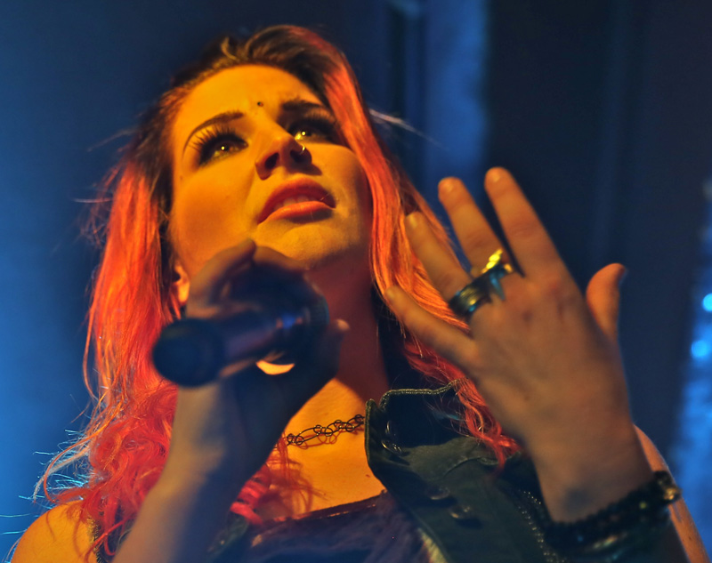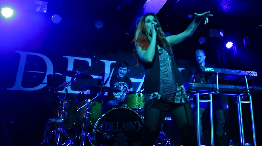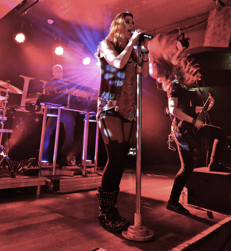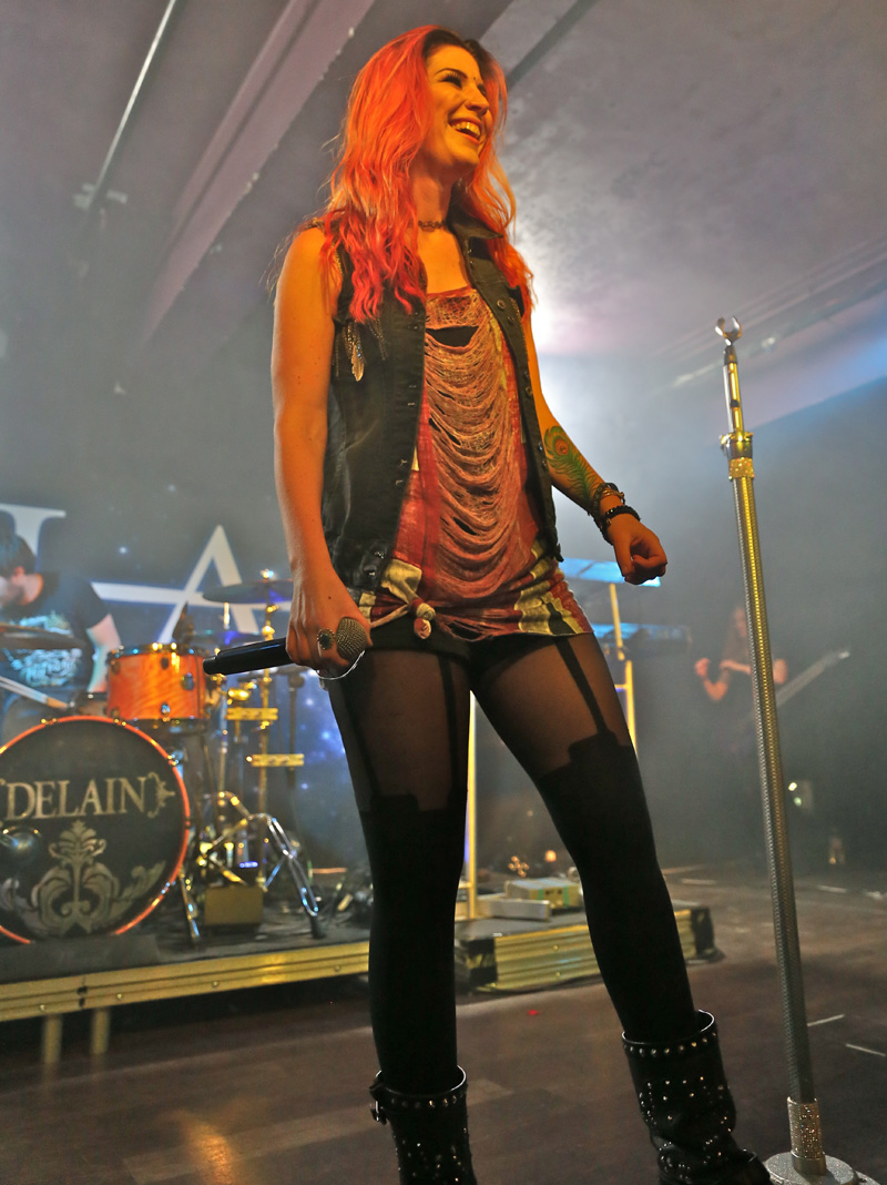 My shooter was the only reason for attending this show, though seeing Delain at the Wacken Open Air mud bath in 2012 was my first time seeing the band play. Impressed at the time I vowed to see the band again at the next opportunity and if truth be told I wasn’t that fussed about attending this gig due the sheer numbers of shows still to come even after this one before the end of 2014 but thanks to his persuasion and the fact of being able to review it. That decision was a master stroke as this Dutch band really were extraordinarily brilliant from the moment the show started with its surreal intro piece into the detonating bounce of “Go Away”. The adulation the crowd holds for not just Charlotte Wessels (vocalist) but the whole band was first-rate, though it’s fair to say much of the crowds vision was held on the captivating and charismatic front woman. Initially her voice was a little lost in the power of the overall sound but was soon corrected as all and sundry around broke into voice and joined in for practically every tune played. Leading straight into “Get The Devil Out Of Me” the crowd was by now on pogo sticks as the richly synthed tune was opulent to the point of pop and I mean that complimentary as this was a metal show, the synchronised head banging of all the band was a joy to watch and proved the bands true metal roots was at its soulful heart. Charlotte’s voice was utterly mesmerising as the harmonised choral breaks were enthralling and heart wrenching as the show was off at a scorching pace. A quick chat from Charlotte stated that Otto (bass player) had been injured at the Birmingham show and was unable to play but step forward Merel Bechtold this woman was a bass boss throughout the evening and added to her forceful playing style was her battering head banging ably assisted by everyone else in the band, the stage was a mass of swirling hair at every available opportunity but especially the massive riff and keyboard break in “Army Of Dolls”. Veering between the all out fist pumping vibrant injected tunes were more subtle vocal moments such as the start of “Stardust” right before a very enthusiastic woman bellowed ‘Bring Me To Life’ before Charlotte had a chance, causing a few giggles around me. The slower laid back lead vocal in its middle was pristine; skin crawling was an understatement.