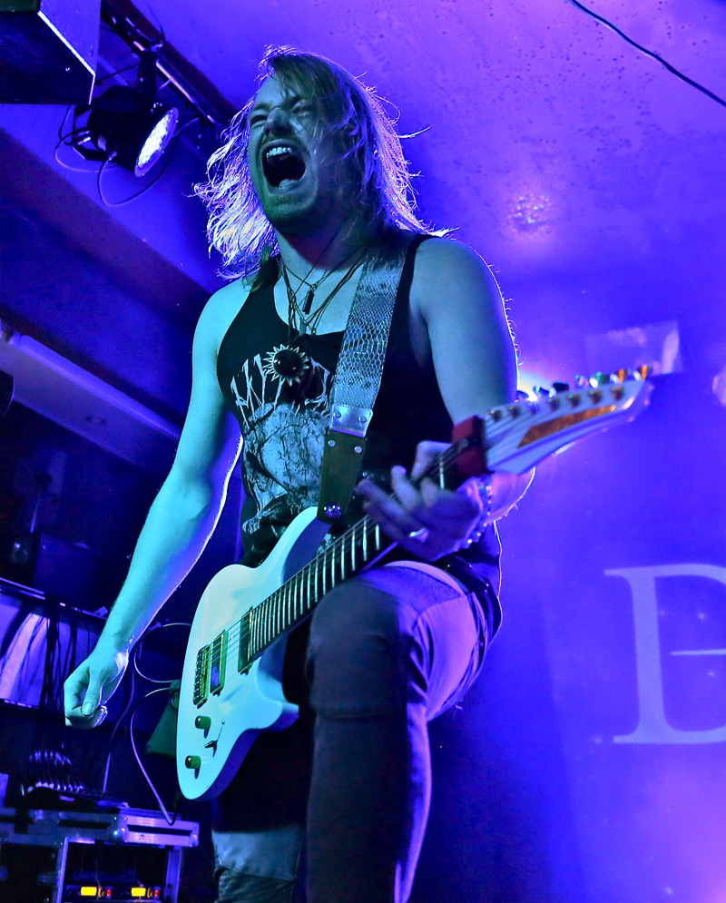 This three date mini UK tour was across Birmingham, Manchester and Glasgow and was sold out many weeks in advance giving new and upcoming London based band The Raven Age a perfect opportunity to grab the ears of the attendees and try to hook in a new fan base as their music sat firmly in the modern metal sub-genre where clean vocals alternate with growled shouts which caught some of the more guarded people in the audience unawares, but not to the point that they wandered off, though doing so would have meant losing your spot as the place was rammed solid. Fixing myself down the left as close as possible, it was clear the band was gorging on the big crowd and doing their best to milk them for appreciation and for the most part they were rewarded. Within this bands ranks is one George Harris, son of Steve Harris (Iron Maiden) and it was quite clear that link was avoided during band introductions and rightly so as each guy put on a good show though the tunes definitely need more individual identity and the vocalist looked to struggle with his breathing on the more pronounced vocal parts but all in all the band gained a few more friends tonight.