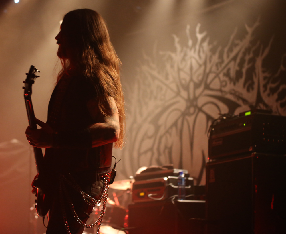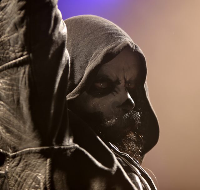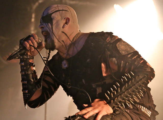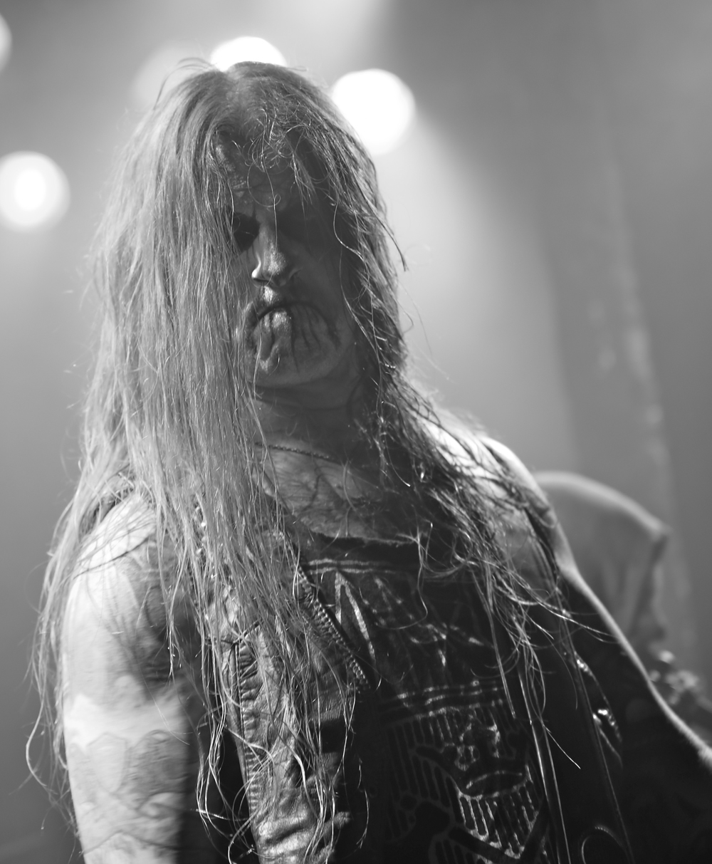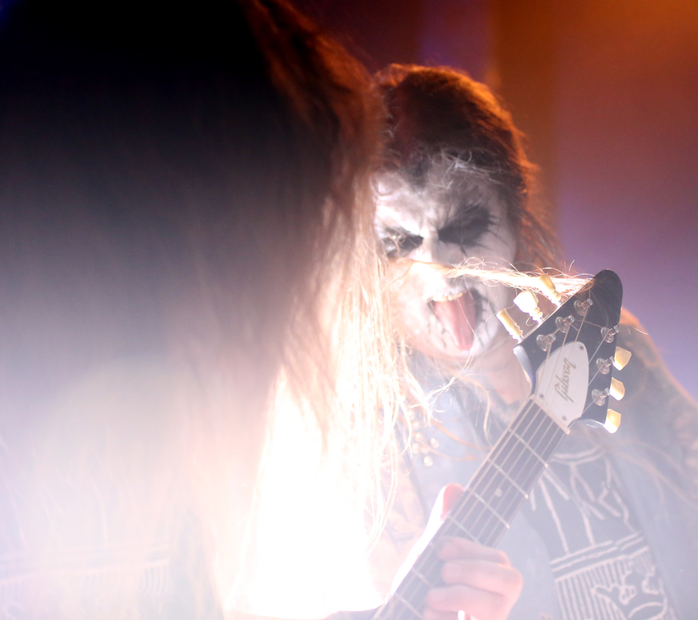 Arriving early at the Blå venue heading back towards the starting point meant I was able to catch Norwegian post black sludge rockers Kraków though I watched from the side grabbing a rare sit down in the vibrantly full venue. The band was an enigma musically as softer post rock progressiveness was cemented with some utterly seismic sludge passages that vibrated the venue from top to bottom. Their set was laced with highs and lows of intensity and were in stark disparity to the notorious Norwegians Taake, a band that has played the UK a fair bit. By now the place was absolutely rammed solid and again the one out one in policy was put in place. I managed to get a spot front left before the room became impassable and late arrivals were left stranded in the adjoining bar area. Despite no photopit a few of the late arriving shooters seemed to think that the crowd, who had stood patiently waiting to ensure a good spot should part like the Red Sea to allow them to the front simply because they waved a camera! A recurring theme through the festival it caused some animosity between the crowd during the Taake set resulting in a fracas that soured the mood slightly. Taake hit the stage at 00:50, and from the outset they assaulted the crowd with their aggressive black metal. As one song blended into the next, the unholy hymns relentless in their ferocity yet retaining their melody were poured upon the audience like fluidised brimstone. Hoest was bedecked in corpsepaint atop his beard, all beneath his ever present hood, adding to his menace as he stalked the stage like a deranged lunatic staring at the gathered masses. With his top attire opened revealing an inverted cross daubed onto his abdomen he was the epitome of Norwegian black metal hatred and so ended day one of Inferno and what a day it was.