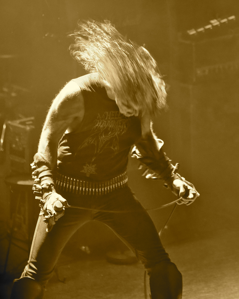 Being weaned on thrash metal in the 80s meant I had to catch the scathing Swedish act Antichrist as I have been waiting a while to see them. Decked out in traditional thrash wear the band put in a blistering performance of high velocity speed and thrash that was extremely loud with high tonal guitars shredding the ears of all present. The guys were a maelstrom of action on stage and despite it being a tight squeeze they still managed to pull off some cracking headbanging acrobatics when their show opened with “Dark Sorcery” from their “Forbidden World” full length. The scathing sound was murderous, like diamond tipped blades powering through the audience their set was as ferocious as they come with barely a seconds break as tune after tune was callously performed. Very little stage banter was heard, the guys just ploughed through their set mercilessly on “Burned Beyond Recognition” and “Necropolis” to note a couple of guillotining tunes that were total ear splitting savagery.