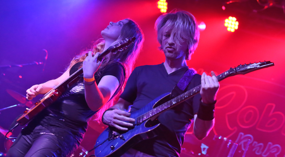 As always seems to happen with travelling in the UK traffic problems encouraged an alternative route to be taken but failed to avoid me missing The Fall Of Eve which I apologise to the band for. Not the best start to the weekend but with another 14 bands to watch over the two days the first act witnessed was UK symphonic exponents Aonia whose twin female vocal structuring suffered from a lack of cohesion with each vocal clashing when singing together. Some thought into the flow of the multi vocal approach would be beneficial so that the tunes hold together instead of fracturing. I wasn’t too impressed with the bands cover of Maiden’s “Man On The Edge”, as the vocals just did not work at all with this song I’m afraid. Musically this was bread and butter material with chuggy riffs coursing through ambitious tunes that profited from being stripped back slightly. The vocals did test my endurance as they were just an octave or two too high though the audience was enjoying every minute of them as I did on the music aspect of their show.