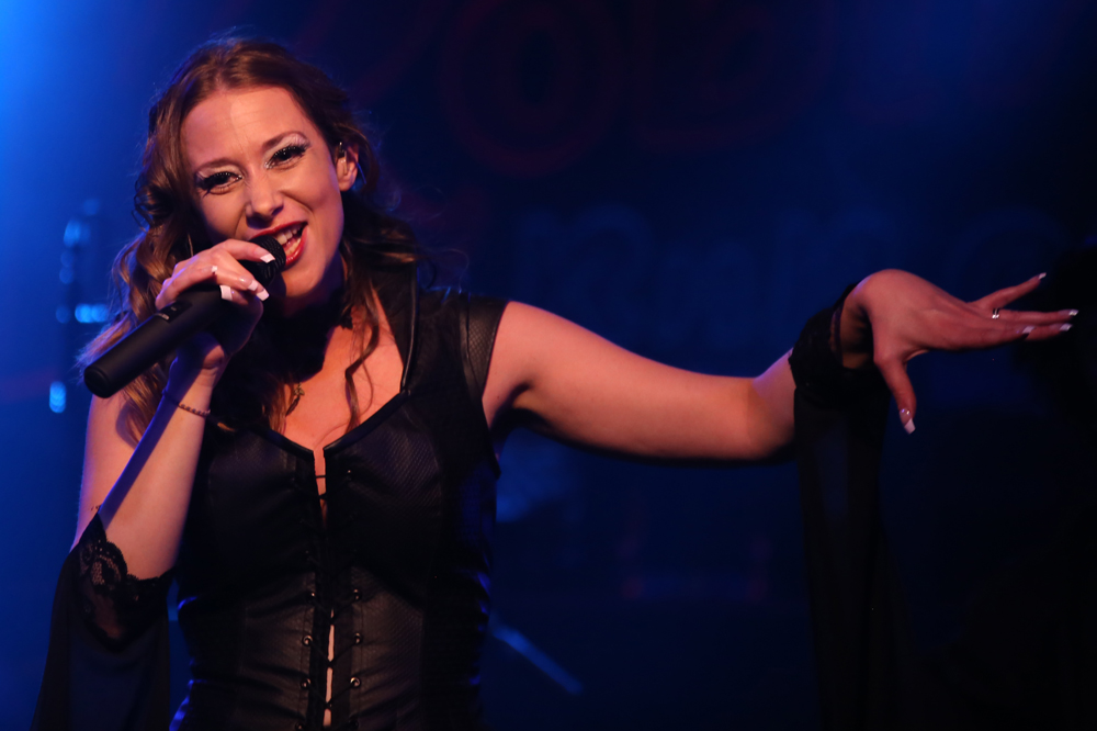 Apparition, whose members consist of Mr David Homer who organised the Dames Of Darkness festival, were on next and whilst I admire the bands tenacity in playing the festival as well as being part of its organisation their set came across as a little rushed and lacking cohesion. “Beyond The Wrath Of Ra” should have been brimming with power but the sound afforded it was wispy, lacking depth and clarity especially on the mellow vocal aspects by Fiona who was self-assured and would have benefitted greatly from a higher vocal mix. Despite the energy emanating from the show was a little jaded, which was not surprising given the band was at the beating heart of the whole weekend, the bands auditory nuances were not lost on the audience who lapped up their modern metal stance with utter glee. The potential of songs like “Elysium” and “Frozen Roses” was undeniable, quality song writing that just required a little more exigency and vigour when played. I would encourage more engagement with the audience as silent pauses between songs renders the set fragmentary as interaction is vital to any stage performance (apart from black metal though).