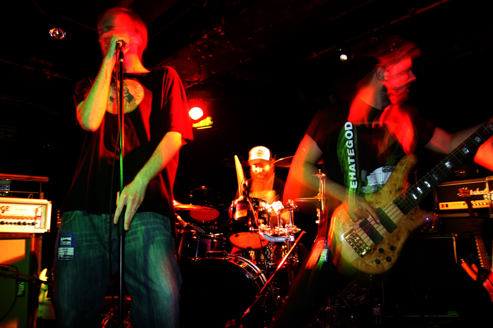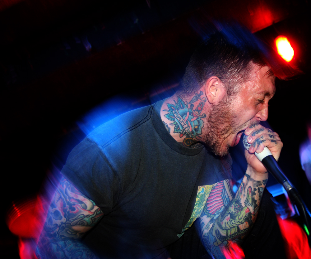 I had a feeling that Krokodil were not really gonna be my bag. Although I knew nothing about them I had noted that they were playing Temples Festival soon and also on the bill at this venue as support to All Pigs Must Die in the future, put simply I expected them to be a bit on the ‘core’ side. As soon as they came on and ploughed into ‘Sleep Well, Medusa’ I knew that I had well and truly hit the nail on the head. Songs are choppy and twisted masses of conglomerating riffs and vocals are harsh, barking full blooded screams. Vocalist Simon Wright looks the part covered in tattoos as he fearsomely screams at us and some unexpected clean parts seem out of place turning the song somewhat emo. I am already backing off not liking what I am hearing in the slightest and looking around most of the venue which is now much fuller is looking suitably bemused too. Songs from their debut album Nachash are brutal, fast and chest beating slabs of ruggedness. The chug from ‘Dead Man’s Path’ makes its intentions very clear and it was a song very much in need of its own circle pit, something the band had bugger all chance of getting here. I was by now driven towards the bar but at least I noted that the clean vocals seemed to be a one off. Krokodil were severely out of place on this bill, if they had been supporting the likes of Converge, DEP or someone of that ilk no doubt they would have prospered but with temper tantrum vocals and posturing they were not going to impress anyone here and I was relieved when they finished.
