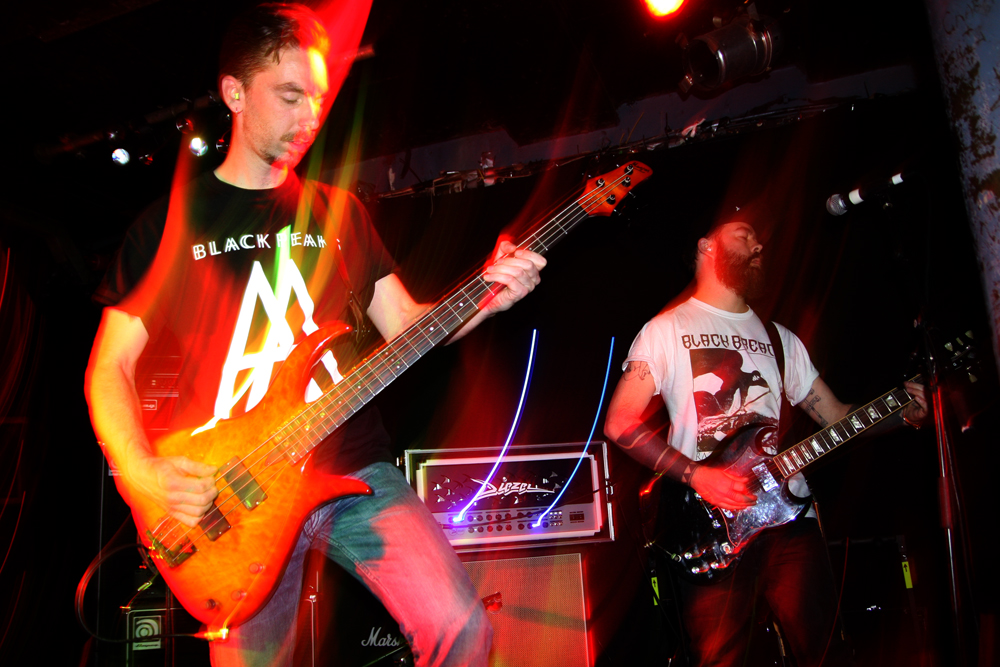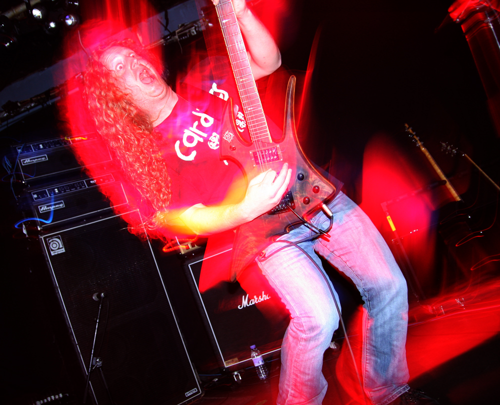 VoivodFlierThis was going to be a slow gig to start as most people are only really interested in the headliner and the supports are not exactly well known or a particular draw to the average Voivod thrasher. This meant that Desert Storm were playing to just a handful of people and I had no idea what to expect from the band apart from going by the name having the fear that they were going to be playing metal of the severe ‘meathead’ variety. It would appear that the band are from Oxford, not rednecksville USA and have several albums under their belt and it was kind of a relief when they started, to note that opener ‘Outlander’ was more of a groove-laden stoner-fried affair. They had a vintage sound and some good riffs that kind of made you want to sup some cold suds. Kind of perfect for a support band really. They had their Orange amps maxed up high and if you stood too close it was a case of instant deafness. As they moved on to numbers like ‘Shadow Of An Eagle’ they got feet tapping and boogied on down with some smoking licks that seemed to get those wandering in heading down the front to have a look. By the time they moved on towards the end of the set songs such as ‘Sway Of The Tides’ took on more of a NOLA edge and got heavier and vocally more rawkus, perhaps they have got a bit of a meathead thing going on with the newer material. They really could do with changing their utterly shite name though!