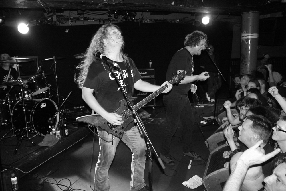 They pull some unexpected ones out the woodwork too, really mixing things up. ‘The Unknown Knows’ from Nothingface builds with a doom laden flow before futuristically thrashing away with choppy beats and Snake’s melodic harmonies flying towards the roof. ‘The Prow’ from Angel Rat is equally unexpected and it takes a second to realise what they are playing here. One that doesn’t is ‘Psychic Vacuum’ and that is exactly where the clamouring riffs and brutal backbone of the song fling us. The spiralling riffs of ‘Forgotten In Space’ definitely have all systems go and many a person bouncing around with shit eating grins on their faces. It was like having been flung through a vortex and landing back in the late 80’s grabbing a pint and noting that the price was very much in the present was a jolt back down to earth. We also got a first live taster of new track and single ‘We Are Connected.’ I don’t think we could possibly have expected a better set-list and as I supped away an encore of the classic ‘Voivod’ and Pink Floyd cover ‘Astronomy Domine’ were the icing on the cake. I was rather glad that it was quickly apparent that stage diving was a no no at this show as if it had been allowed I think I would have hurt myself during this one. The Canadians blasted us back in time brilliantly tonight, here’s to the next instalment and whatever future endeavours they have in store for us.