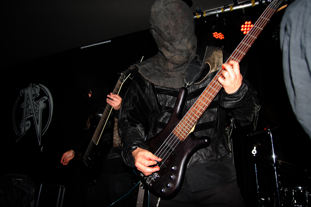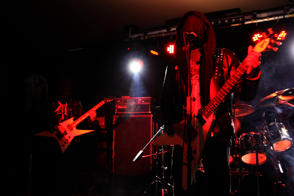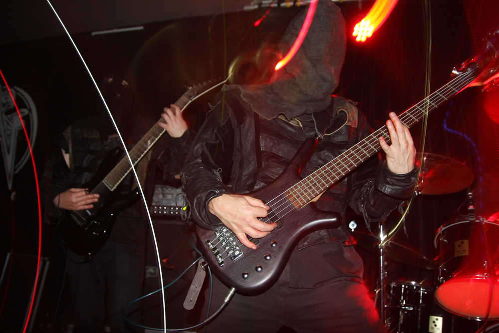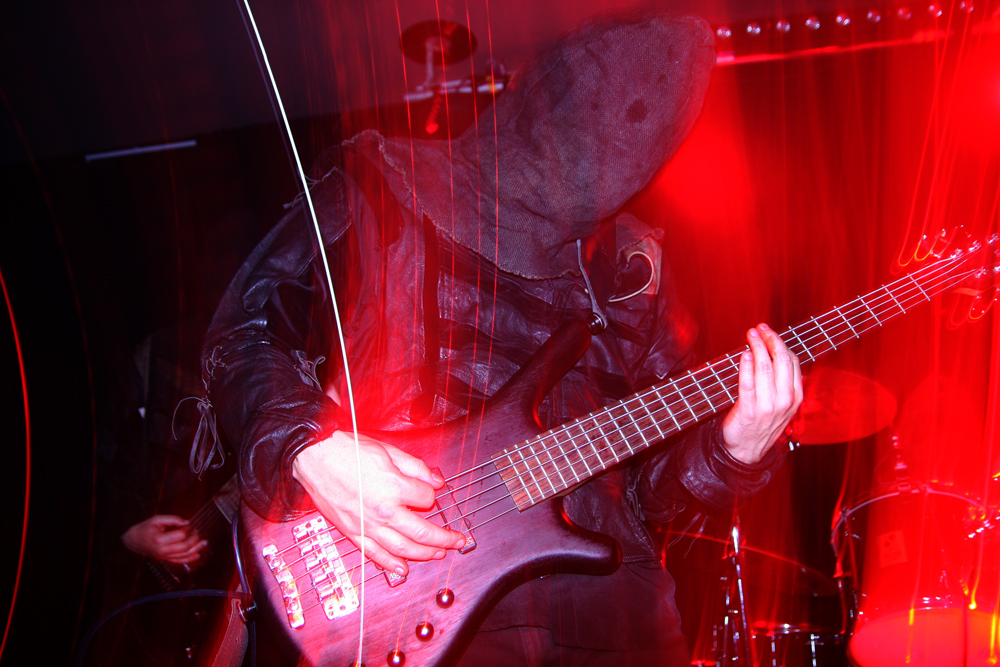 It’s off to a recently refurbished Nambucca tonight and the venue looks a lot better than it used to with much more room in it. Still it was never going to be enough for the London debut of Australian’s Portal who were just over for this show and Temples Festival in Bristol the day before. Unsurprisingly the venue quickly fills up and opening London band QRIXKUOR get the opportunity to play in front of a healthy audience, not bad for a band who simply have a limited edition demo tape available so far. They certainly look the part with the anonymous players masked up and they have a nasty, thick and cloying sound about them. They quickly get into the swing of things playing their metal of death in a fast and furious fashion with lots of cymbal clashing and rigorous drumming driving it all along. They counterpoise things with some gravid doom like parts and their unholy sound gets fists raised in appreciation as they finish their first heaving mass and move fluidly on to the next bestial onslaught. There’s a lot of intricacy amidst the trembling fretwork and it surges with a gnawing intensity behind it. With the last number of this short but potent set building up into a mesmerising pitch of obsidian black atmospheres, this first encounter with QRIXKUOR is certainly noted, perhaps by the time they come back I may even be able to spell their name properly!