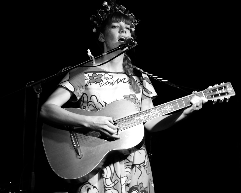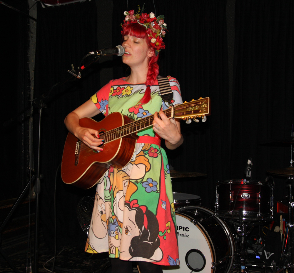 Totally unknown to me is singer songwriter Gabby Young but she has a very colourful presence that looked like she could have easily been part of Rubella Ballet’s ensemble. Apparently she is more known as the singer with ‘Other Animals’ but here was going it alone and acoustic style. A classic balladeer she commanded the stage with her presence and singing style which was at times quite eccentric and scatty with words such as ‘blah, blah, blah’ rolling off her tongue. Hitting the high notes and dipping into silence at the end of the song the venue rings out with appreciative applause after the first number. Apparently she is flying off to Nice tomorrow and singing at a wedding and no doubt her captivating voice will have them all dancing around. She went and got a ukulele and played the next song ‘Smile’ which was just what it made us do in a burst of colourful sunshine. Honey was next played for all the lovers in the room, it’s flamboyant and whacky and highly enjoyable with the singer coming across as a true troubadour. As she took to the dance floor to sing it was obvious her vocals needed no such thing as a microphone to project them through the room. A more folky protest vibe took us out on ‘We’re All in This Together’ and if you are intrigued you can watch this one here too.