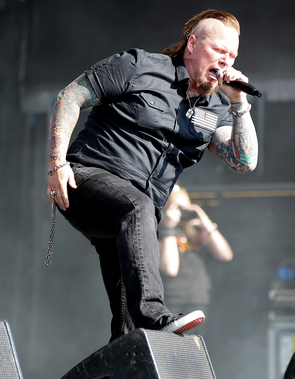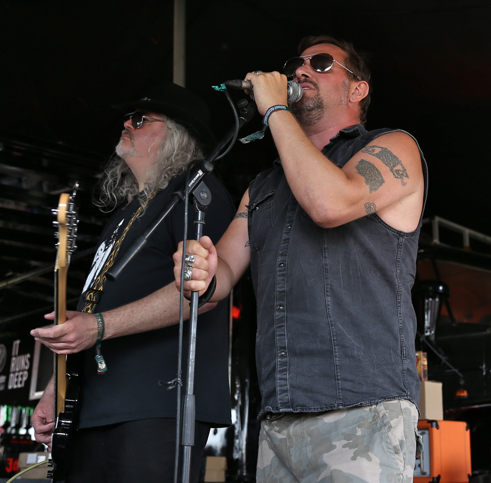 With little time to spare, from Korpiklaani I hot footed it over to the Jagermeister Stage where Pig Iron were up playing a semi-acoustic set (bassist was using his electric bass). Having seen Pig Iron previously in May 2014 supporting Mustasch when they could unleash their full pelt rock and roll sound, seeing them acoustically was a bit more interesting. The sleazy blues aspect of the band’s sound really came across well in the unplugged setting and the mix of the harmonica and guitar really got the crowd gathered round the tiny stage moving. It was a great way to chill out for a few songs whilst preparing myself for what would be the biggest run of bands of the day for me.