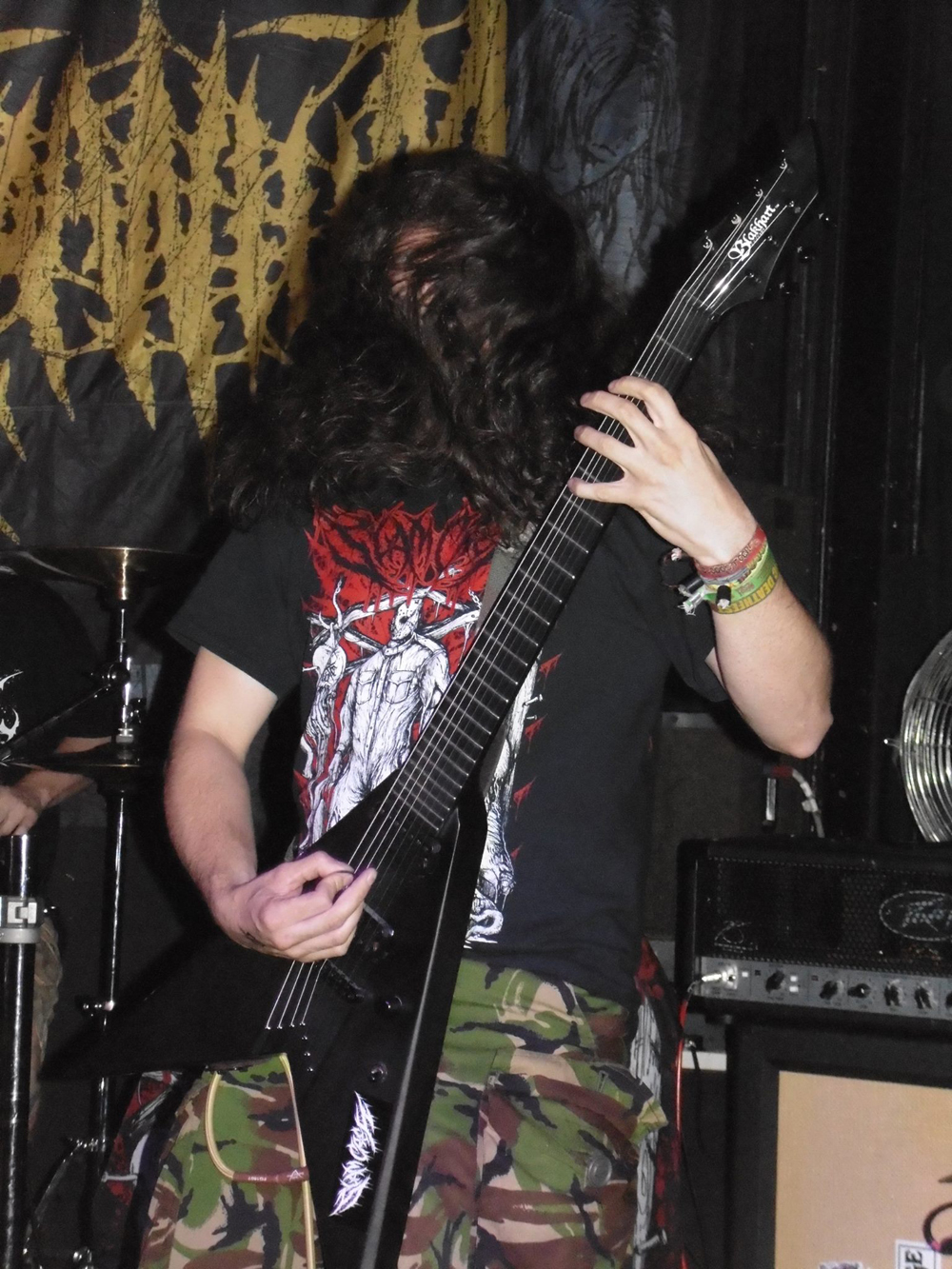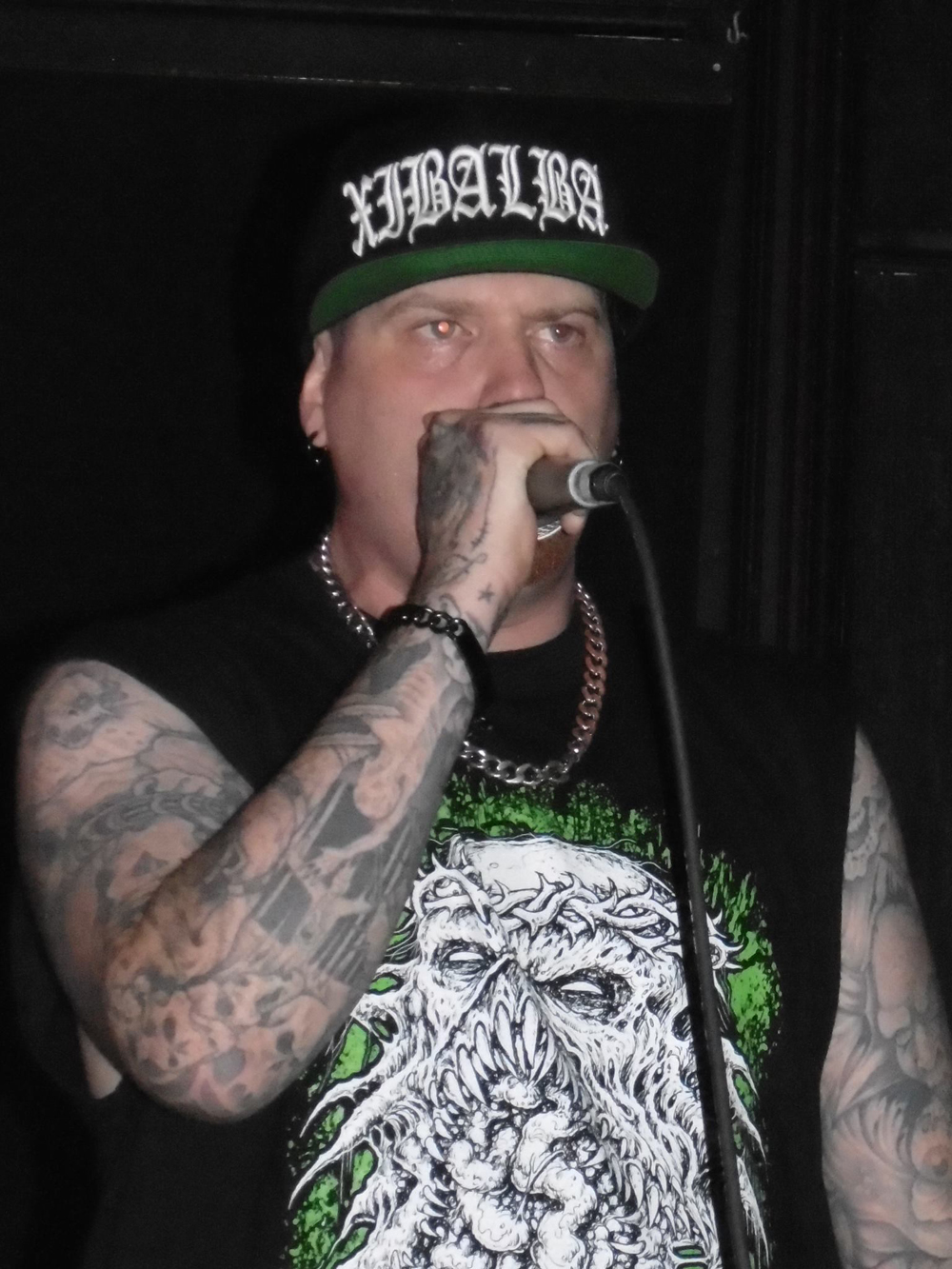 US death metal monsters Splattered were streets ahead of anyone that played during the evening, their consummate brutality was laced with melody as the singer had one of the lowest toned voices I’ve ever heard and without too much microphone cupping with his hands. Clueless on song titles I attempted in vain to buy a shirt, which my shooter managed to obtain one in a size too big, as this gig was on the tail end of European tour. Disappointed as I was Splattered was every bit that their name implied, gore soaked aural carnage and juggernaut drums that pulverized the crowd with remorseless gusto and gave the remaining two bands a very difficult task of upstaging them which they didn’t.