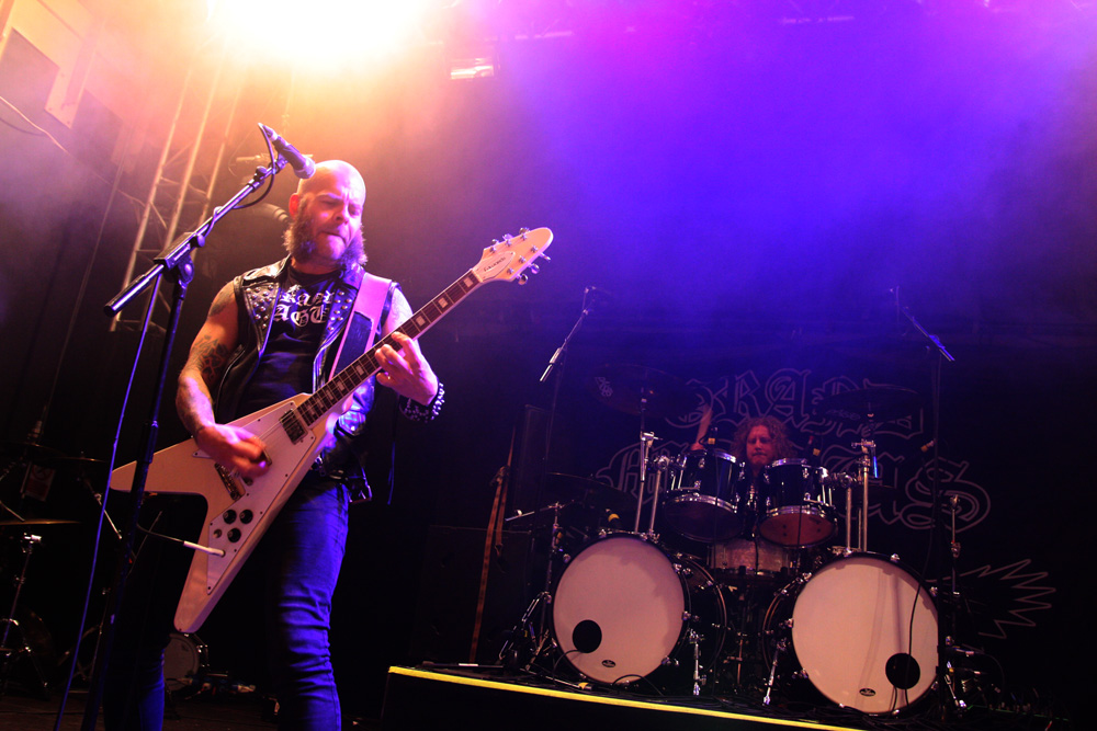 A song about Steel on a night of Viking metal is bound to even beseech those awaiting Enslaved. What could be more appropriate? There may not have been clashing swords but the metal was defiantly unleashed. From steel we go to Iron Will (see what they did there) and the band really are playing like headliners keeping it all at boiling point for the more than appreciative crowd. There’s a little in between song banter here and there, bassist Fox tries to talk and JB tries his best to shut him up. The Maidenesque choruses and licks hit all the right notes and the set is full of classics, older numbers like Wolf’s Return going down particularly well. There’s even time some way along the line for Ludwig Witt to really get in on the action with a drum solo. I have no problem even watching that. After all he did use to be in Shining. Valhalla Rising gets called banana rice for some reason by the vocalist but it does well to deliver the pudding close to the end of the set. They are not done yet and even get an encore as they tell us the show is being recorded laying down the ‘Hammer Of The North’ and leaving us dizzy trying to get breath back before Enslaved!