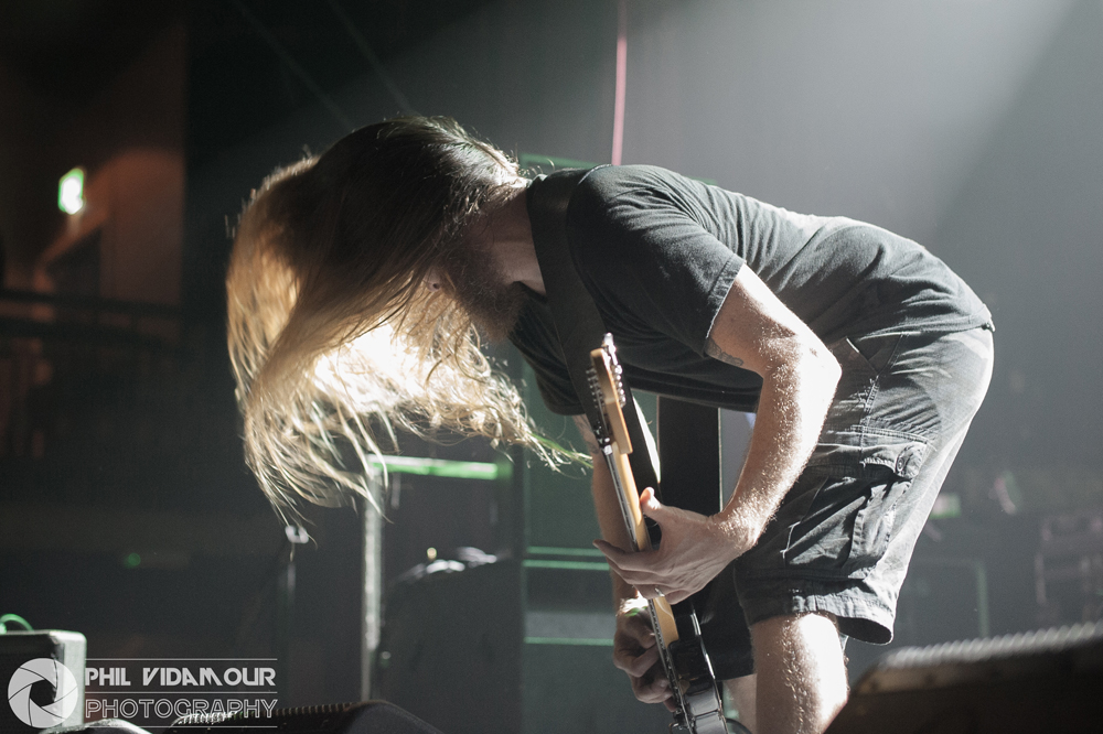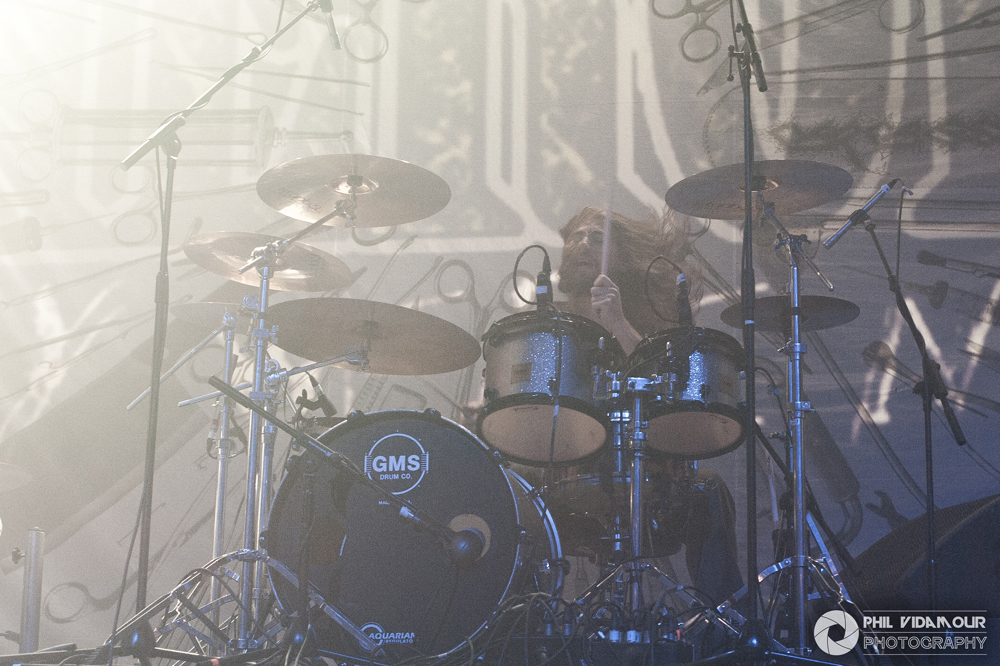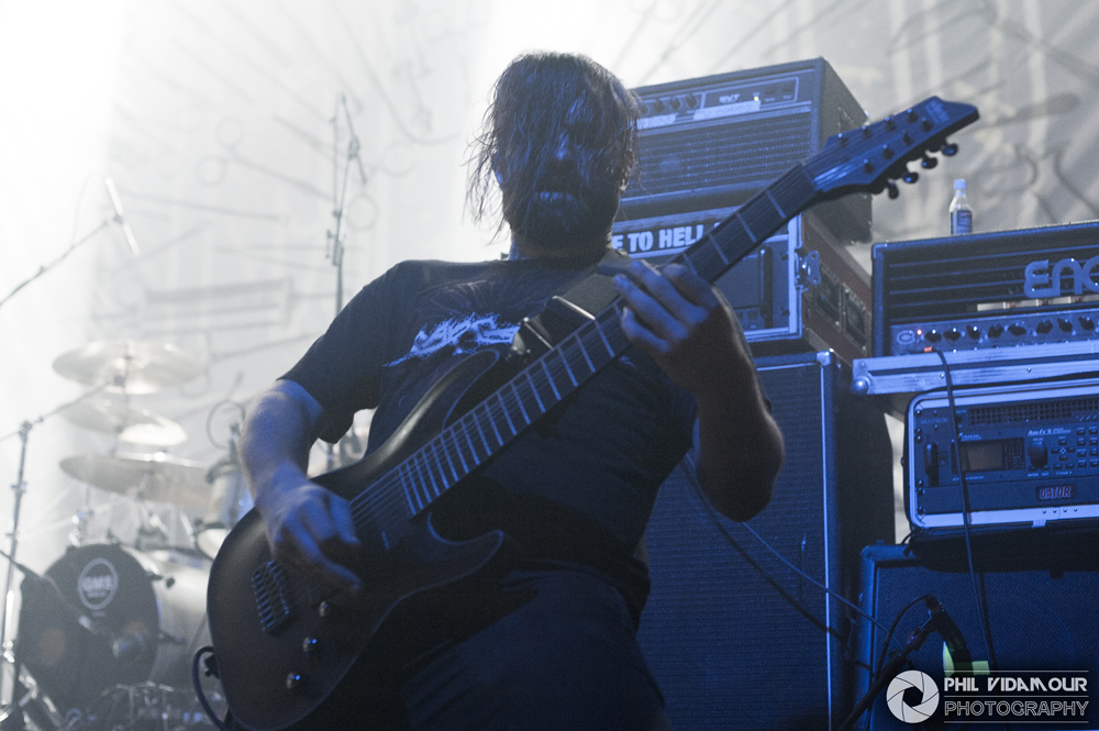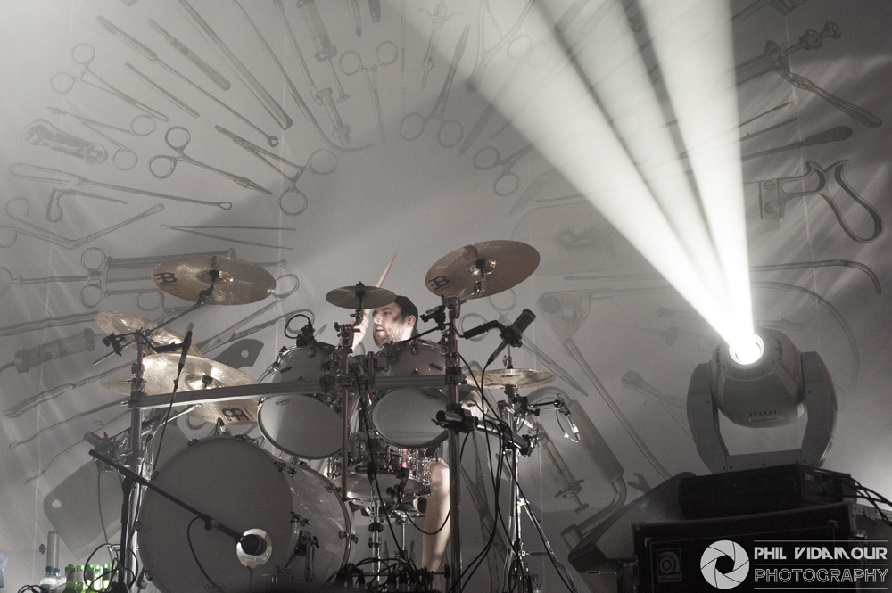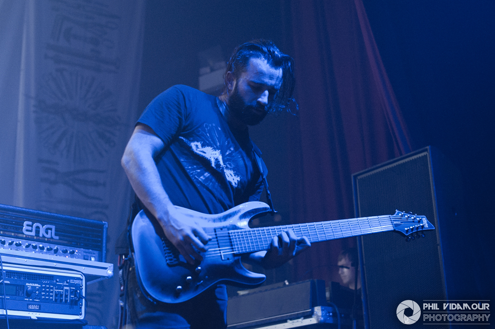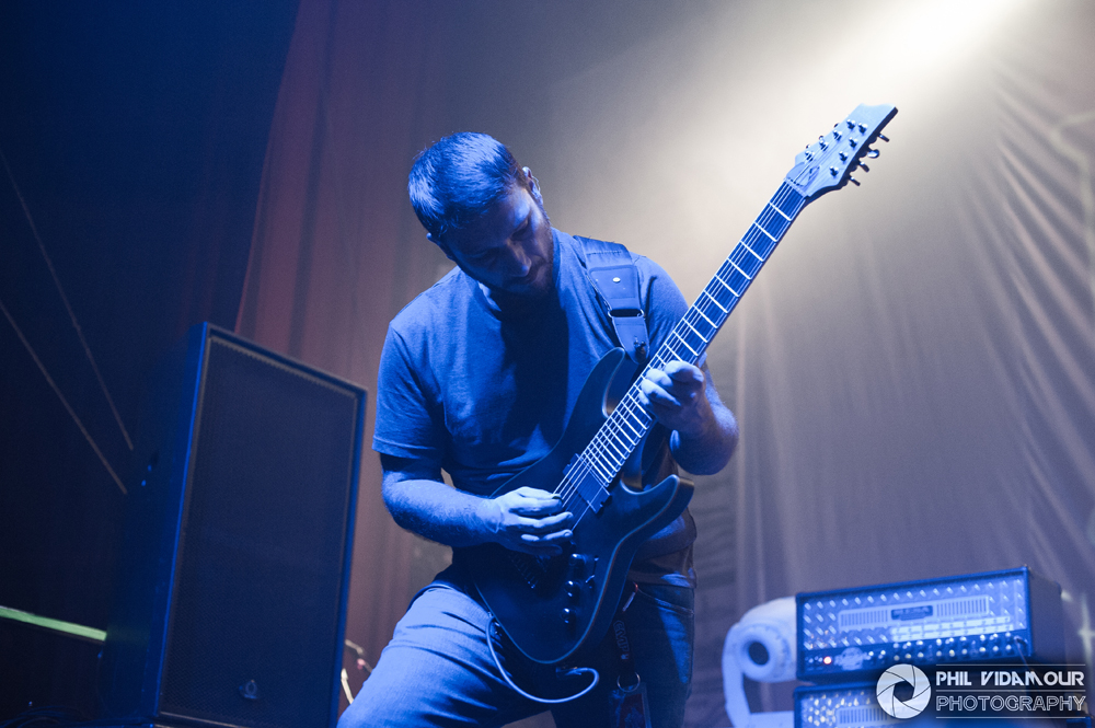 Up first were Herod, a hybrid of djent and sludge from Switzerland. The four piece had some phenomenal volume to them with dome pounding drums and real crushing guitars which rattled the low end of the sound spectrum with every power chord hit and a singer who had one hell of a voice on him, but something was missing at first glance. Upon closer inspection i.e. – getting o the front rail because the venue was slowly filling up during their set, I noticed the lack of a bass player in the live line up. When wondering where that booming low end was coming from, a quick count of the number of strings on the guitars revealed them to be eight strings which pretty much confirmed the heavy Djent influence. With the tuning probably set into the lower end of things to make up for the lack of a dedicated bassist in the live setting, it was a tremendously heavy filthy noise which was unleashed in their short set. With almost drone-like pounding rhythms at times and harshly growled vocals and polyrhythmic shifts when it kicked up, they served well as a warm up but to me, didn’t really come across as something to write home about just yet. Perhaps with a longer set and not sharing the stage with bands who created such a sense of anticipation about the evening might help them in future should they return to the UK.