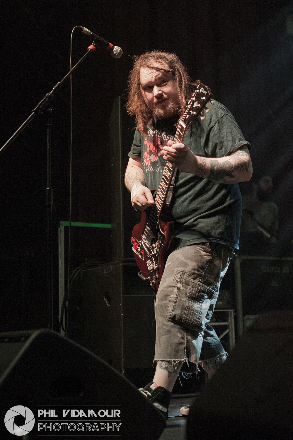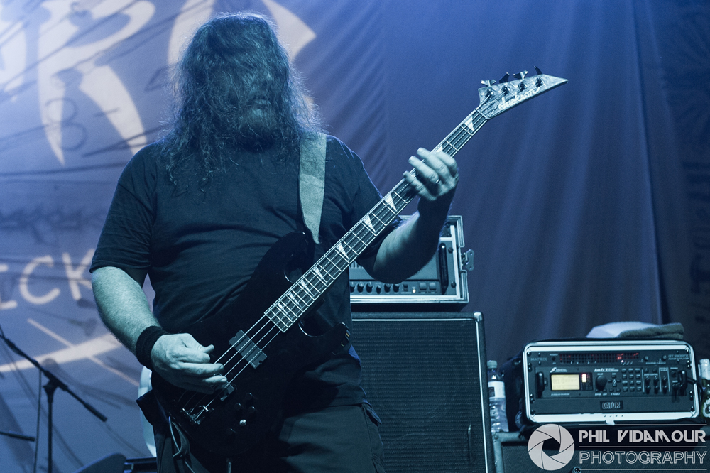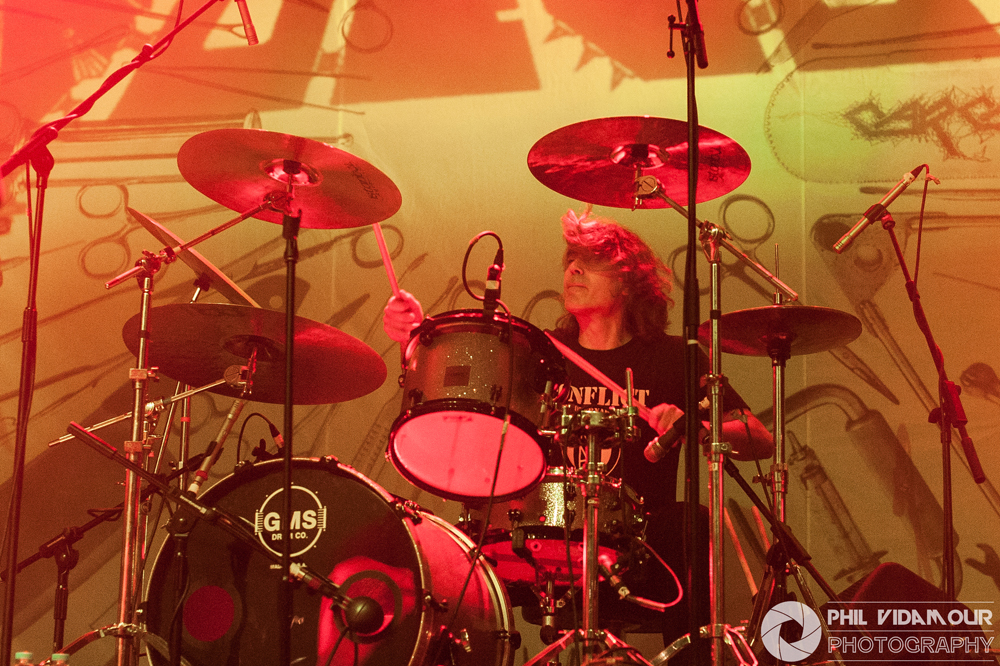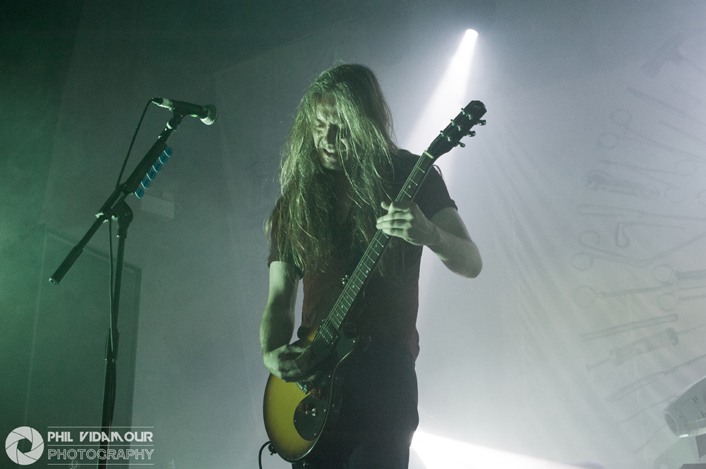 With those two fantastic sets to follow, headliners Carcass certainly had to rise to the occasion and as “1985”, the opening instrumental from Surgical Steel played with its death metal flavoured NWOBHM harmony lines, the place was really building up for it. When the band took to the stage and Jeff got his fan turned on so he could keep his hair blown back at all times, the madness begun and it was hard hitting from the first note. Bodies flying, snarled raspy vocals and breakneck speed riffing could only mean “Unfit For Human Consumption” was the opening barrage and what followed was exactly what you expected. “Buried Dreams” from Heartwork got the place bouncing and when the forays into Necroticism’s tracks came in the form of “Incarnate Solvent Abuse” featuring as track number three, it just went insane to the point where this reviewer suffered a new pit injury – a bite to the head… Well, it was Halloween weekend so maybe someone was taking the zombie thing a little too seriously.. But still, that didn’t stop me! Jeff’s ‘witty’/Snark was delivered with the same dry humour he is known for and the musical delivery was spot on, going as far back as dipping into Reek Of Putrefaction for a track or two and even touching on Swansong with “Keep On Rotting In The Free World” slowing things down, but as always, Necroticism’s “Corporeal Jigsore Quandry” and the title track from the legendary Heartwork album, “Heartwork” as a set ender capped a solid performance.