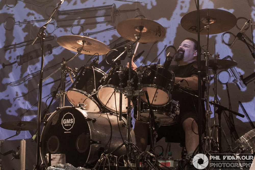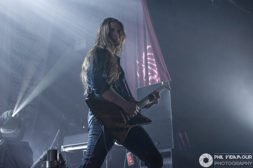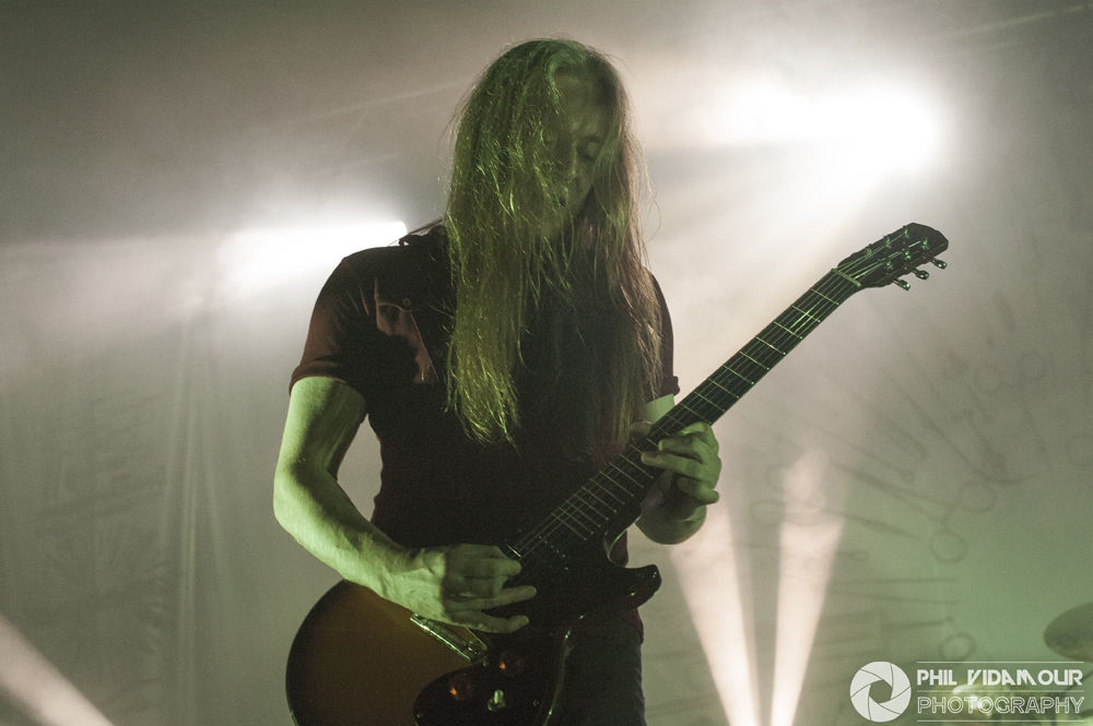 Following on came legendary thrashers Voivod. Having caught them at Bloodstock last time they played it, I will admit I wasn’t sold on them live. I’ve not heard much by them and whilst I do love thrash, something just didn’t click for me back then. Thinking it may have been a case of some bands perform better indoors than outdoors, I approached this with an open mind, eager to see if I could be swayed. The four piece had a tremendous sound which had all the trademarks you wanted from a thrash act – beefy bass, cutting guitars, tight drums and powerful vocals with some great stage presence, but for me it just didn’t do ‘it’. I love my thrash but Voivod just lacked that spark which would have really caught my interest in them. That’s not to say they were dire, far from it. The venue had filled up nicely by the time they had taken to the stage and they had the crowd in the palm of their hands and were really enjoying their performance. They really got the place livened up, but as their set finished and the next backdrop went up, I don’t think it could have got any livelier.
