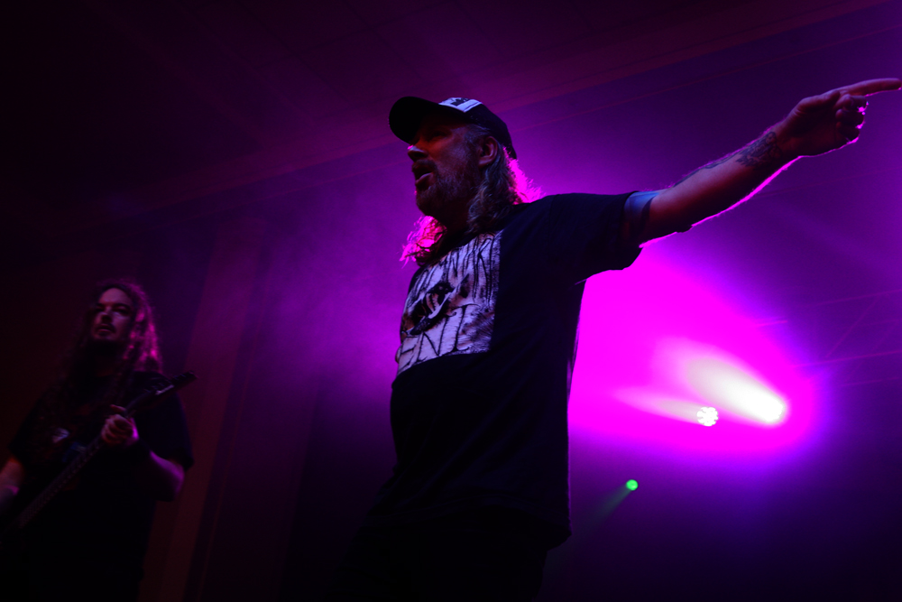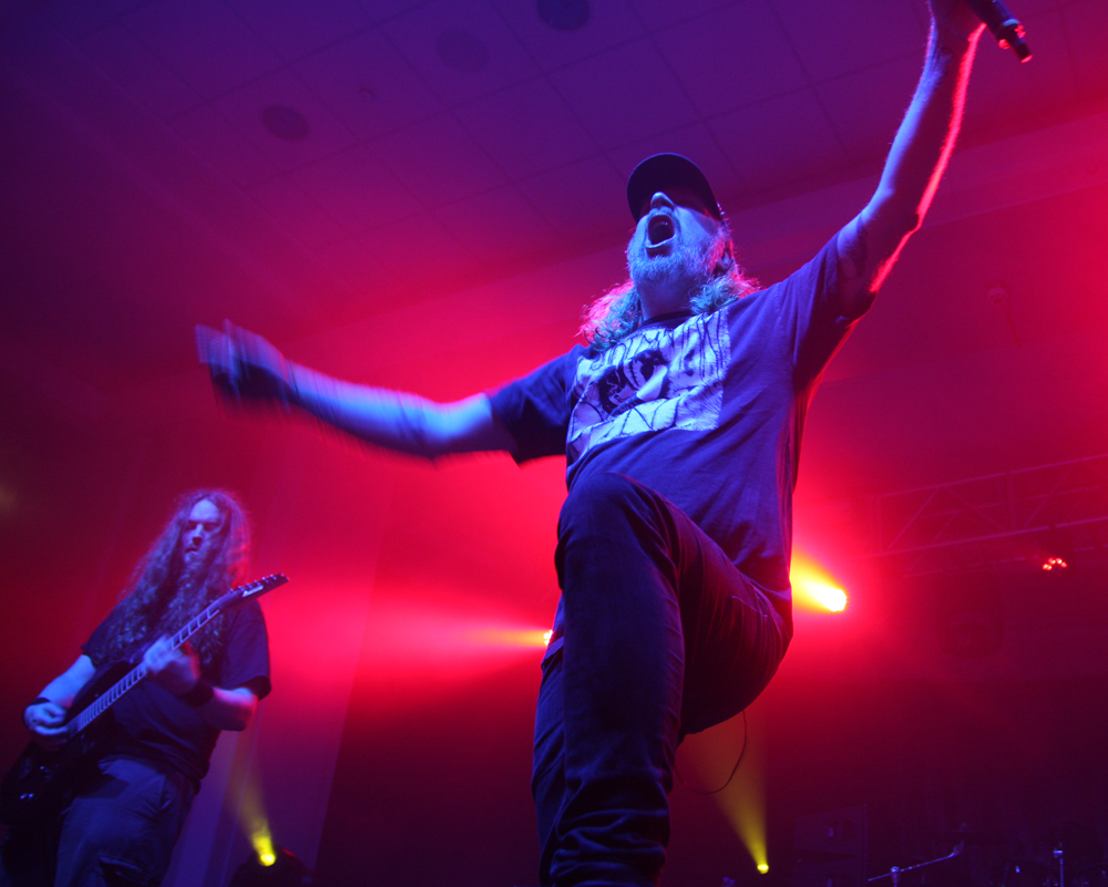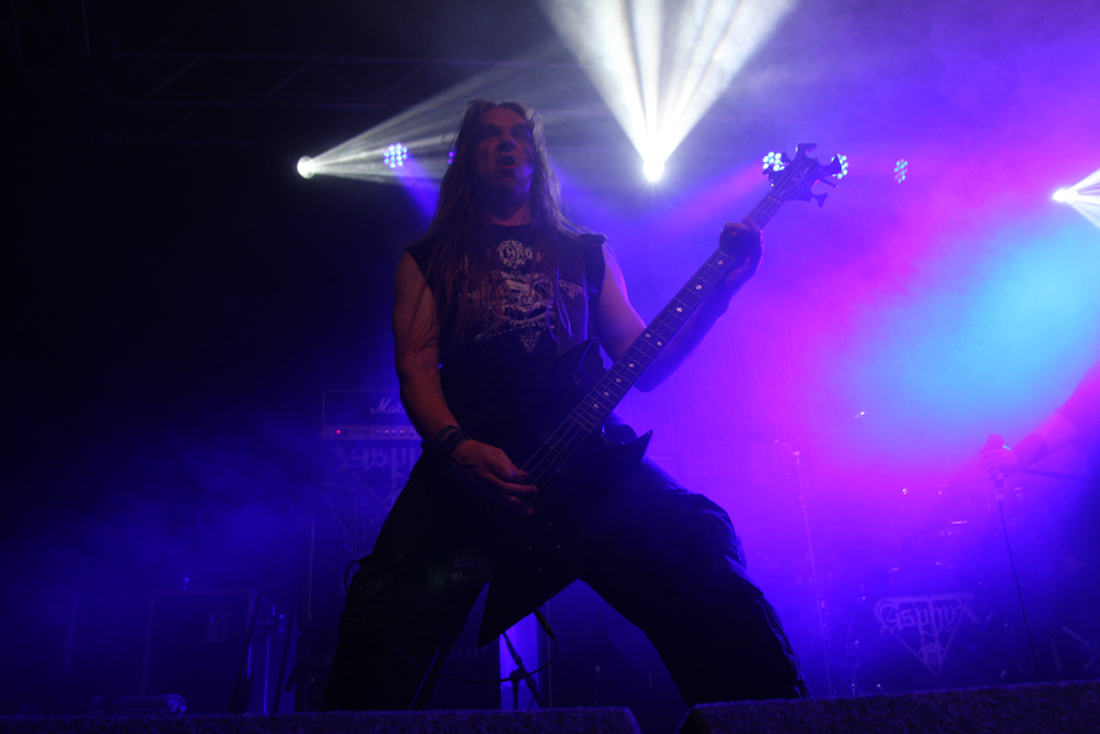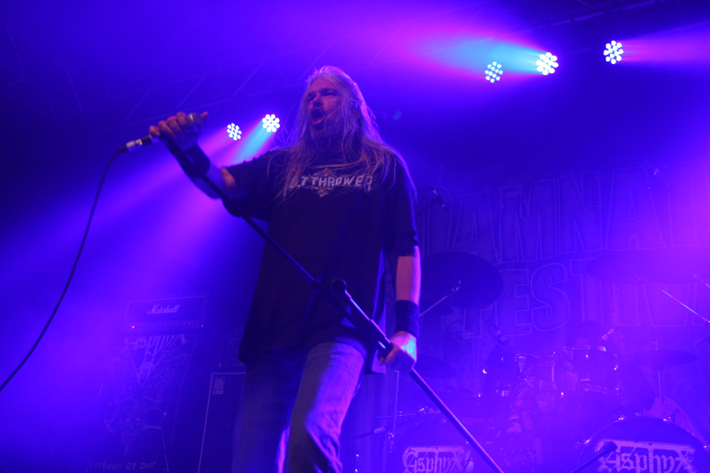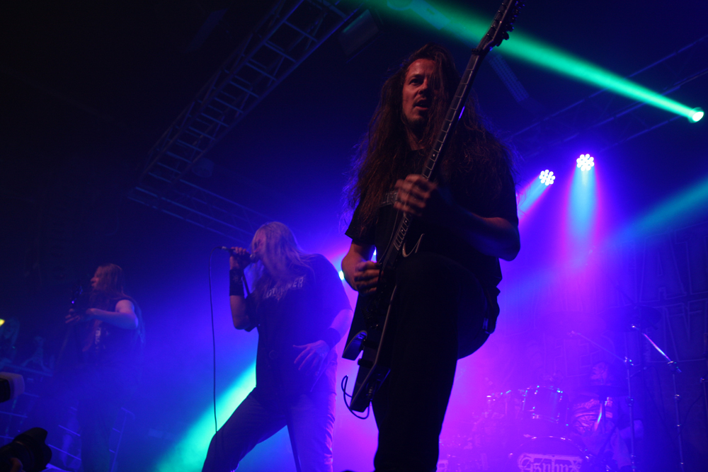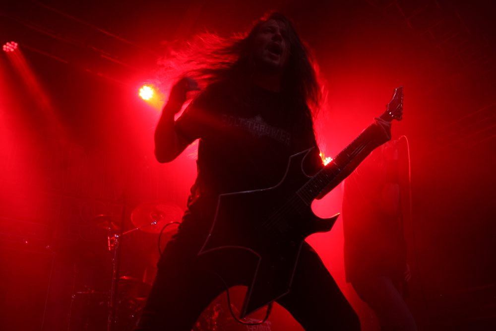 Apart from catching some of The King Is Blind earlier on, Asphyx marked my first real foray into the Terrorizer stage, the place where I have spent most of my previous visits to Damnation given the quality of bands which have graced it over the years. The room quickly filled up and as the three tiers of the location were quickly rammed with people desperate to catch a glimpse, I soon discovered why – this was a band who had only ever played England twice in their history, and this instance, being the third time was also their first time playing outside of London. This was a massive grab for Damnation and yes, Asphyx may have fit the bill as the type of band you expect on the Terrorizer stage, but surely with their reputation and the actual significance of this set which was about to go down, placing them on the Jägermeister stage should have surely been a no brainer? Needless to say, the moment the Dutch death metal outfit took to the stage, opening up with “The Quest For Absurdity”, it pretty much gives one answer as to why this band were not on the main stage – the lowest tier of the Terrorizer stage area exploded to life. From my vantage point up on the top tier, it reminded me of the chaos which bands like Mistress, Lock-Up and Stampin’ Ground have unleashed on this stage over the years, and yes, it was magnificent to watch. The legendary death metal outfit stormed through the tracks and the dedication of this set in memory of Martin Kearns of Bolt Thrower, the crowd were into it even more. A full on maelstrom of death metal surged through the Terrorizer stage, taking everyone by the throat and not letting go. Track after track, they just punished the stage and the triple onslaught of “Death-hammer”, “Wasteland Of Terror” and “Forgotten War” was one of the best death metal moments I have witnessed in all seven instalments of Damnation which I have attended! (Fraggle)