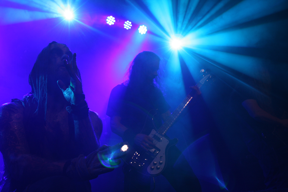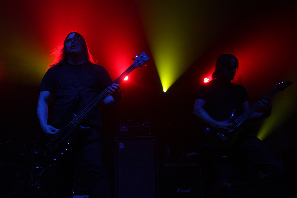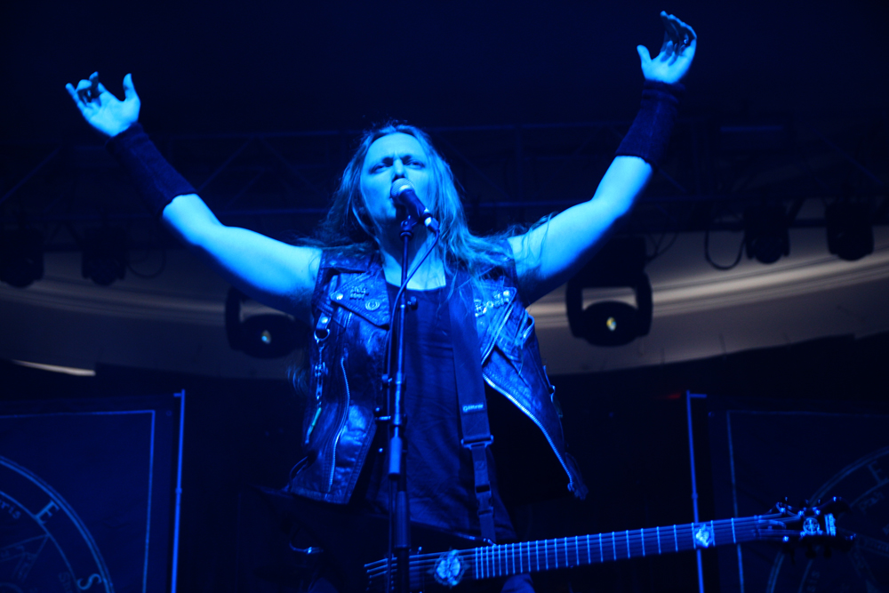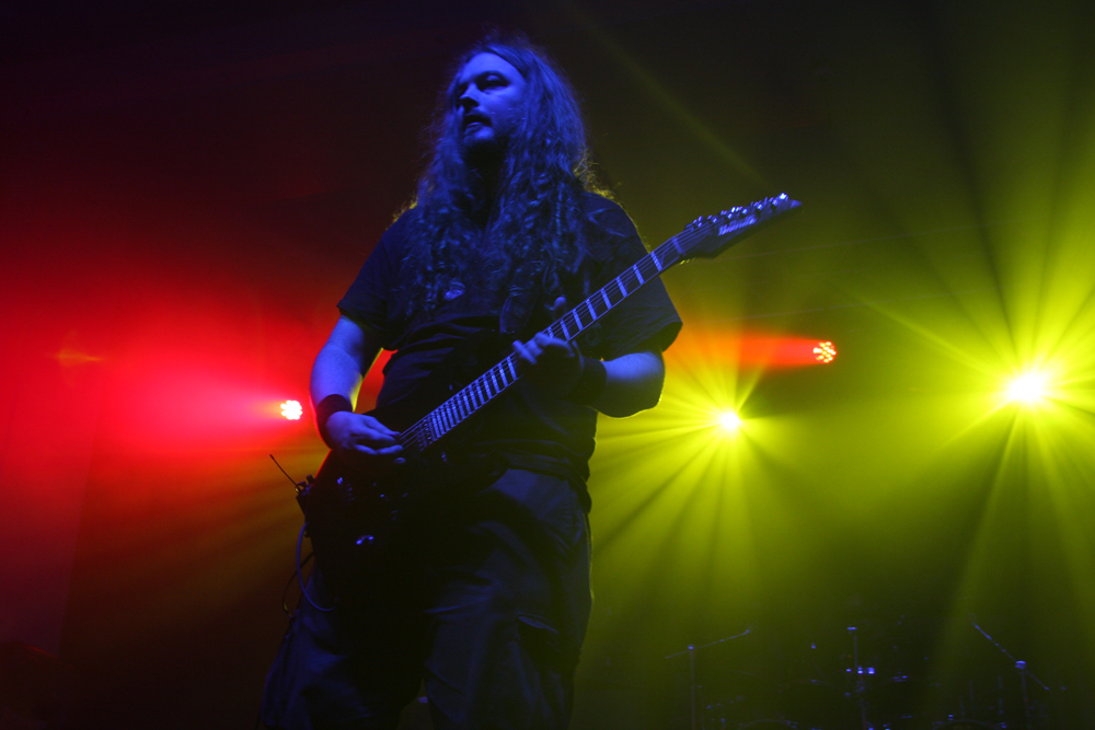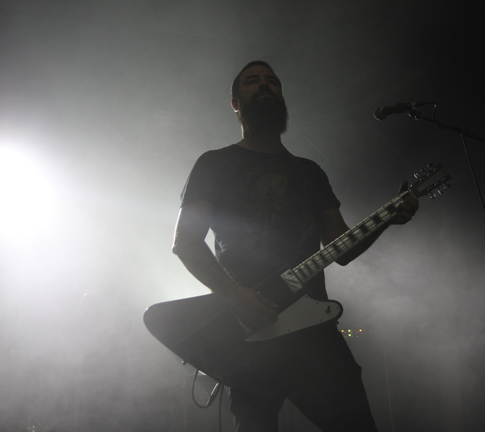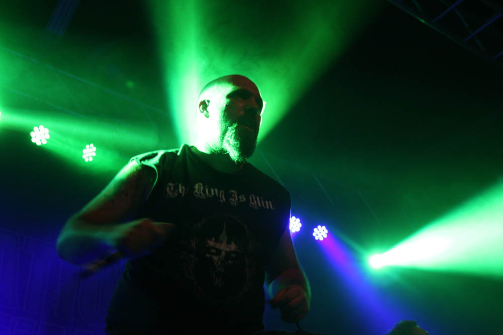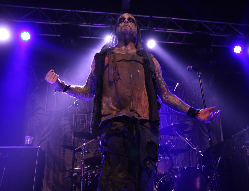 It’s the second time I have caught Primordial this year and one of countless appearances I have seen over the years stretching right back to the mists of time when they first unveiled Imrama tracks in Camden. The passion and heartfelt performances have not changed since then but one thing I realised standing right by Alan Averill as he beseeched us with foot on monitor that needs to change soon is his stage apparel. Put simply it is more than beginning to hum a little and exudes the stench of rottenness, death and famine. I guess it goes well with the songs. From the start they have the audience in their grip as they open with title track from new album ‘Where Greater Men Have Fallen.’ It’s intense, stirring and vitriolic as drums bounce around and the audience responds thrusting fists in the air ready for a good old fashioned sing along. The ever flamboyant frontman acts out the melodrama within the music with theatrical flair and stirs the packed in masses to boiling point causing a rush to the bar in the process as these are songs designed for swilling hard to (not that we needed any excuse for that). The two guitarists and bassist are locked into position strumming away heads twirling in time to the thunderous beat of the epic songs as the frontman stalks the stage looking like a caged lion as they construct Babel’s Tower from the roots up but it seems like everything is leading up to ‘as Rome Burns, which has more than a little fire in its belly. Everyone joins in singing for the slaves and looking at the crowd from the back balcony of the venue there is a huge sense of atmosphere watching the pressed in bodies united as one. It took a lot of a discipline to have to tear myself away from the spectacle to go and get in position for the headliners tonight and with ‘Empire Falls’ ringing in my ears I knew this was going to be a tough act to follow, so it was a good job the heathens had been the headliners on the Terrorizer stage tonight. (PW)