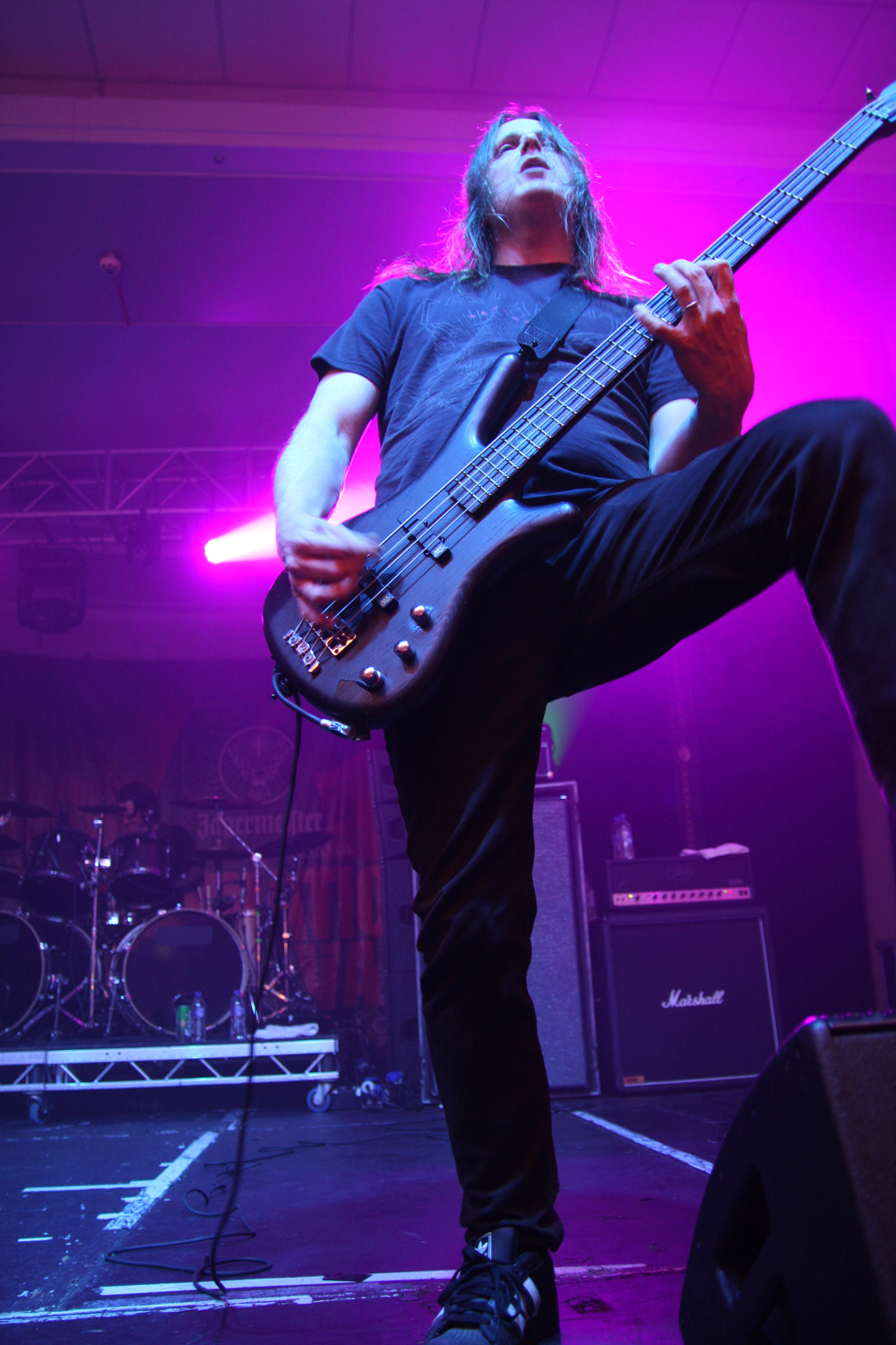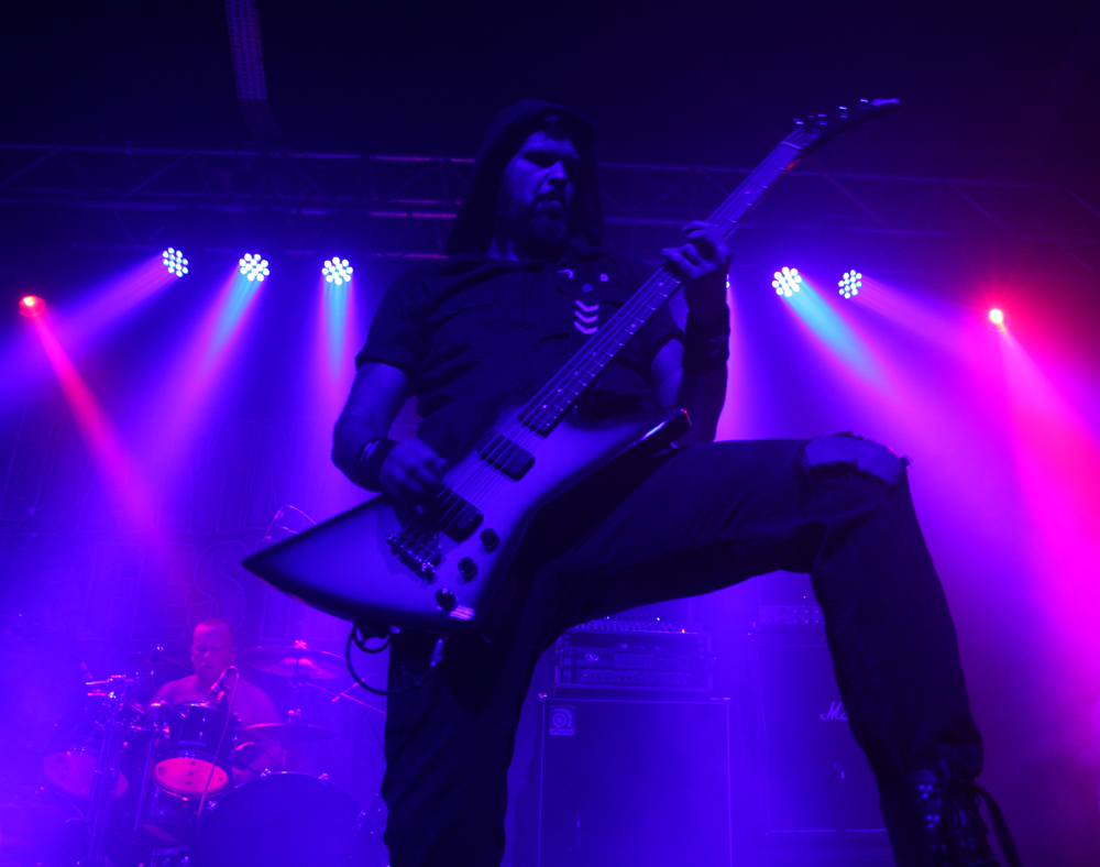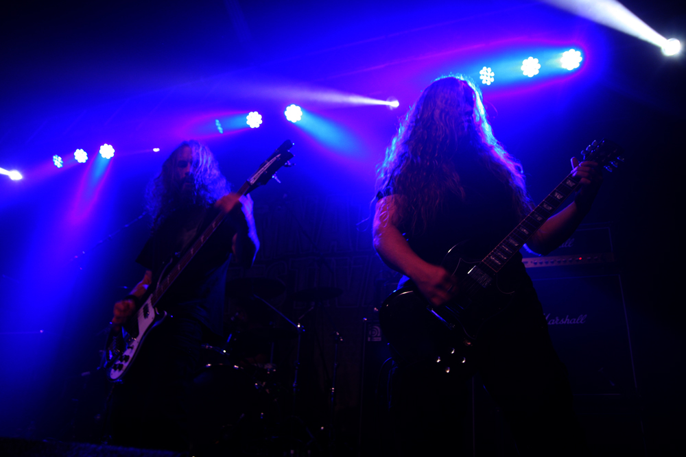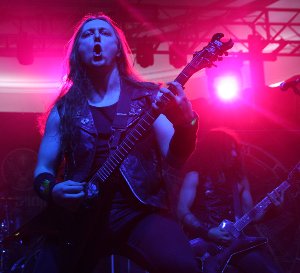 By the time it hit 14:30 and I’d finally got myself in some working order (i.e on to pint #4) Savage Messiah were about to hit the main stage. Whenever I attend Damnation, I always make a point of catching the thrash band as usually the number of thrash bands or the quality of thrash on offer at events like this usually decides whether I will attend or not. With the likes of Kreator, Destruction, Evile and Sabbat all playing this festival, Savage Messiah were the next to grace the stage and from the opening bars of “Iconocaust” you just knew it was going to be good. With a real classic Thrash sound, hailing back to the heavier spectrum of the 80’s style, the four piece blitzed through their set with tremendous power and volume. People who were outside were drawn in by the window-rattling performances and were blown away by it. The one downside though were the guitars. The vocalist’s guitar didn’t seem high enough in the mix so a fair few of the leads in the set were hard to hear unless you got into a sweet spot somewhere. Still, what you could hear was solid, no nonsense fast paced thrash and by the time the closing track “Majority Of One” came on, the room had a decent sized crowd and was informed that a new album is on the way. Afterwards, some people remarked that the sheer sound of the rhythm section was what lured them away from the bar and those who are picky about their thrash seemed impressed too. All in all, despite some sound hiccups, a good start to my day. (Fraggle)