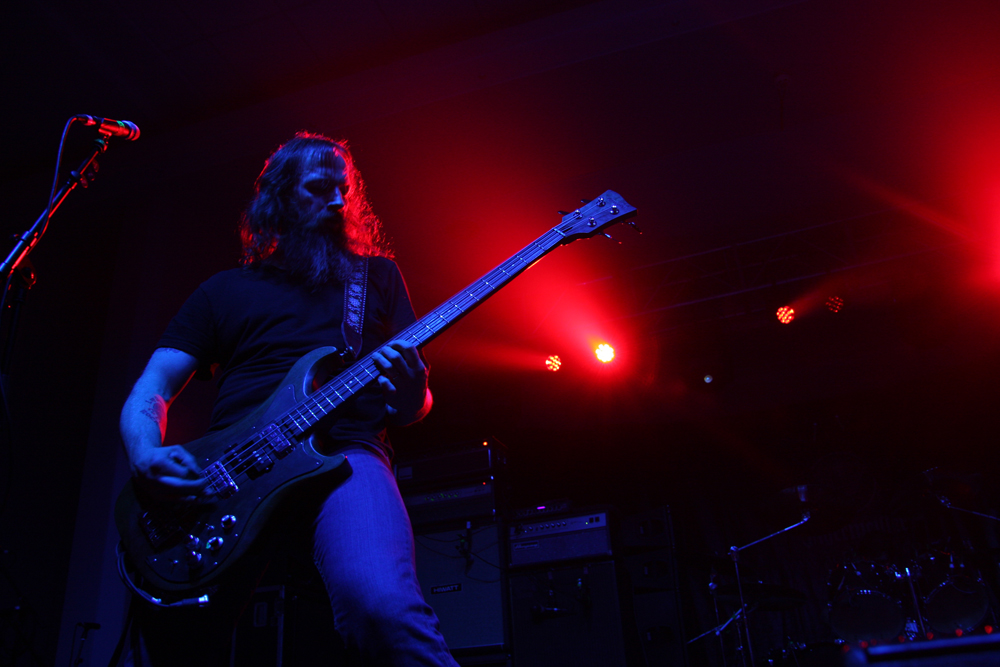 Up next for me were Sea Bastard down on the Electric Amphetamine stage. This part of the venue has a fantastic sound given how confined it is, but at the same time, it is such a nightmare to get too given the maze of stairs and corridors you have to traverse. Still, making it in there and picking a spot overlooking the floor area with a pint in hand, I was ready. The four piece from Brighton made a colossal noise during their very brief and final soundcheck and by the time they started up it was just crushing. With a fantastic stage presence and a real imposing image and sound to match, they laid waste to the crowd with some seriously meaty, pulverising sounds. Harsh controlled feedback, pounding bass and drums which made the floor vibrate to some extent and harsh sounding vocals all combined to a slow pace which felt like being hit by a sledge hammer repeatedly. It was horribly miserable and that’s just the way doom should be. Thunderous sound, harsh vocal screams and a rich tone were delivered with such ferocity that they could easily be considered the heaviest band of the day in terms of volume alone. Taking the time to treat us to some new material in the form of “The Hermit”, Sea Bastard channelled the spirit of Sleep ala ‘Dopesmoker’ with some phenomenally slow and crushing riffs with even more intense vocals, bringing a rather delightful feeling of despair. After that, well, it was time to refuel and wait for the next band on my list. (Fraggle)