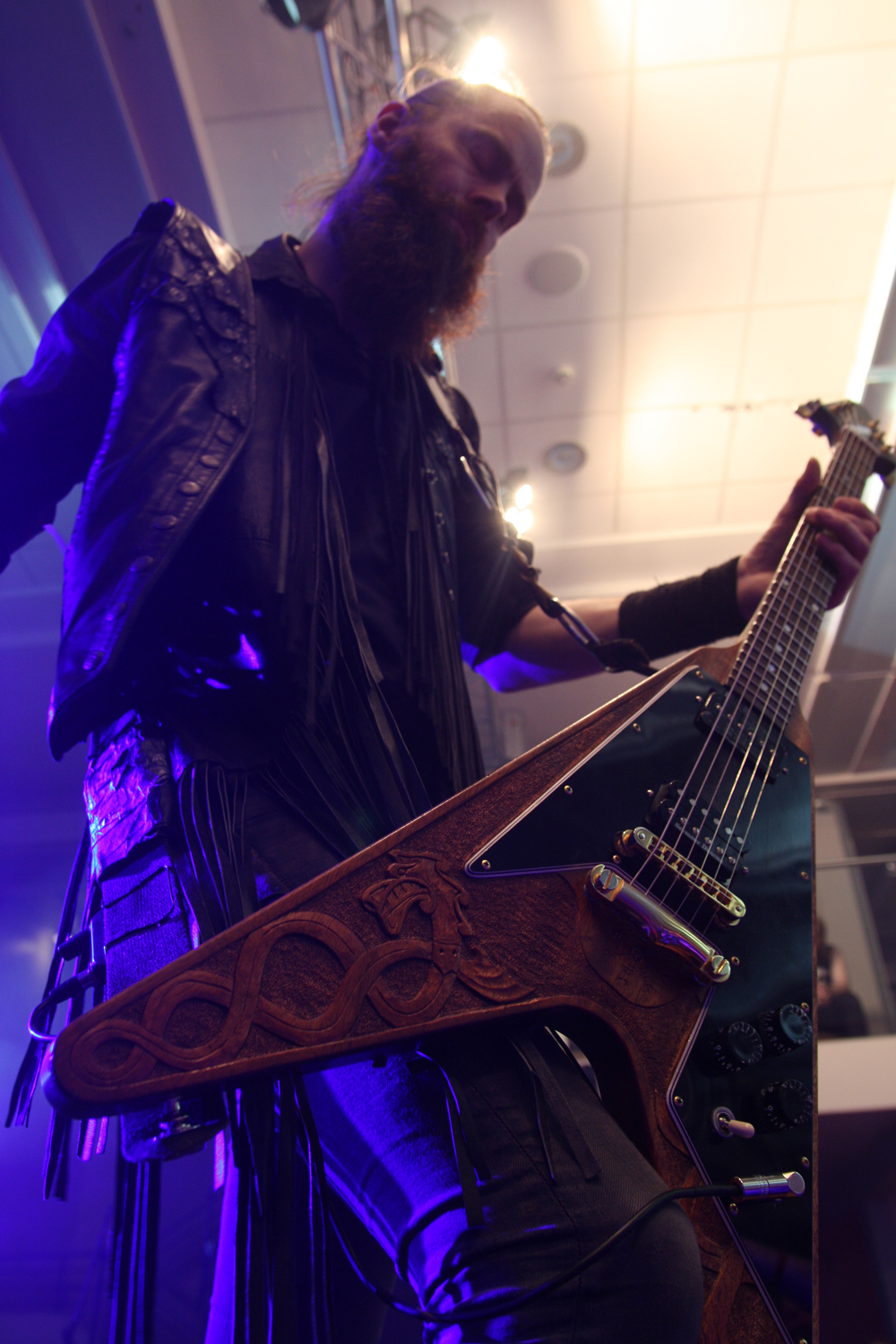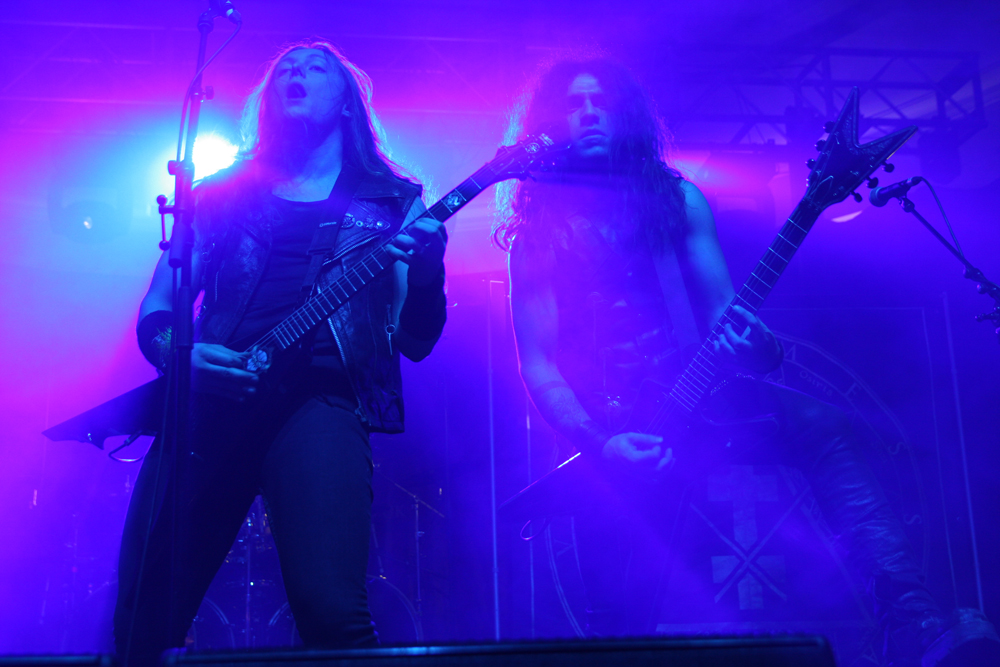 Ah Vreid here we are again, same stage, same festival, same déjà vu of me trying my best to get enthusiastic and attempt to bounce about to your Norse heathen cleave. Yet again though I fail dismally and after seeing so many great performances so far today cannot find anything particularly enthusiastic to say about you. The band are no strangers to England in fact they play here all the time and perhaps that is part of the problem especially when acts like Kampfar who have not played this festival and have an absolutely storming new album could have been here instead. Vreid too have new material and open with Når byane brenn from album Sólverv. The Norse tales of this and older numbers such as ‘Raped By Light’ go down well with most who are happy to jig about down the front, pump fists and shout out ‘hoy, hoy, hoy’ along with the band but I just fail to find a spark about this and to be honest the band look like they are pretty much going through the motions, maybe due to being part way through a long tour cycle. It’s not that they do anything particularly wrong but try as I might connecting with them is just a fruitless task and Pitch Black or not it’s time to go and look for other shades of darkness. (PW)