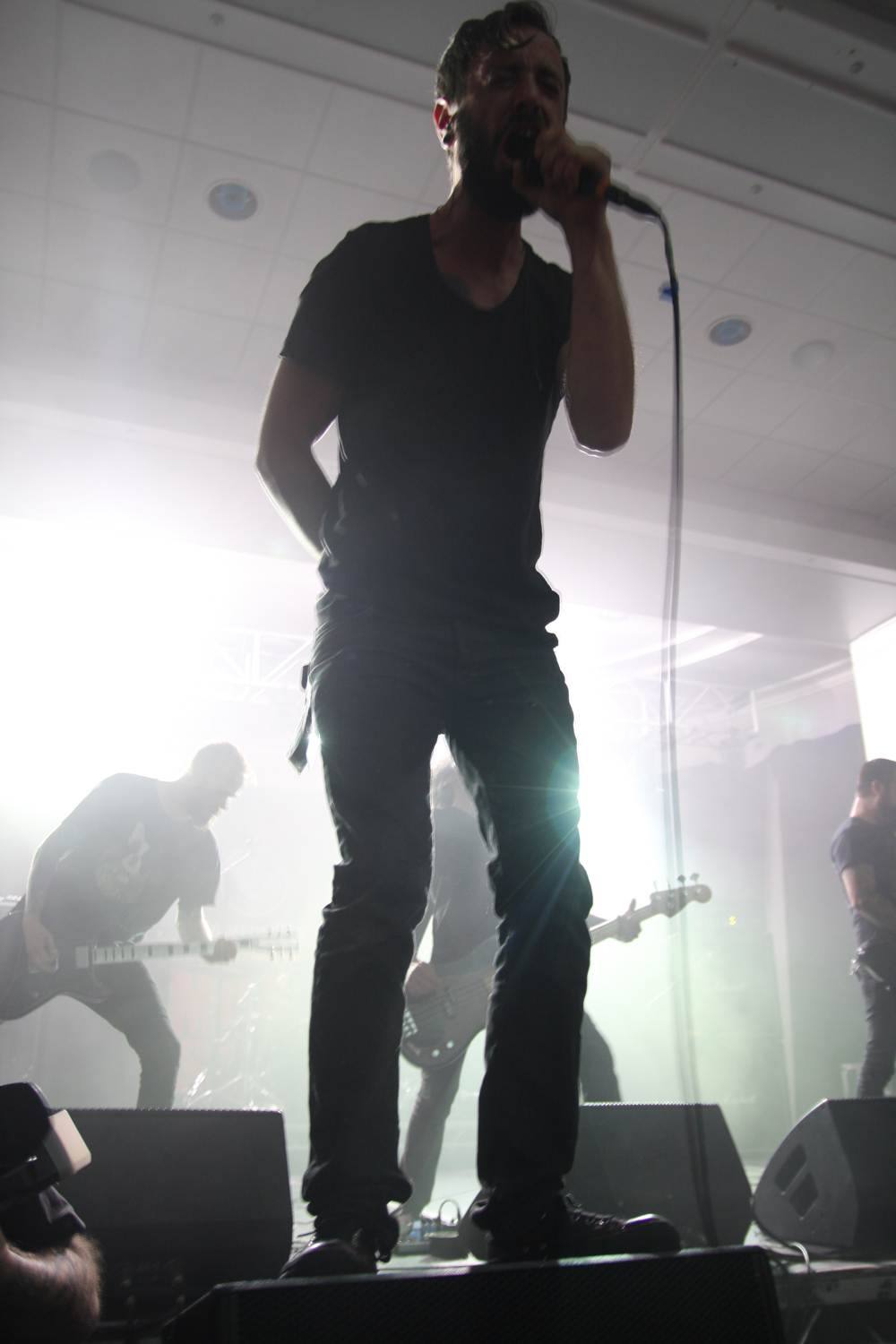 We may well be in Leeds but there is no escaping the smog and chaos of London as Voices return to Damnation and set about putting on one of their scary exhibitions on the Terrorizer stage. No strangers to us and indeed delivering my favourite album of last year it’s always a pleasure to see them in action and as they swagger into ‘The Actress’ I stand watching Sam Loynes twist and turn into contorted shapes as he devilishly mangles his guitar into notes that should never really be played for human consumption. The jagged riffs surge and seethe into the likes of ‘Vicarious Lover’ and Pete Benjamin acts as possessed forcing all sorts of sounds from his vocal chords again sounding demonic and completely off the scale of comprehension for anyone who has never encountered them before. A slight break has to occur as the bass monitor goes awol for a while and when it thickly strums back in there roar of appreciation from the gathered throng of patrons. We are taken through the streets of desperation that is our home town with various thick black emotions, shimmering guitars and clean vocal chants and the effect is absolutely stunning as always with this lot. ‘The Fuck Trance’ is huge and ‘House Of The Black Light’ as frightening as anything ever put to musical form. Building up to ‘Last Train Victoria Line’ we are left stranded by this story of spurned love and seriously in need of a pause and sit down to recover. Unfortunately having done just that all I heard for the rest of the day was just how good Oathbreaker were, doh! (PW)