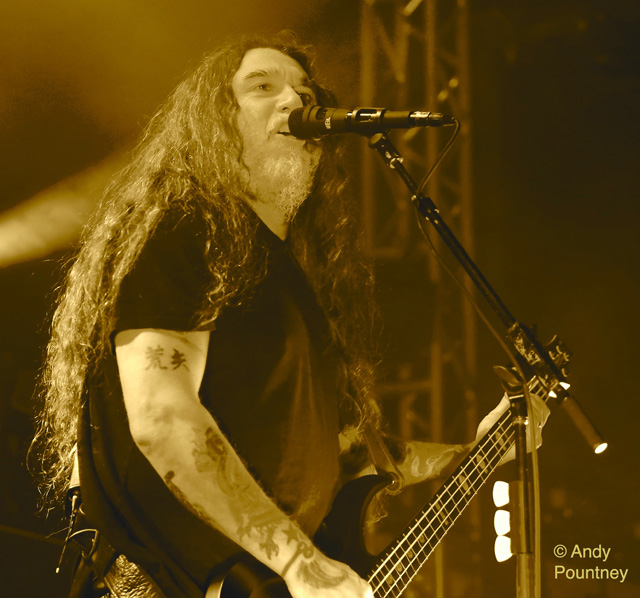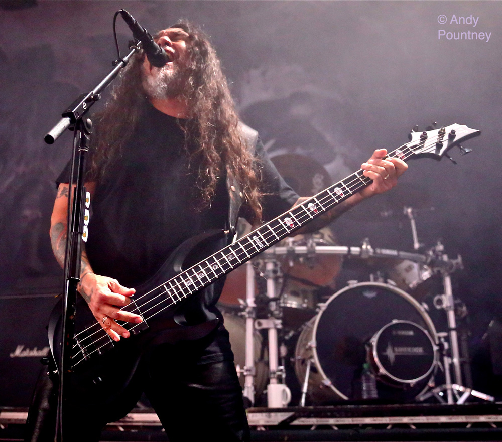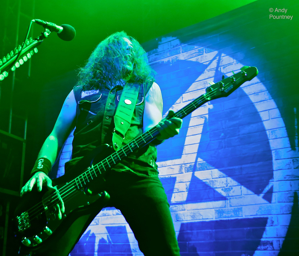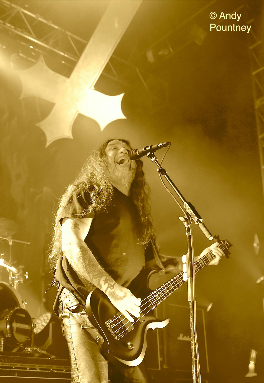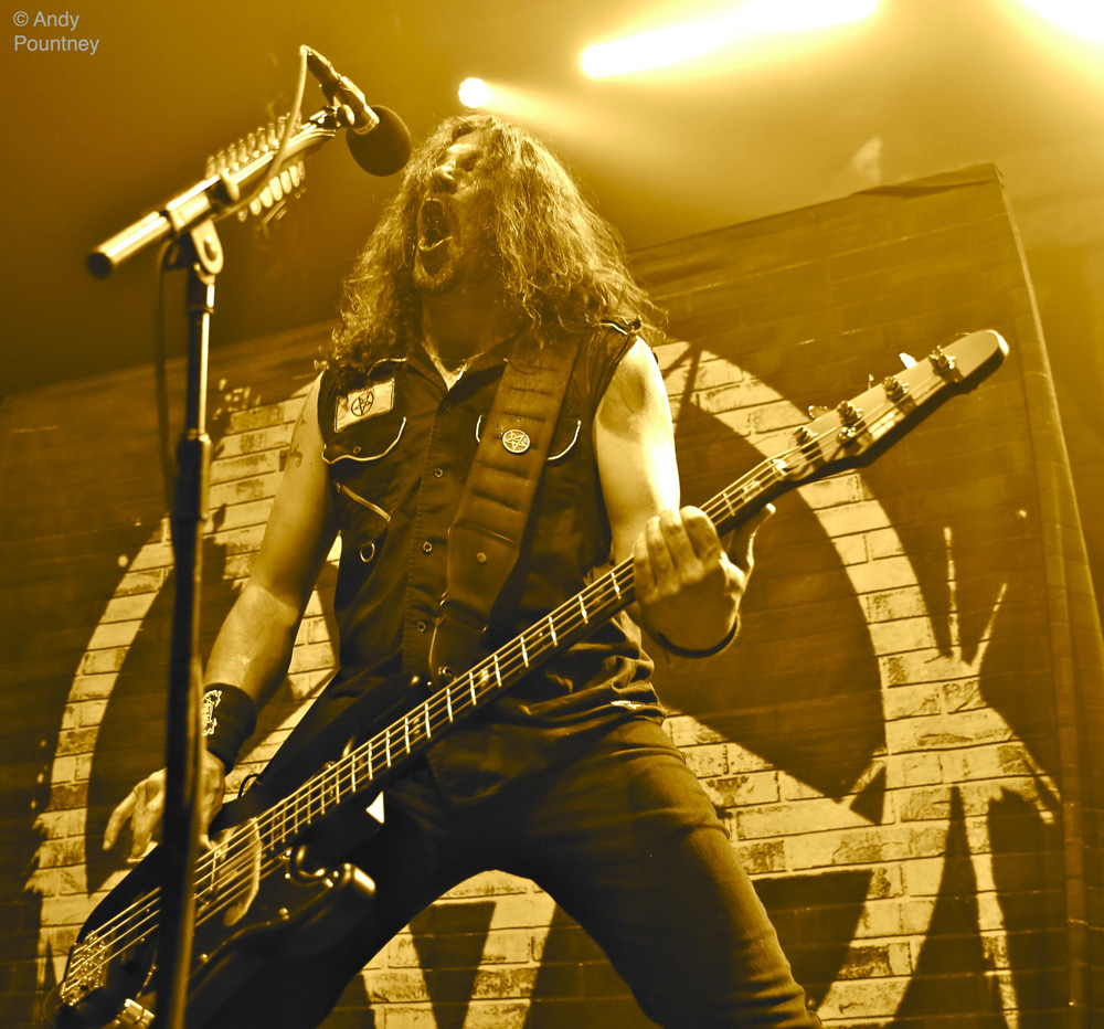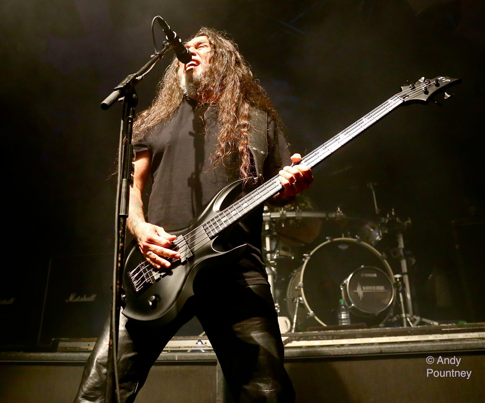 Tom chatted to the audience after the triplet by bellowing ‘are you ready!’  then screaming ‘Waaarrrrr Ensemble’ as I could see that Kerry had his massive chains hanging down from under his shirt and was headbanging like a nutter for the song. Gary Holt was on fine form playing the riffs and leads brilliantly but injecting his own trademark fret smouldering. Taking an opportunity to capitalise on the crowds convulsing fervour “When The Stillness Comes” and “Take Control” from the new album were aired and whilst some bands are nervy of new material these were received like old favourites with mental pit action to accompany them.