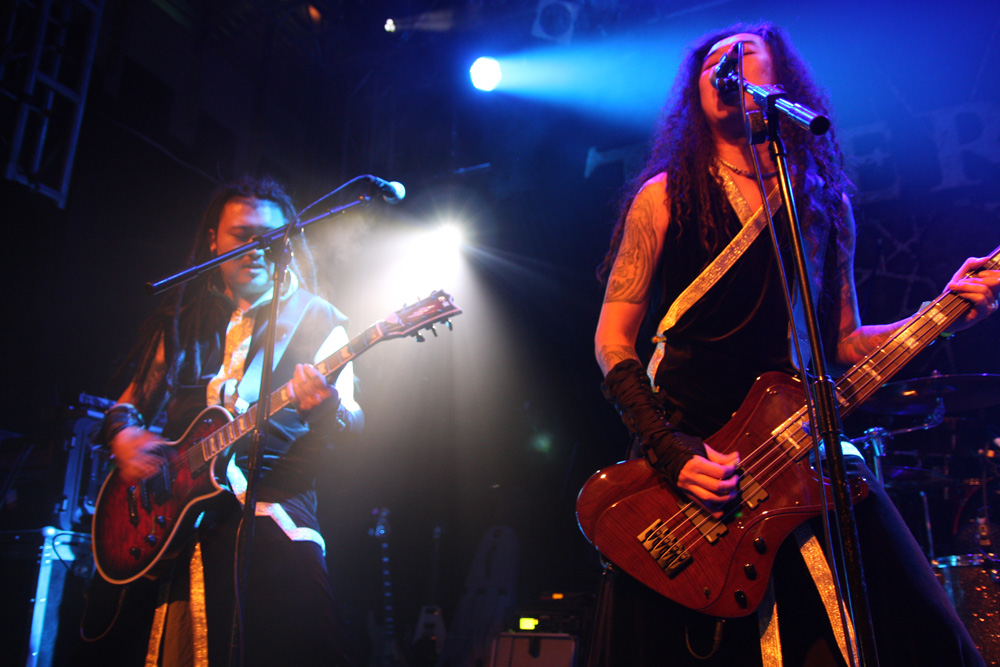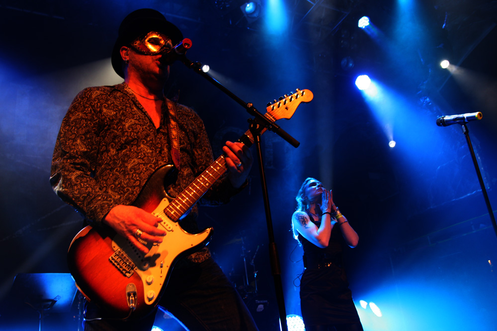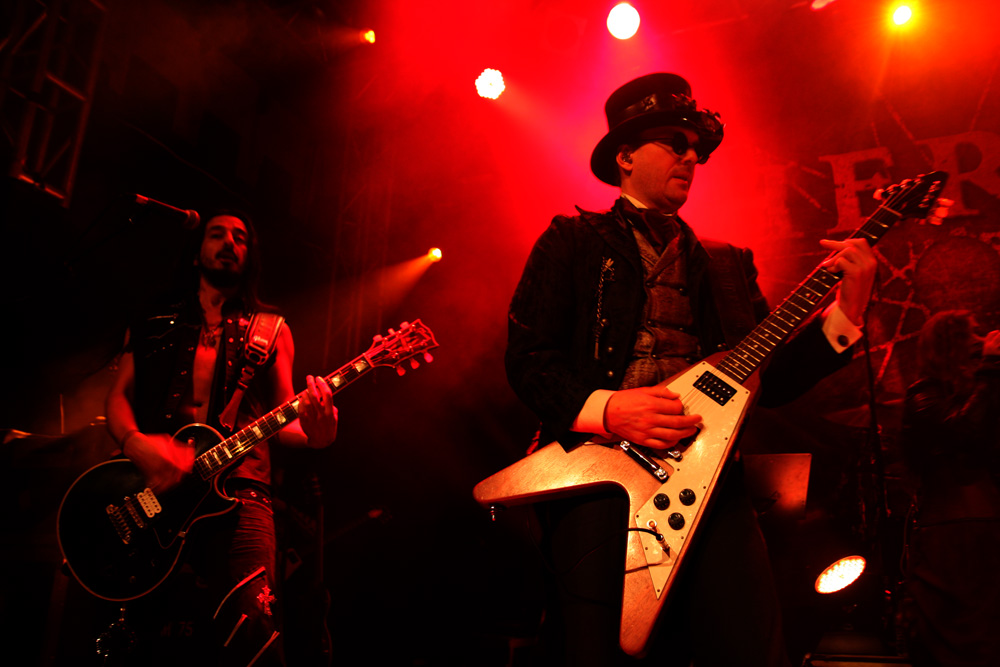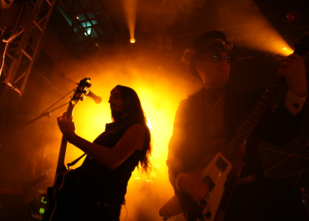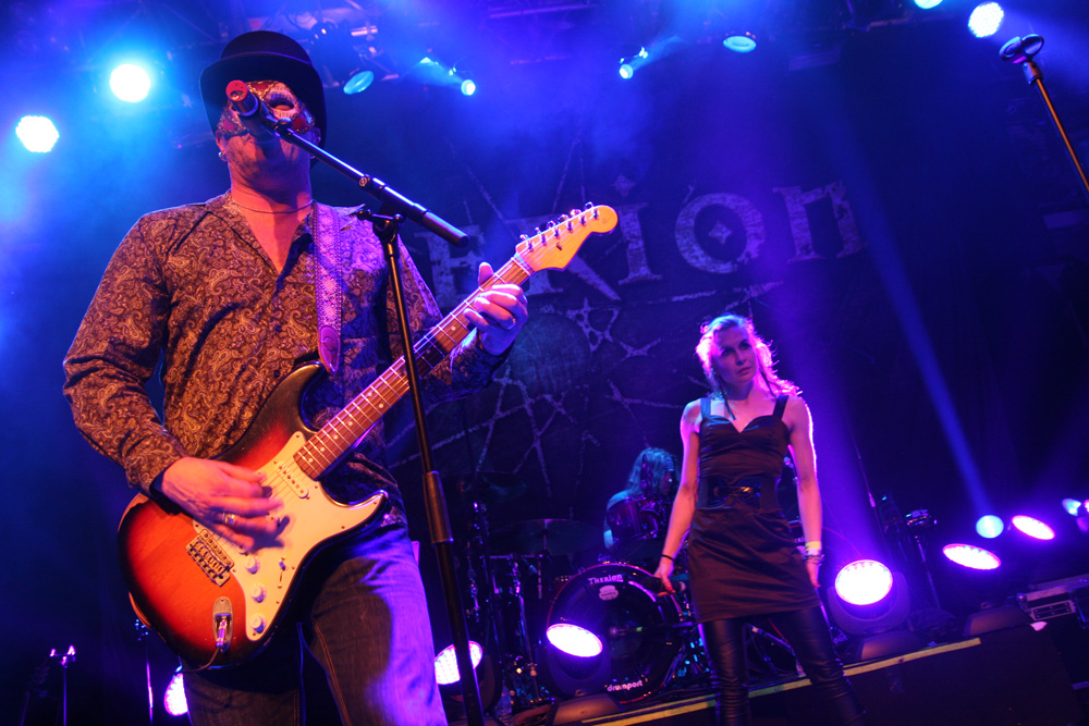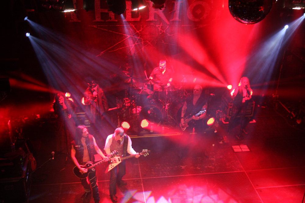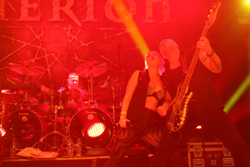 TherionTourWe normally get Therion over just before Xmas in fact you could say that for some of us it is our annual pantomime. This time around they chose to appear in the New Year to regale us and they brought some interesting supports from all sorts of far-flung places to entertain too. First of these at the early time of 6.15 were Imperial Age from Russia. As they had come so far it would have been a bit rude not to go and catch them. This was powerful, operatic and bombastic stuff with plenty of vocal variations, all of them of the optic shattering range. Lead singer Alexandra would have been more than enough for most bands but the keyboardists Aor and Corn on either side of the stage joined up with her in the middle and sung along too. The combined effect of the three of them along with the instrumental symphonic clamour was more than enough to blow you away (and very nearly off your feet). Naturally there is a certain amount of pomposity and theatricality about the display but those wandering in seemed to quickly get in the swing of things and the group’s dynamics are hard not to find invigorating. I wondered how big this lot are on their home turf. It may have been a bit thin on the ground here but they were getting fists pumping and some sampled traditional pipes helped drive things along too. A ballad came a bit close to Disney fairy-tale histrionics but that goes with the territory and the heroic thunder of the last number with the drummer not far off blasting away was a final charge that impressed no end.