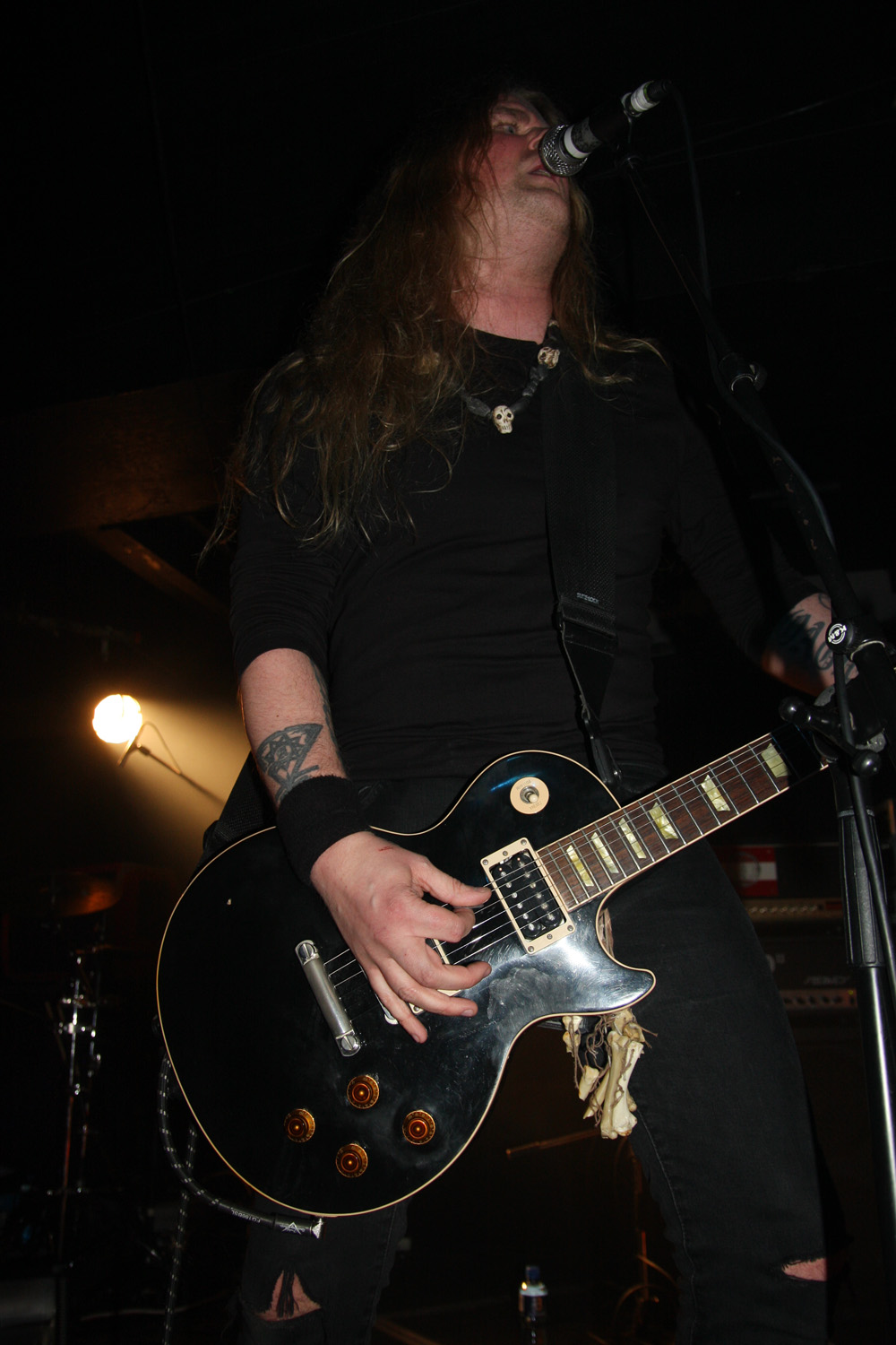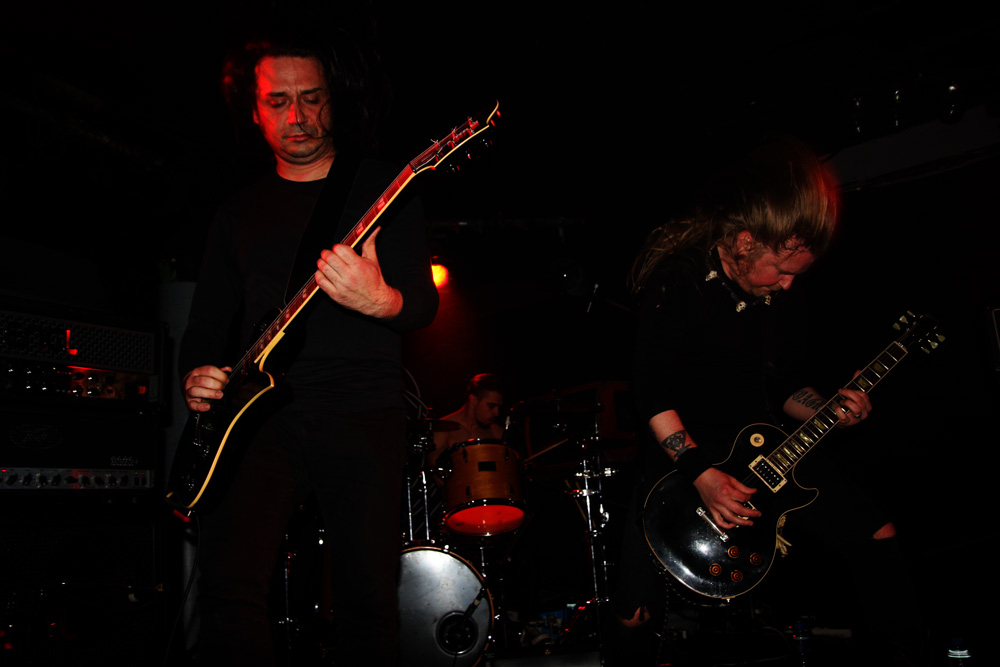 The vocals on songs like ‘Dirty Black’ are again rawer than on album but that Bowie etched croon is noted as we are transfixed by their delirious tones. The clean vocals work perfectly as they airily waft around the venue and it seems like everything is going down well with the audience. I could have happily embraced the whole of ‘Seven Bells’ being played but it is left to ‘Worship’ as the sole offering from the album and the stomp of it commands as we make the most of it. The doomy intensity is heavy and crushing before the piano heralds in another new one ‘I Took The Sky Away,’ into its slow waltz. The time seems to go really quickly and the drink goes down with it along with a couple from ‘Antitheses.’ ‘Lucifer Speaks’ bringing cloying darkness with heads on stage bowed down by its weight. If I had one song to choose for a finale it would not have been easy but ‘Man Behind The Sun’ was a perfect choice, slightly lightening the mood before we are flung out in the cold and a rousing and triumphant end to an excellent night.