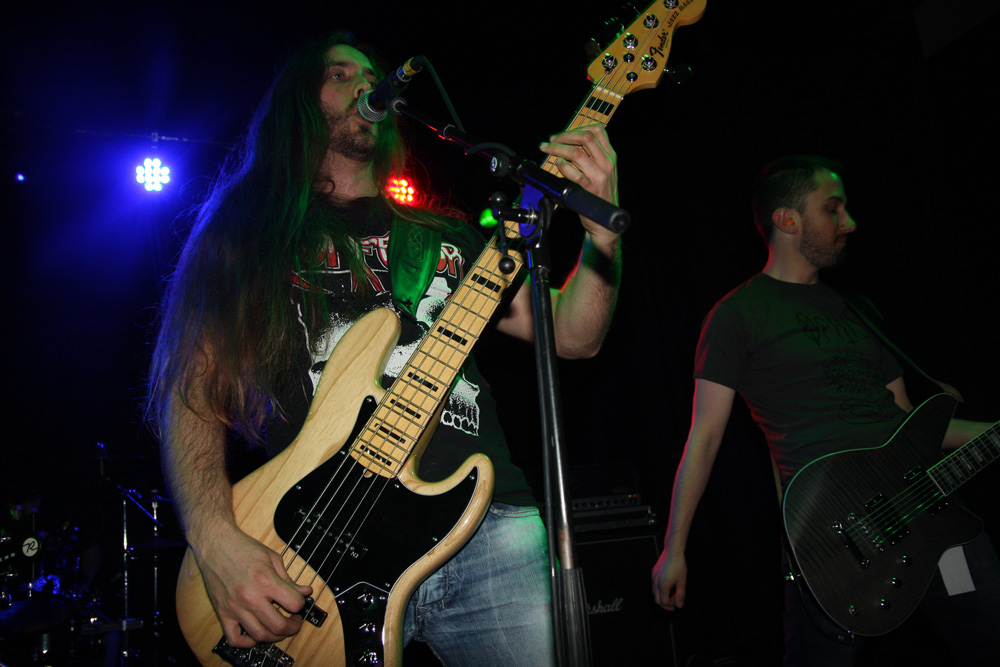 Upstairs in the dark blue void of The Dome, Brighton based King Goat have gone for the mysterious stage presence with vocalist Anthony ‘Trim’ Trimming casting a sorcerer’s spell from behind an altar and incense spilling fragrantly into the air. Rather than going all ritualistic and mystical on us though the music takes on a particularly progressive flair with clean, clamouring classic doom etched vocals. It’s hard to work out at first and the effect is really heady, I can’t even say if I particularly like it but things are certainly interesting. It’s a bit too dark to even see properly, let alone photograph so these goats effectively befuddle the senses, but they do smell nice! The singer does a great job of keeping his forceful power croons in key and they are an austere and acquired taste. It’s all over a bit quicker than I can make sense of it all though but the band definitely make their mark.