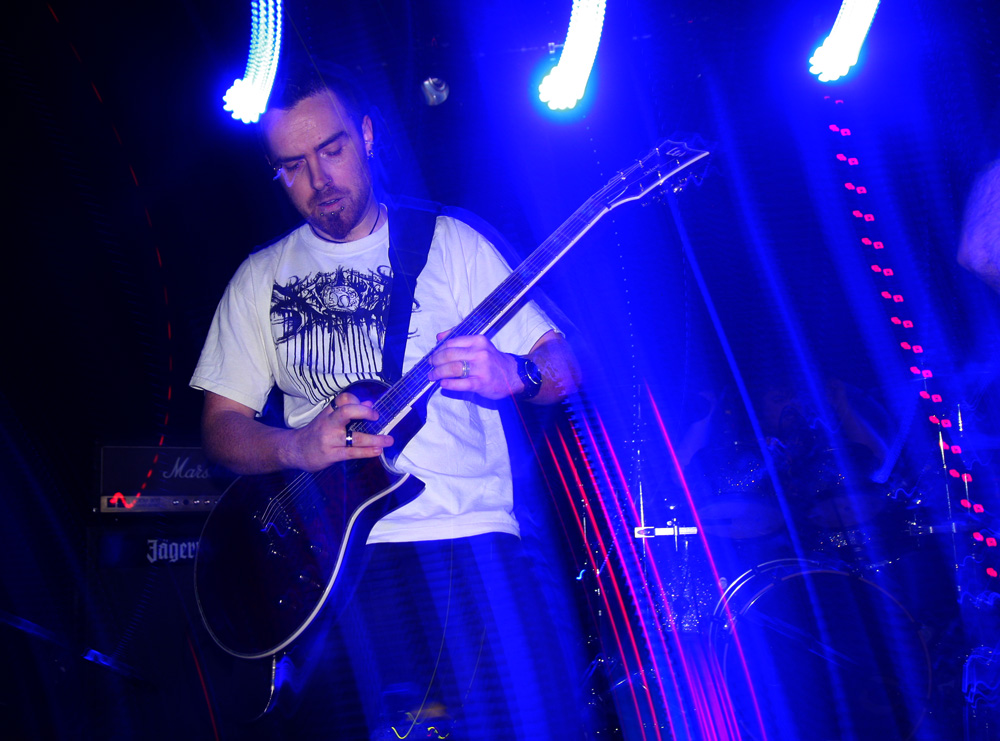 First of the non UK based visitors tonight Ataraxie from France are nowhere near as subtle by comparison and are full on in a deathly tumult as I walk in on them. There’s gravid beefy vocals and choppy surges as the band play holding instruments aloft like weapons. Between frantic bursts of energy they bring slow crushing passages into play giving us the best of both worlds. We quake, shake and tremble along with it all as they forge out a particular ghastly sound in all the right ways. There’s plenty of energy on the stage and any tiredness setting in is quickly forgotten as the speed of it flows through the veins. A new song is aired and although a lot slower it’s no less powerful getting heads whipped along in time both on and off the stage before a dark acoustic break mesmerises in gothic grandeur. Both massive croons and deathly growls pepper the slow and near antagonising end, I think I may have zoned off a bit during it all and gone into a trance.