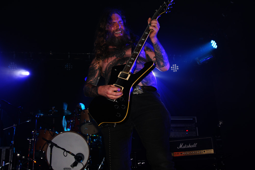 Slabdragger make a sound like you’d expect from their name, concrete dropped on the head from a great height. They have plenty of groove and a stoner vibe about them and obviously plenty who like them as the room is rammed for their 30 minutes of glory. 2nd album Rise Of The Dawncrusher has been getting plenty of praise and attention so it’s no surprise people are up for hearing a song or two from it and seem happily jigging about. Lit up in red the trio, stomp, yell and blister away, singer / bassist Yusaf bouncing around on the spot. The spasmodic power behind it all has the audience twitching away as the music infects, it’s damn near impossible not to join in. They don’t seem to favour playing short songs either but keep the impetus flowing with long meandering instrumental parts. We are threatened with some Dire Straits for some reason but get some bluesy southern licks as old as time themselves instead. These get toes tapped and beards stroked and go down perfectly. Consider my slab well and truly dragged.
