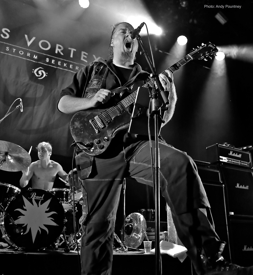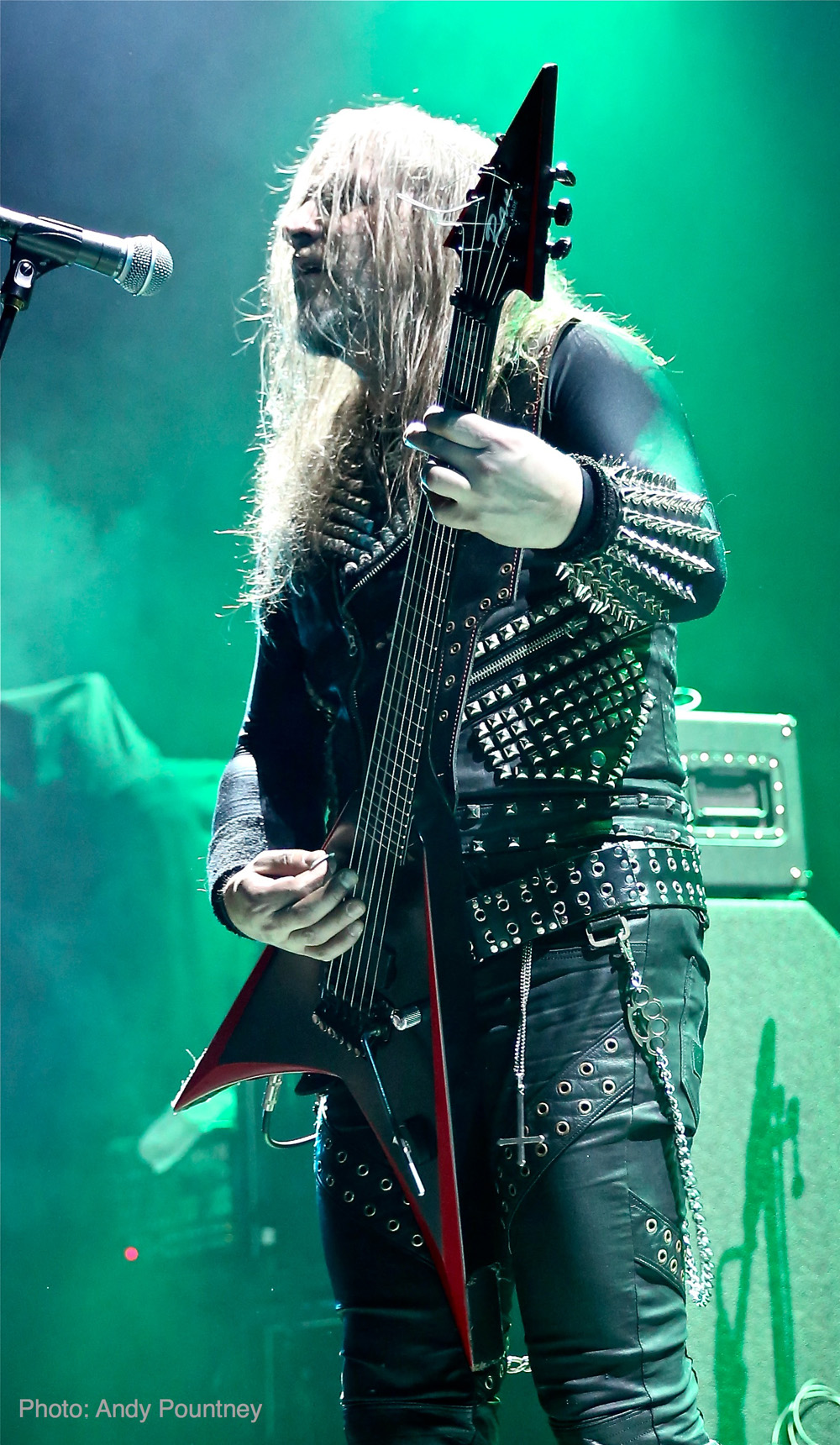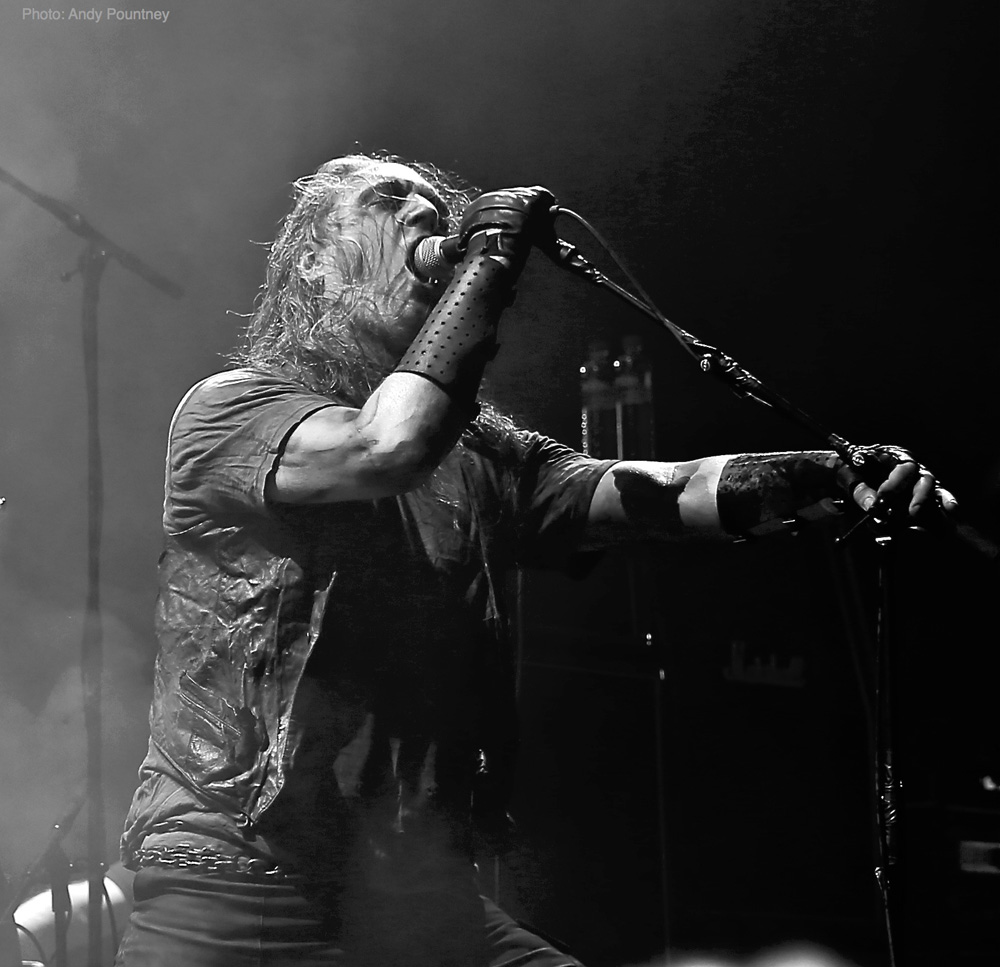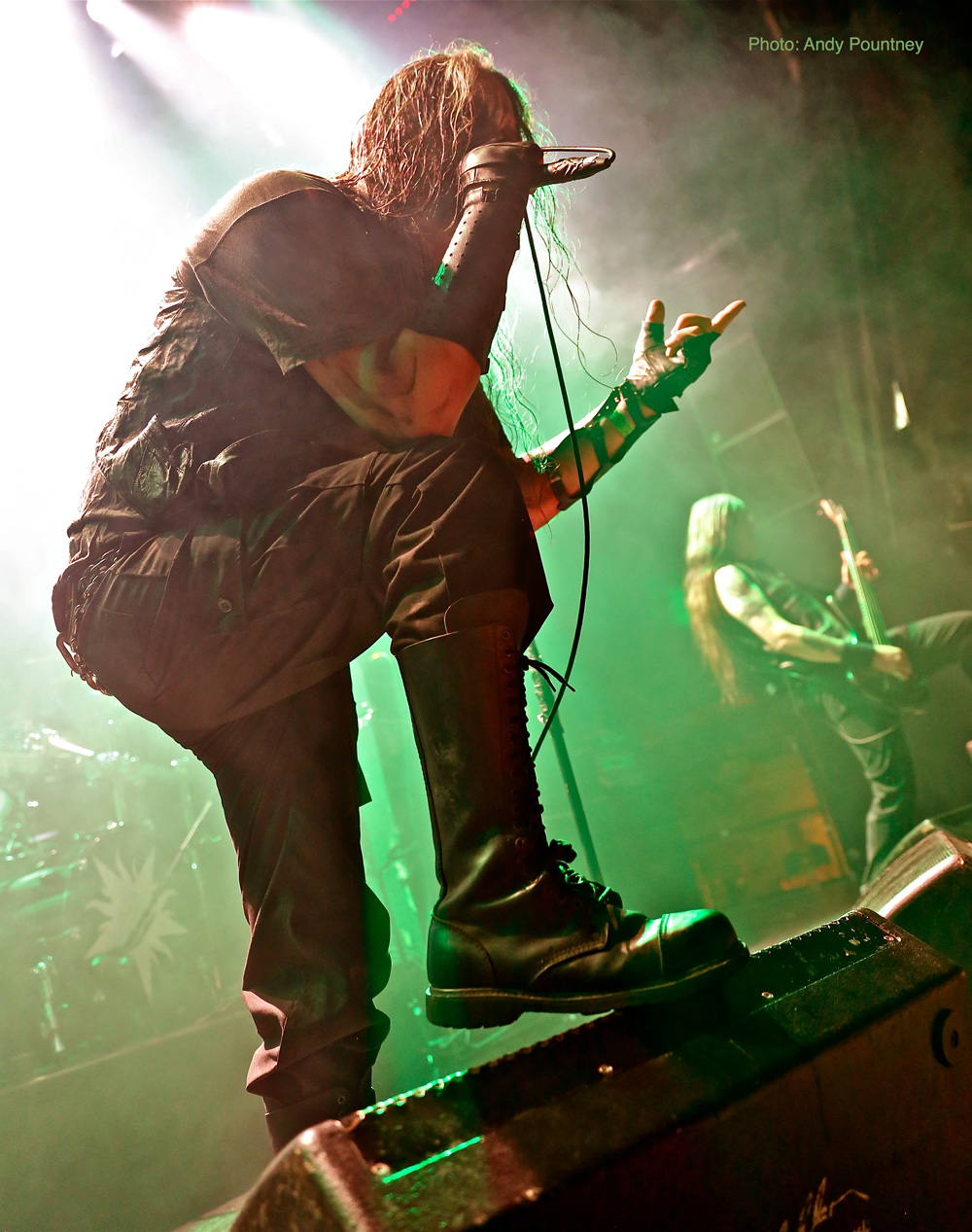 Day two began with French act Deathcode Society performing on the John Dee stage downstairs and wearing cloak like hoods and masks.  As a general rule French extreme metal bands are always a must to check out as they usually offer a warped and perverse approach that tests your mettle to the limit. Symphonic and textured with a melodic but grandiose approach Deathcode Society didn’t quite hit the mark for me personally (although shooter thought they were great!) but showcased a band in the throes of sonic metamorphosis to establish their own sound via tunes from their debut such as “Noos” and “The Inner Vortex”. The hood wearing quintet created a thread of mystique within their malevolent assault that had some Anaal Nathrakh like auditory Armageddon blasting phases broken by interludes of choral chanting that manifested as avant-garde musical brushstrokes as this fledgling outfit started day two exceptionally well.