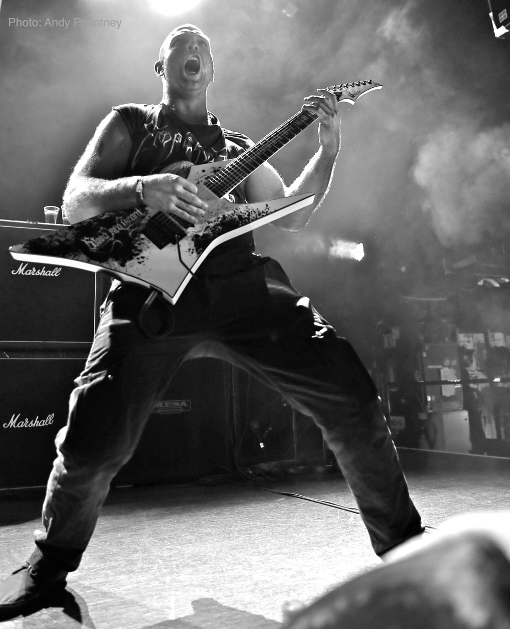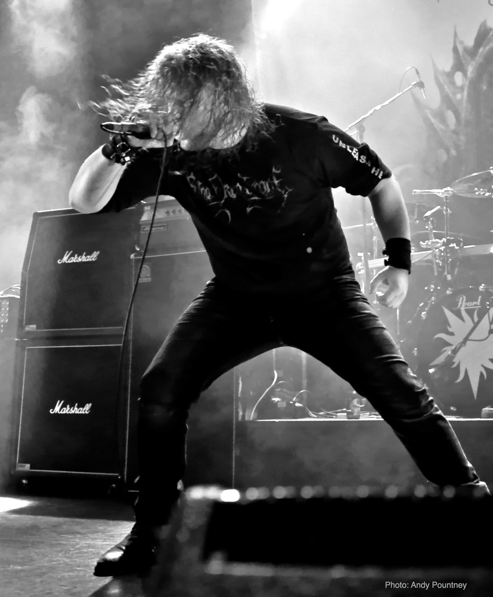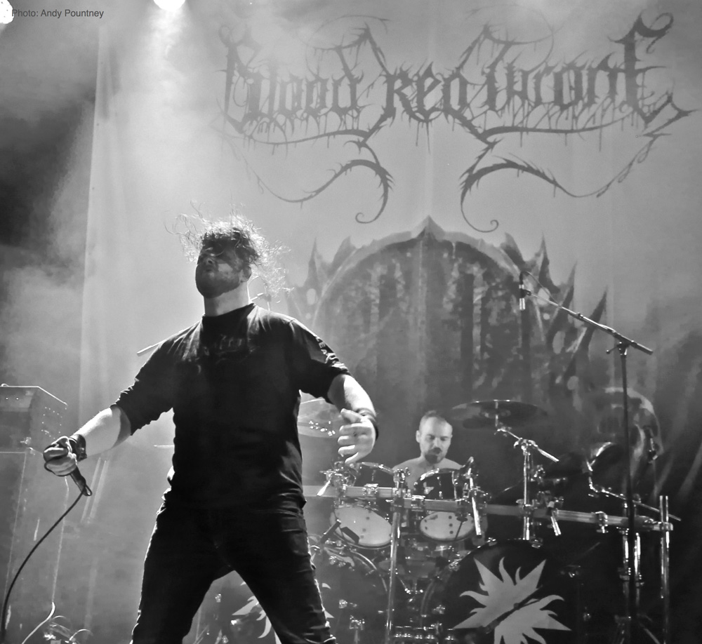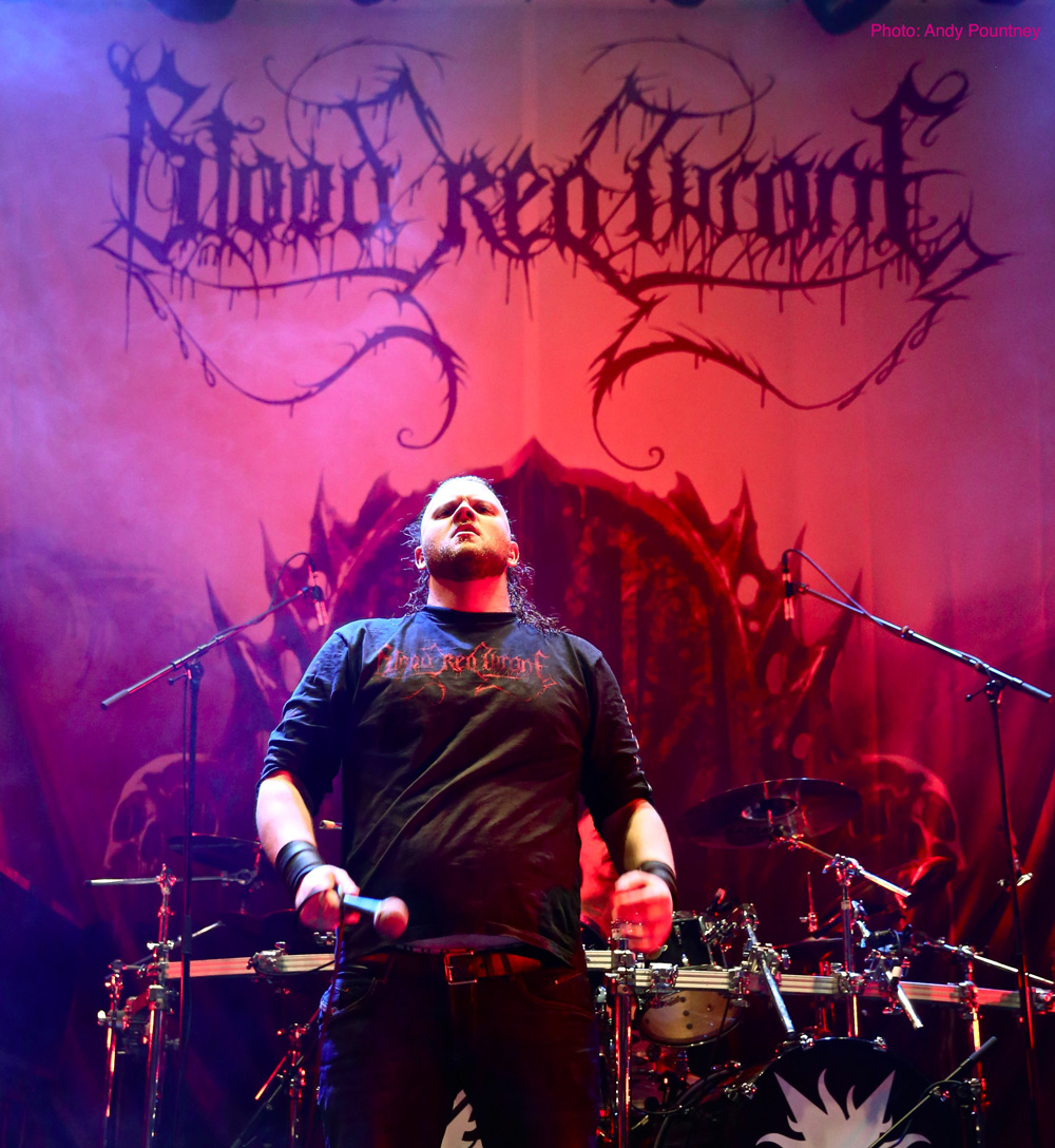 One of the big draws for me personally was Norwegian deathsters Blood Red Throne who have an enviable discography of top class death metal albums that I have followed since the band formed nearly two decades ago. This was a high profile show for the band and disappointingly like Stahlsarg preceding them on the John Dee stage the attendance at the Rockefeller stage was paltry to say the least considering they were a home-grown outfit, but the band didn’t care as they opened with “Brutalitarian Regime” and set their vocalist Yngve “Bolt” Christiansen in spinning headbanging mode that could have given George ‘Corpsegrinder’ Fisher a run for his money. Speaking the opening piece of “Unleashing Hell” by proclaiming he wished we were all dead, buried underground, rotting and devoured by maggots as the tune throttled the crowd with its cataclysmic double kick and punched in the guts riffing. I had decided to watch the band from the first balcony, mainly because I was being lazy, but also to be able to view them perfectly and absorb the death metal gruesomeness that exuded from songs like “Primitive Killing Machine” from the latest self titled album or “Arterial Lust” from their mid era. Seriously under rated in death metal, Blood Red Throne has skirted the fringes of the genres big players and here they were nothing short of crushing from start to finish.