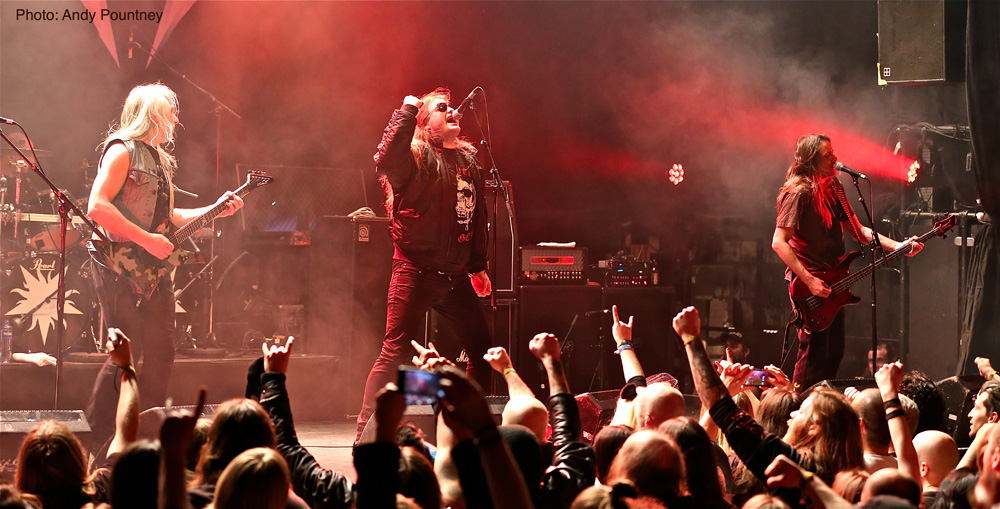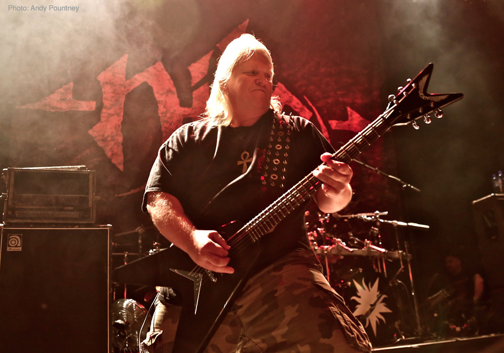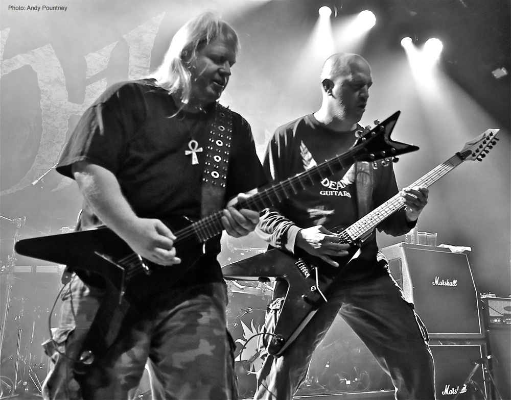 The Rockefeller stage today had some heavyweight acts and Sodom was first up. I must admit I was slightly disappointed with their show. The playing was fine, the song selection was cool, but it felt tired and lacking the attitude which Sodom has always had on their album and live ventures. With a relatively short set of 50 minutes they ploughed through their set with “Outbreak Of Evil” catching my attention as always being the much older stuff that I prefer. A slight pause ensued before Tom rattled out the vocal line of “Surfin’ Bird” which lead into “The Saw Is The Law” which was sang by the crowd on the chorus sections. Another crowd favourite followed with “Sodomy And Lust” being highly recognised by the crowd (and rightly so) which had started to bloat in numbers as we hit the evening. I was expecting a pit for Sodom but not even a glimmer of movement as one of the guys in the Bergen Bombers came on stage to pay a fitting tribute to Ian ‘Lemmy’ Kilmister as he announced “Iron Fist” which was sang partly by the crowd. As the set was rolling, decision time was approaching with regards to the John Dee stage so as “City Of God” and “Agent Orange” rocketed by I vacated my spot to go downstairs grabbing a beer, as always, on the way.