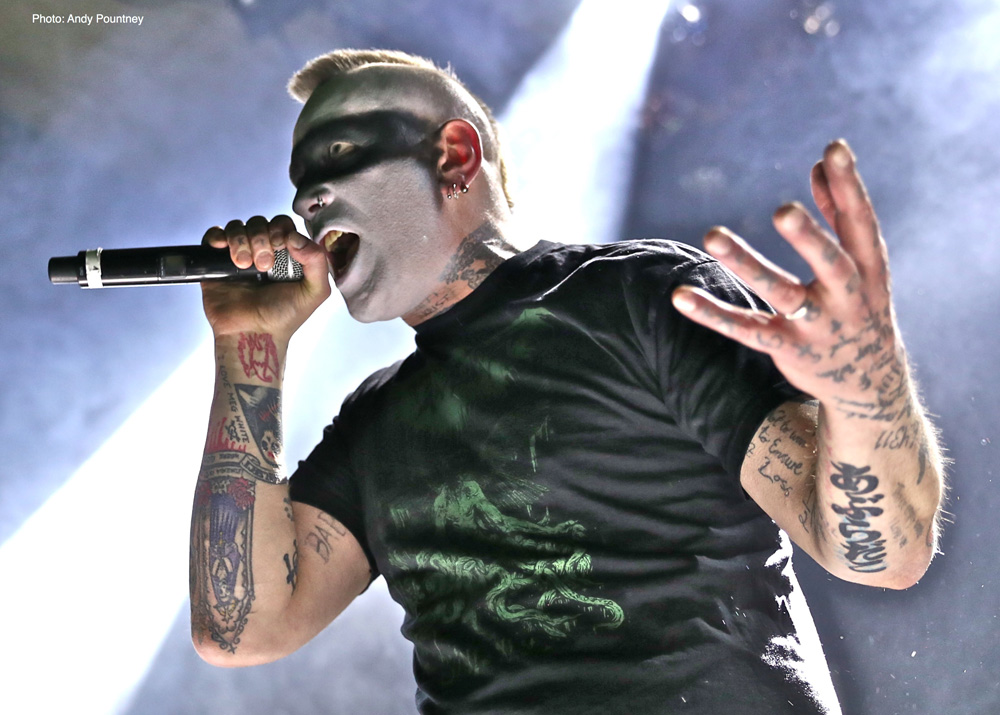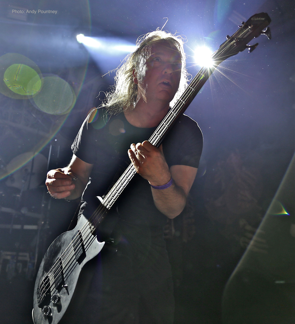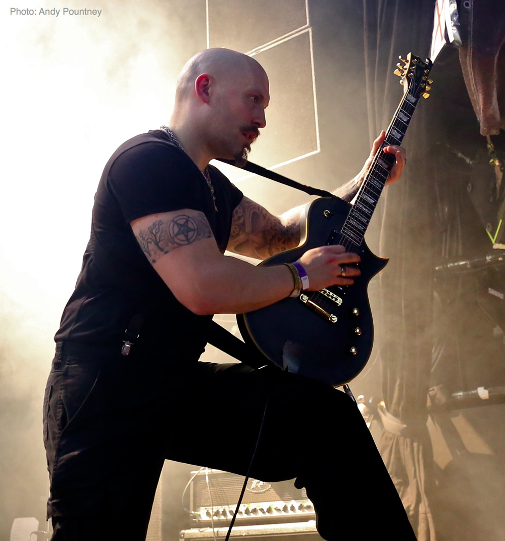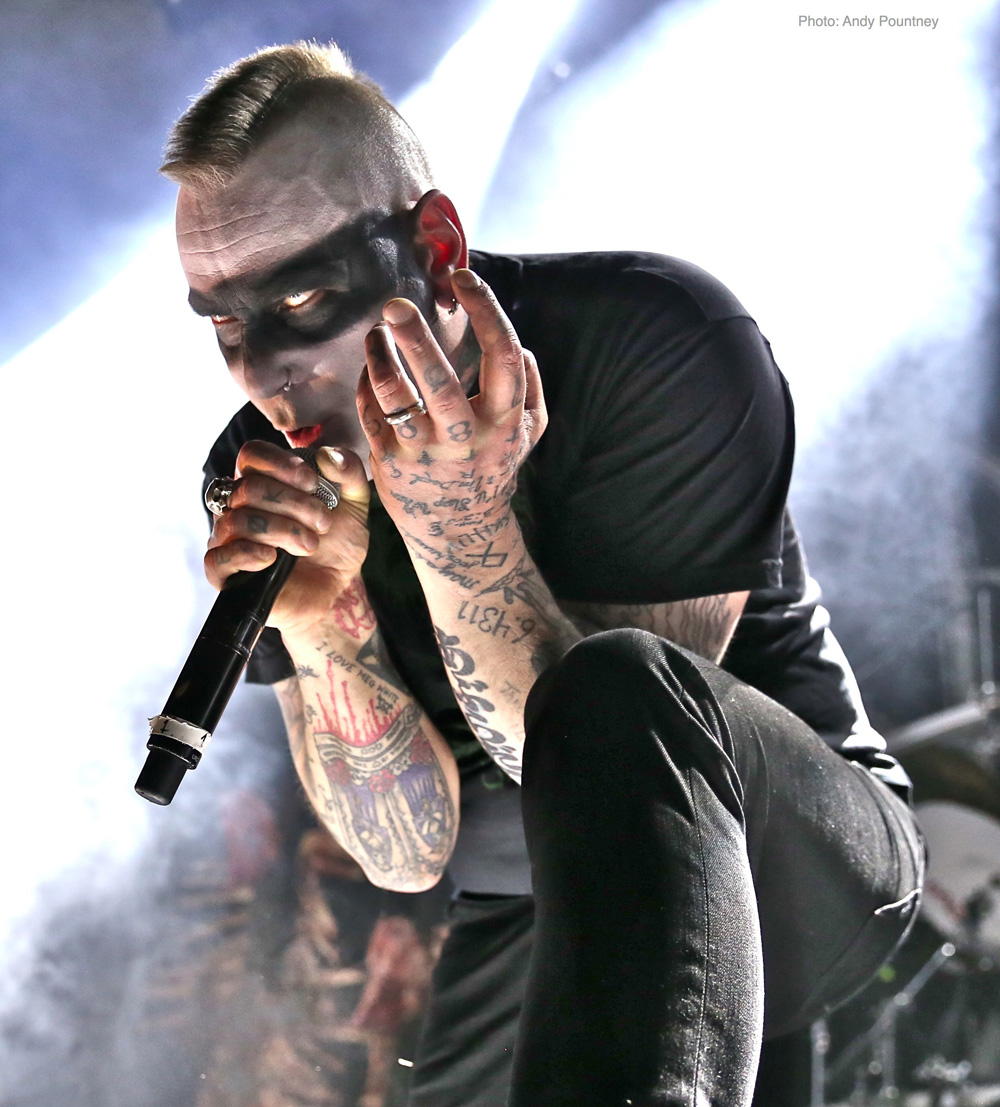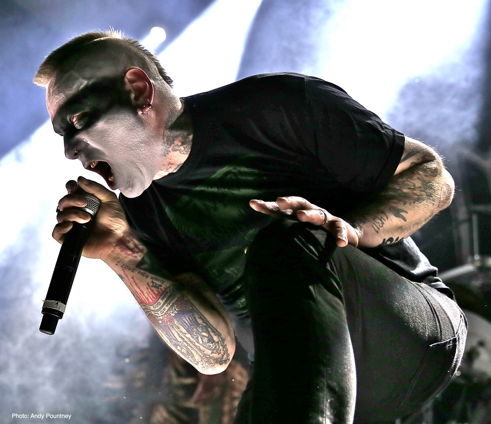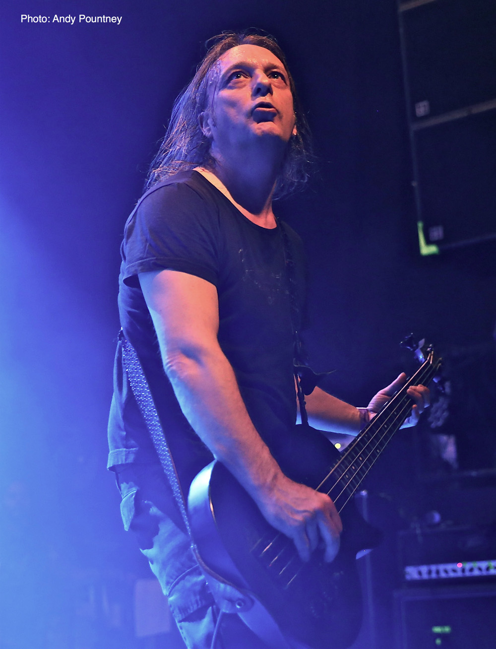 On arrival on the left I overheard the security guy explaining the strategy for the photo pass holders of one song then out but could continually take photos of the band for the whole set which inevitably created some tension in the crowd. This was completely due to having the photographers come back to the same queue and really should have been organised better by having them queue in a different place (stage right I’d suggest) affording easy access to the photo pit instead of constantly having to jostle past people much to theirs, mine and others in the crowds annoyance as we watched the band.  Not really an anniversary show as such since the release of the “Pure Fucking Armageddon” demo in 1986 this was indeed to be a special show involving members from various eras of the bands infamous history. The darkening of the stage led into a spoken vocal piece of the first part of “A Bloodsword And A Colder Sun (Part I of II)”as a slow drum beat filtered through the PA with bright searching spotlights passing over the crowd before launching rather pedestrian like into “A Bloodsword And A Colder Sun (Part II of II)” with Maniac on vocals. The slow pulsing pace of the tune felt like an intro piece as my gaze wandered away from the band to the rancid stage effects utilising the dismembered carcasses of what I suspect were pigs. There was a rumour that 400kg of bones and I suspect animal body parts were to be included in the set which disgusted me completely and if I’d not been reviewing I’d have walked out. Biased or not I thought Maniac looked like a pantomime villain with his strip of hair in the middle and Batman and Robin like eye makeup as the band went into “Crystallized Pain In Deconstruction” and he stalked the stage as menacingly as he could to decent effect.  The first portion of the show was given to Maniac as the band shifted into “To Daimonium” and “View From Nihil”.