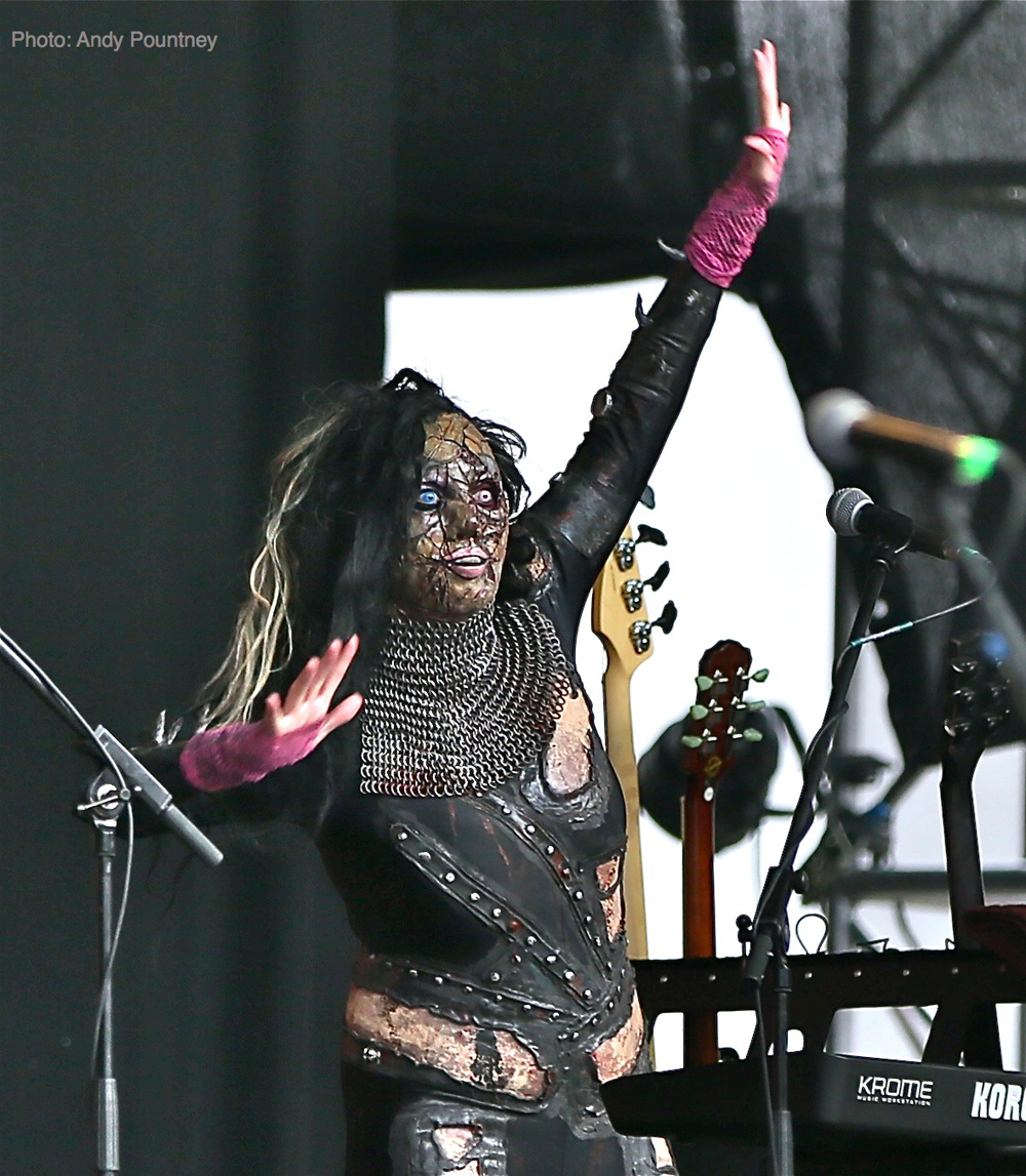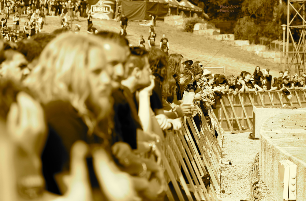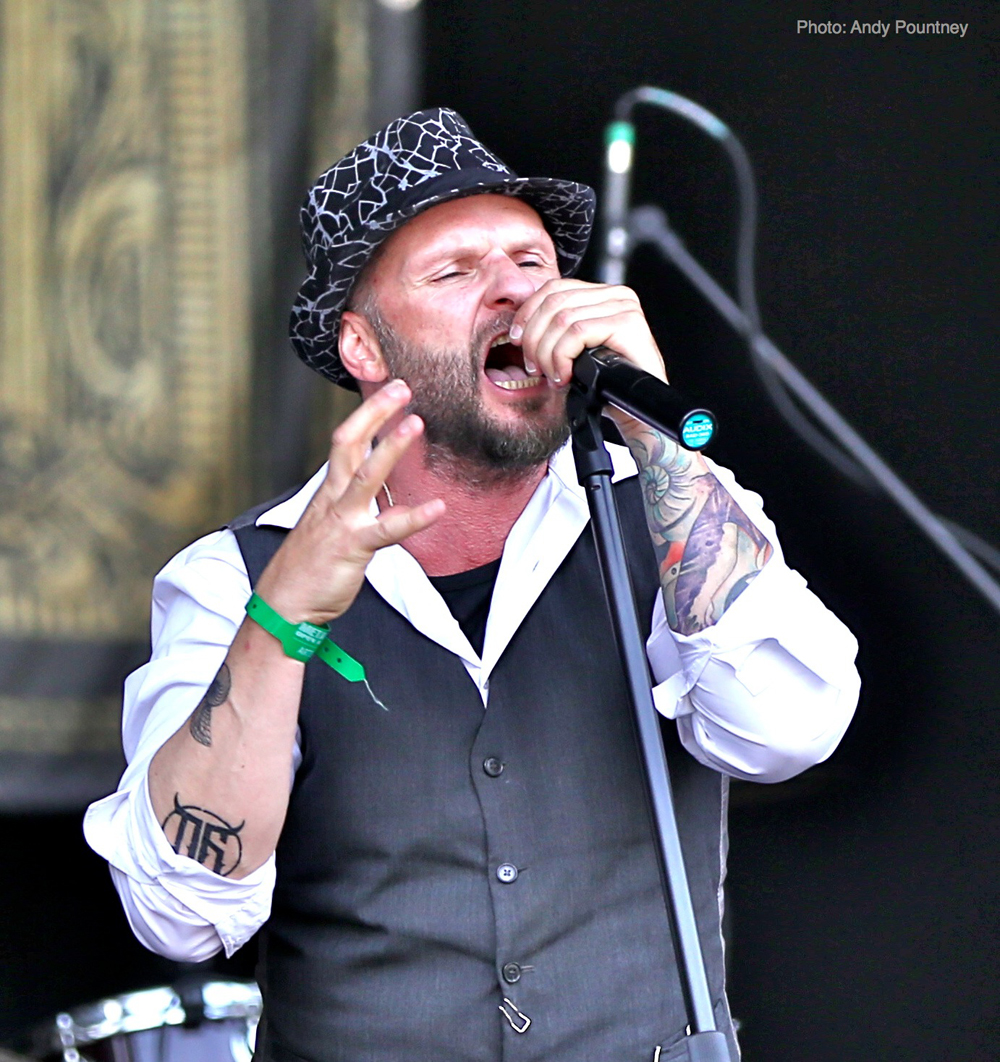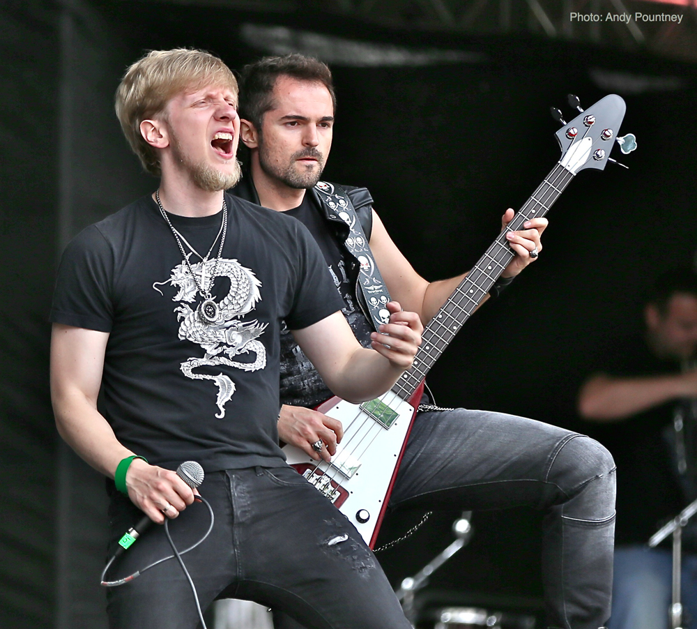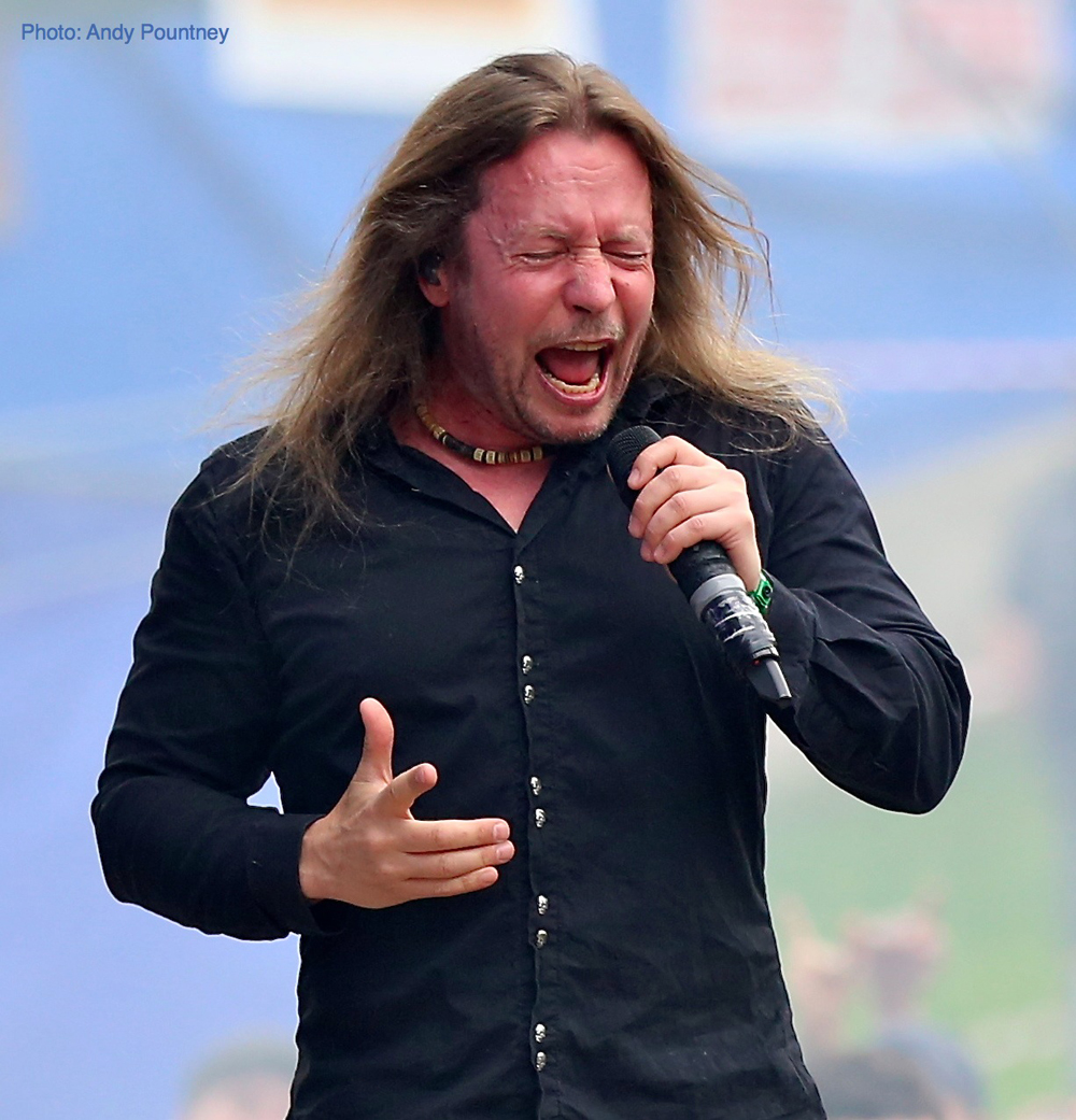 Opening things were Poles Scream Maker, treading a fine line between power and heavy metal in fine style to the appreciation of a small but enthusiastic crowd against the barrier. All too quickly the final notes of ‘Liberty’ faded out and the crowd disappeared seeking refuge from the sun amongst the trees, or to be hosed down by the obliging festival staff!