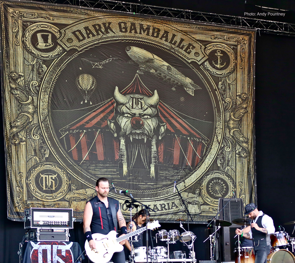 Czech Locals Dark Gamballe were given a heroes welcome and proceeded to put out one of the most original performances of the weekend. After my pre-festival research I wasn’t quite sure what to expect – On their facebook page, the band list themselves as “rock-electro-crossover”, and as the dual percussionist six piece stomped over the stage that seemed a fairly accurate description. Their electro tinged groovy metal had the crowd moving from the outset, including one or two who were so drunk they could barely stand, which was no mean feat given that it wasn’t even midday! As the set moved on I found myself likening their sound to a cross between System of a Down and Rob Zombie, although this doesn’t tell the whole story, and if I’m honest, although I wasn’t really looking forward to their set, I found myself really enjoying it……