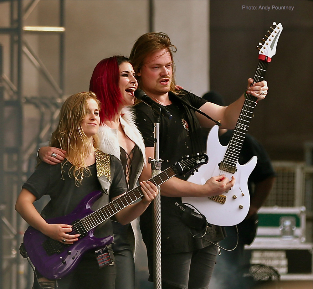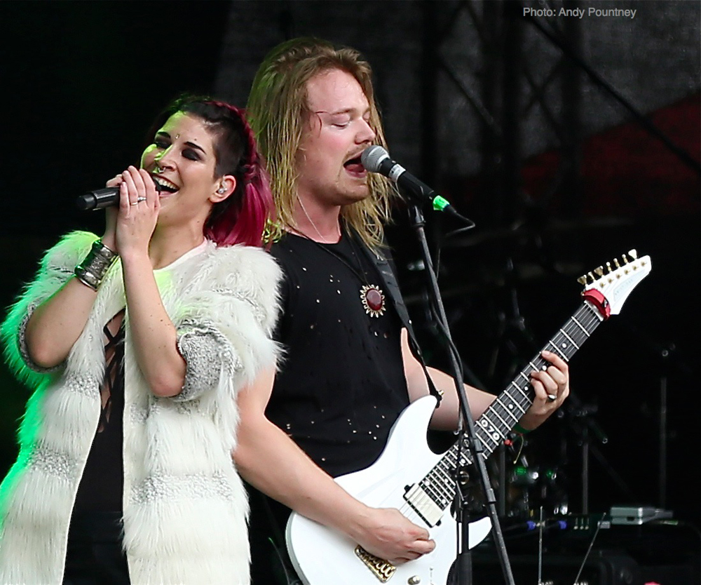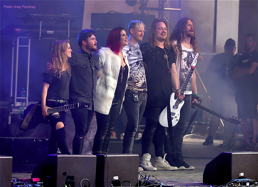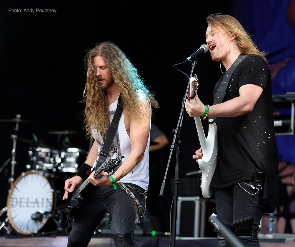 Sirenia were due on next, but while the stage was being set up it became apparent that this was not going to be the case. It transpired that due to family bereavement Ailyn was unable to perform at the festival and so the band cancelled, with hard rock act Reno Vega providing cover at the last minute. As a big fan of Sirenia I was disappointed and perhaps this coloured my enjoyment of Reno Vega – I found them to be competent musicians but overall uninspiring and so cut my losses and went to the Delain signing session.