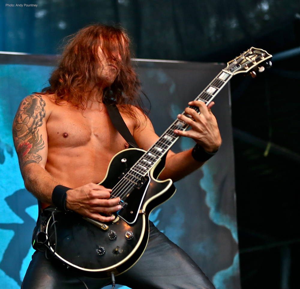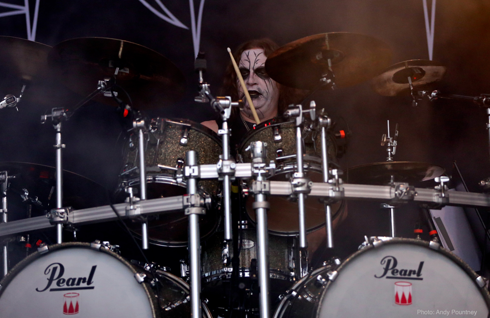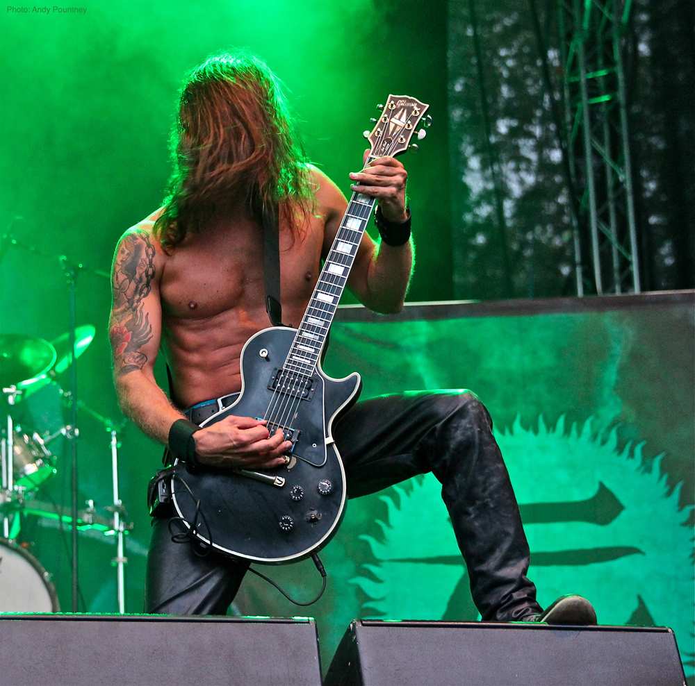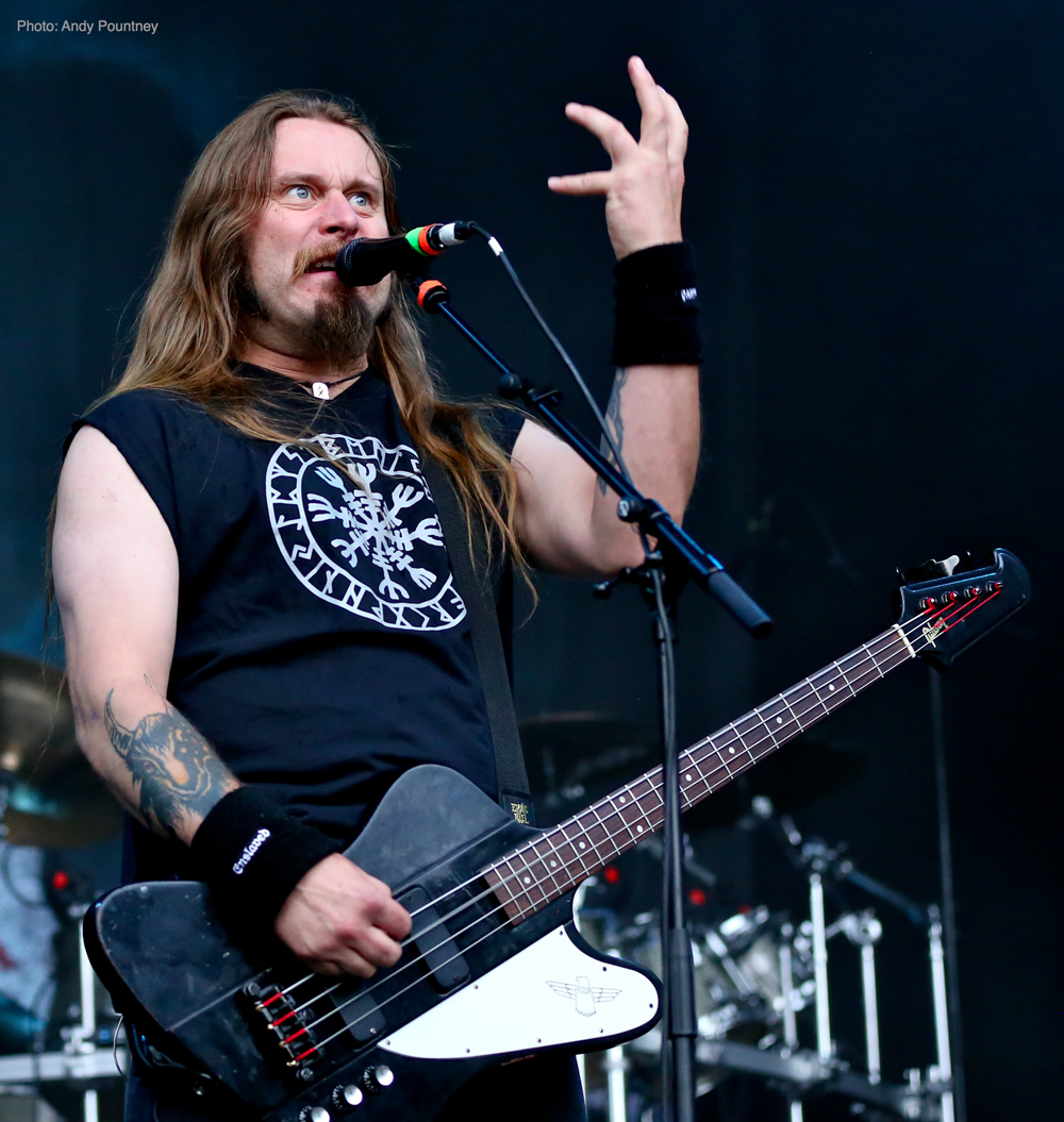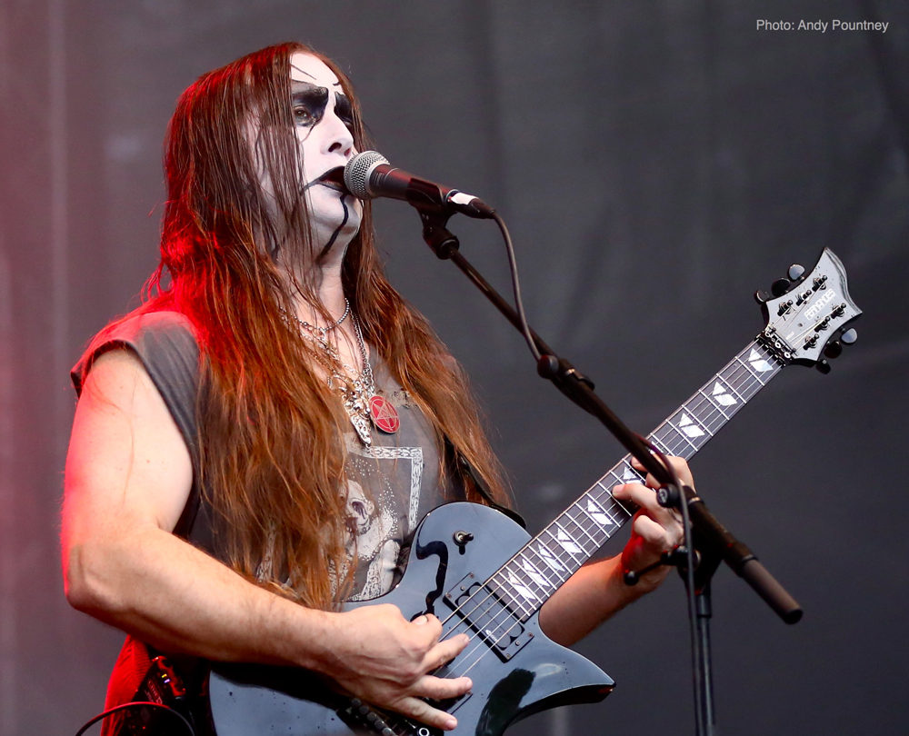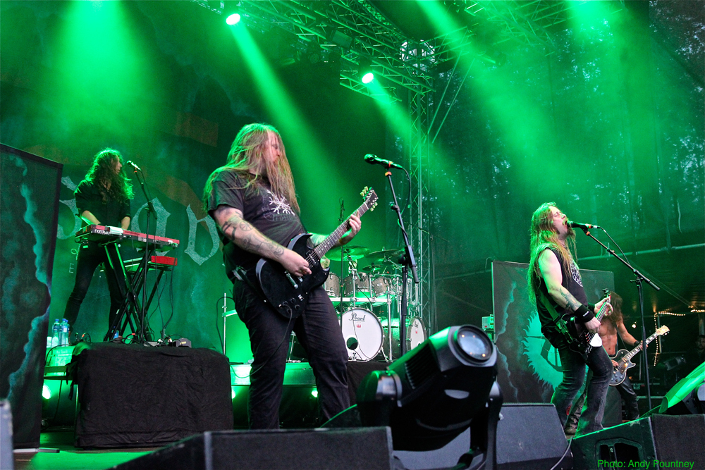 After Skálmöld had finished, a deluge was unleashed from the heavens sending the less hardy folk running for cover in the beer tent before black metal duo Inquisition assaulted the stage. Arriving on the back of the latest release ‘Bloodshed across the Empyrean Altar Beyond the Celestial Zenith’ the mood of the festival became more sinister as their icy black metal ripped through the crowd. Dagon’s trademark rasping vocals were completely inaudible during the first track, but once this was sorted out, their melodic and yet brutal black metal raised the bar and got heads banging.