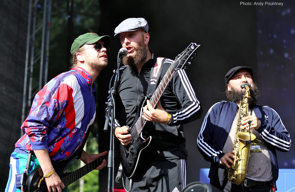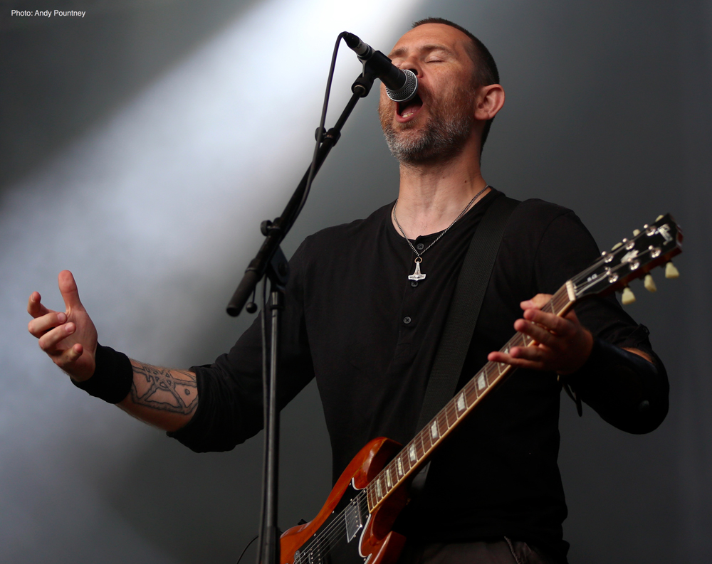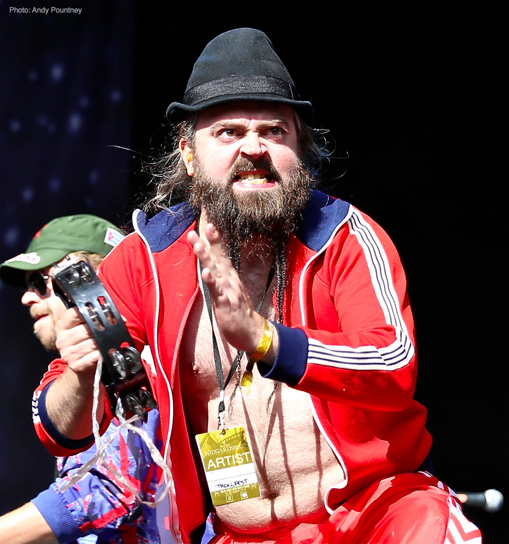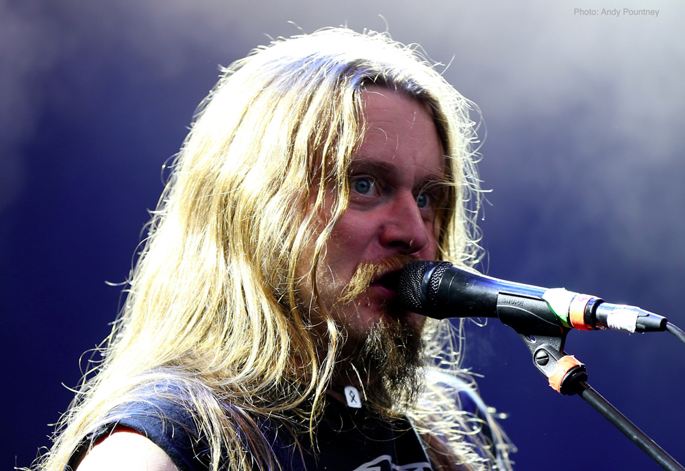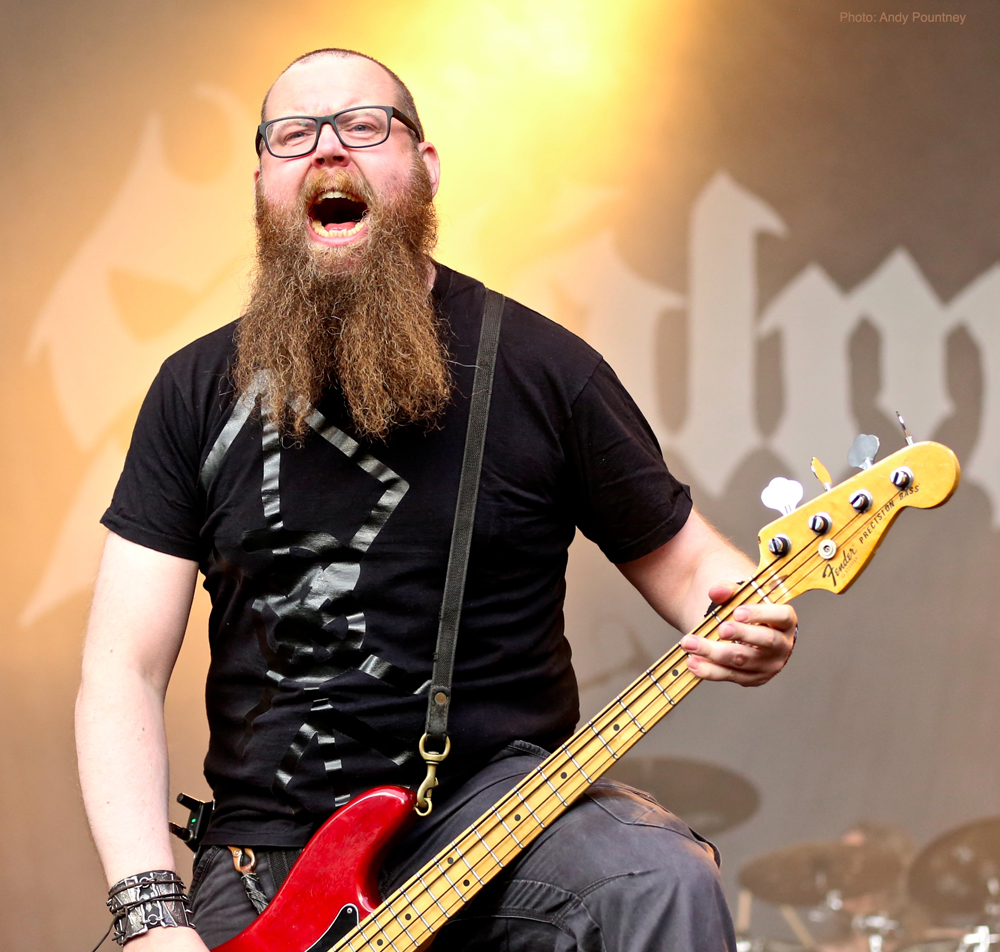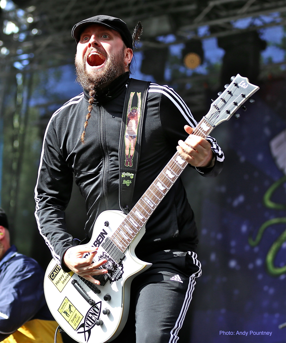 Trollfest were the first main stage band of the festival and they erupted onto the impressive stage looking like an explosion in a shellsuit factory. Their high energy brand of “True Norwegian Balkan Metal” was an entertaining blend of metal and folk, utilising a saxophone, accordion, violin and tambourine alongside more traditional instruments. The nine (I think – It was hard to count them as they were running around so much!) members were a vision of chaotic perpetual motion including members running into the photopit and crowd, but they sounded good, went down well with those down the front and were a good start to proceedings.