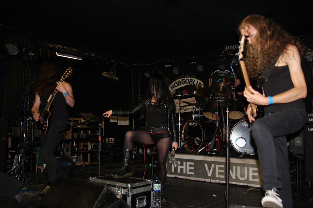 Day two of Warhorns dawned and my merry little band were still trying to figure out what the hell Whispered had been all about, but arrived with a pleasant number of others in time to catch first band Daemona. A few seconds in the teeth of their hate fuelled death metal and the world was right again: Furious, tight, rhythmic and compelling they blasted through tech problems and a curious lack of stage lighting/full house lights like a wolverine with anger issues. Front-woman Nina (now also the new Eastern Front vocalist) has such an impressive range and huge presence, the guitars from Strix Bellmer wonderful crunch and all given serious ooomph by the bass/drums (Dan Mailer/Logan Dennis). Strangely catchy, violent and hard, bordering on the technical but never clinical they gave it everything. Tracks from their EP Il Demone Dentra shone. Band of the weekend so far. Off to the merch area! (Giz)