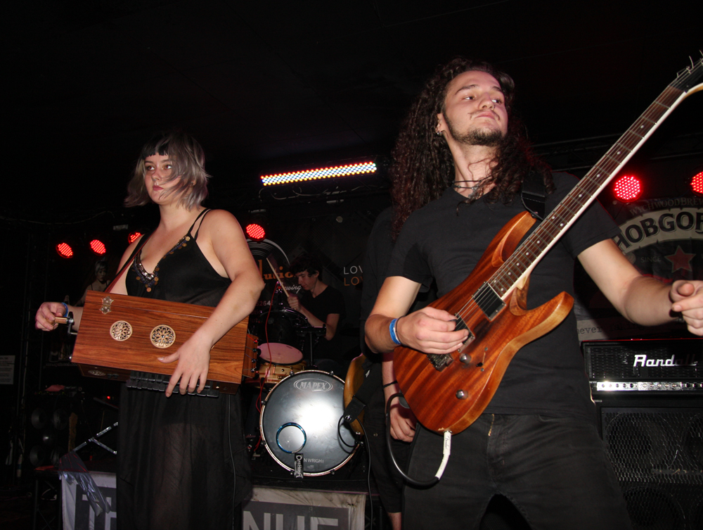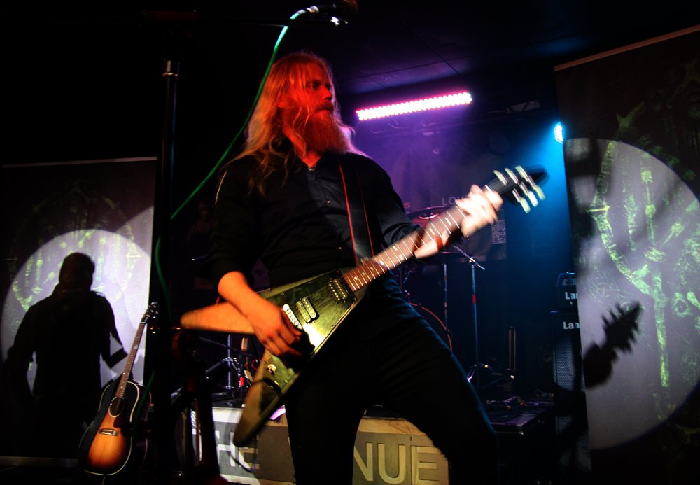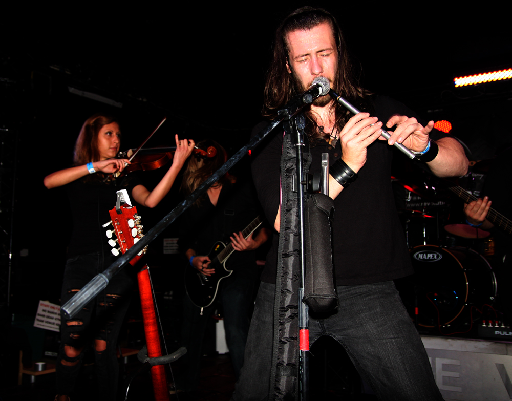 How the hell have Isarnos escaped me, they are from London after all? Now this is the sort of band I really expected Warhorns to pull out the bag and they didn’t disappoint in the slightest. We have violin, hurdy-gurdy box, pipes, tin whistle and err count them seven members doing all sorts of things on the stage. The manic brand of folky metallic goodness saw the crowd pressing themselves right down to the front and going suitably mad to the musical storm on stage. The singer talked about being united in blood and that it seemed we were. The burgeoning pace of numbers like Cunos had tales of these Isles recanted with panache and this lot are certainly entertaining making very good drinking partners. There’s some soulful female vocals thrown into the mix and plenty going on. Calling them the UK version of Eluveitie, would be no injustice.