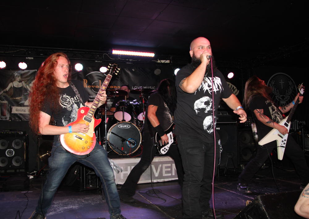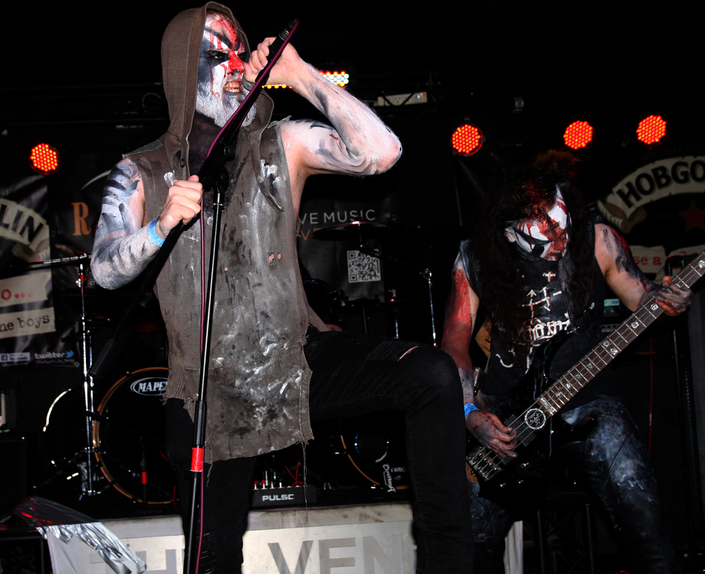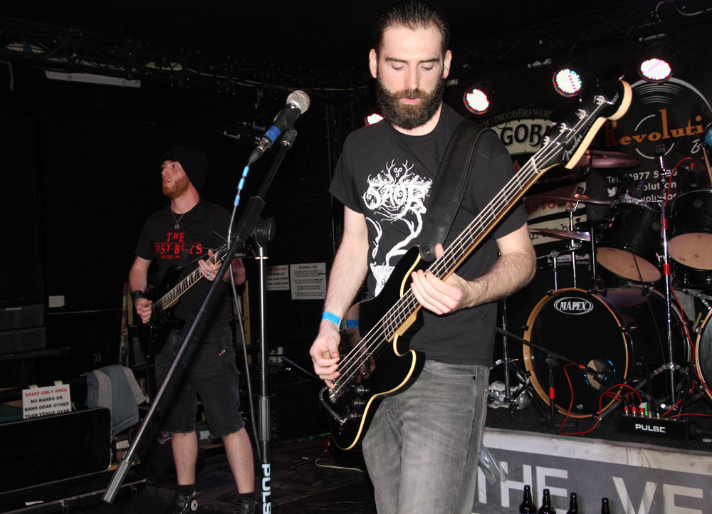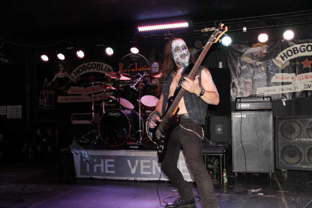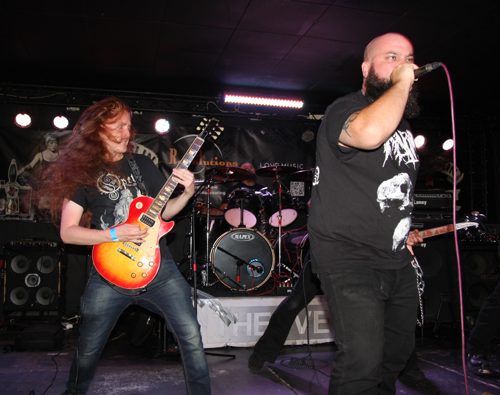 I had noticed some Valafar shirts being sported but that’s as far as my knowledge of them went. They are apparently a death metal band from Bradford just oop road so had some support with them today. The first impression I got was that this lot were playing like they were headlining. They really threw themselves into things and went for it straight a bloody way! The players thrash it up like there’s no tomorrow, the kick drum bruises and the singer gives a powerful and belligerent, bellow filled performance. Naturally it gets necks snapping away at the front and the enthusiasm spreads and infects. Ok so it might all be a bit meat and two potatoes but made for a good enough replacement for a Sunday roast (umm Yorkshire puddings) but there’s no denying they delivered the musical goods. Moving from thrashy parts into gnarly death metal they ticked a few boxes in the process too. (PW)